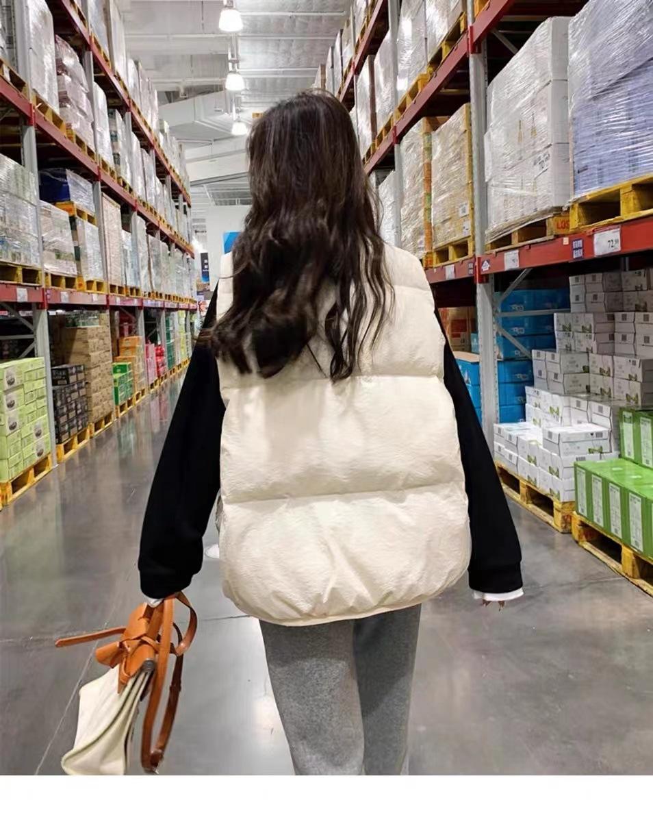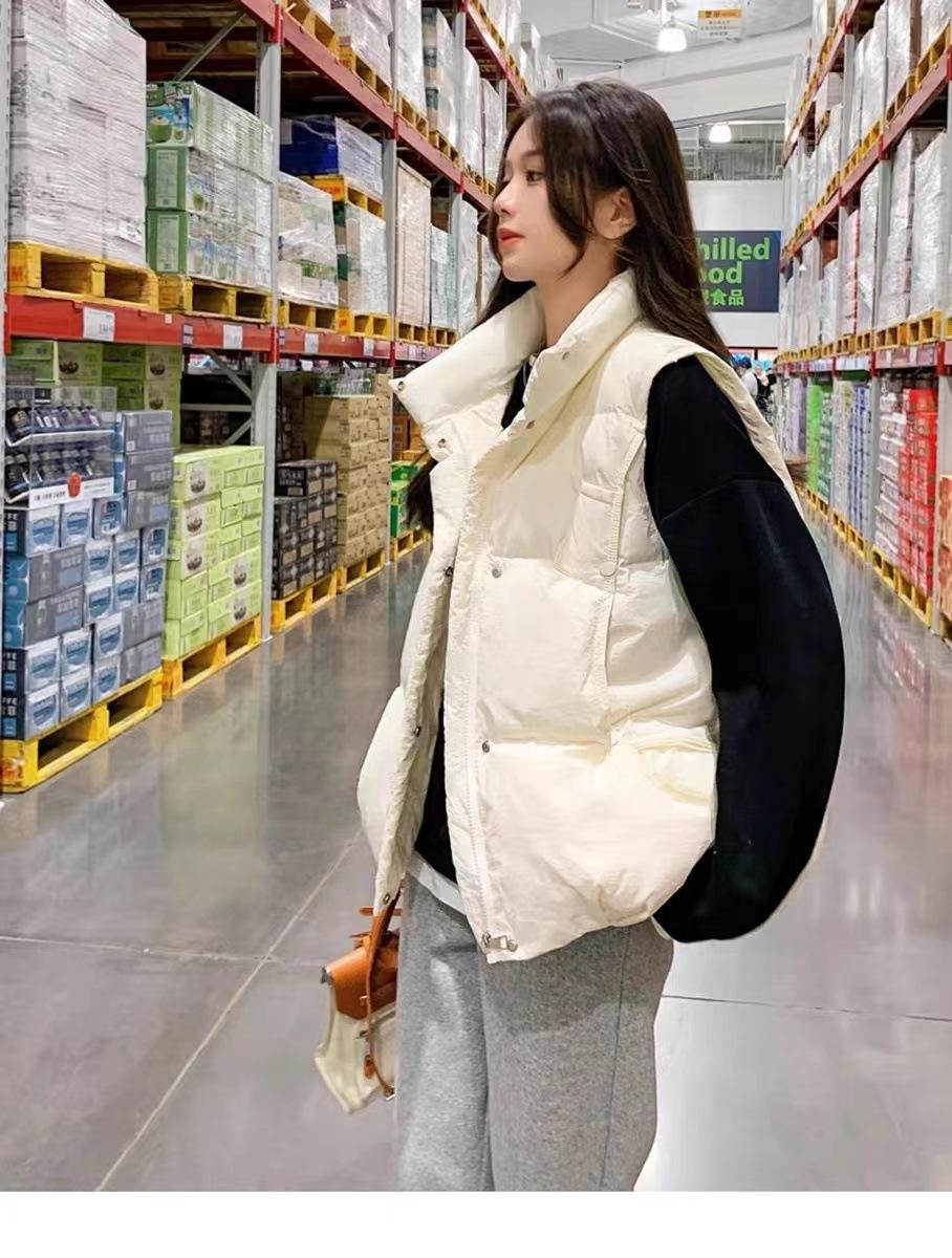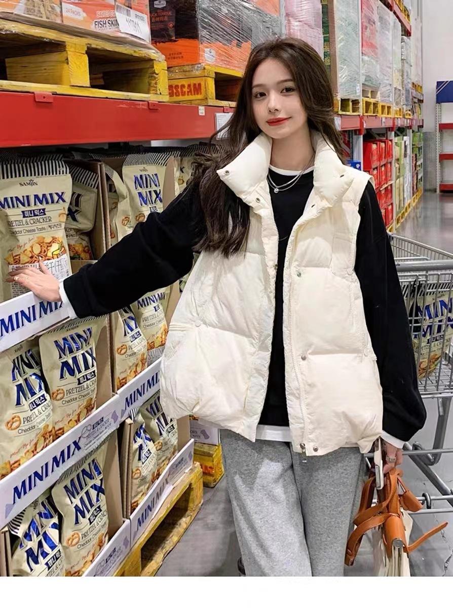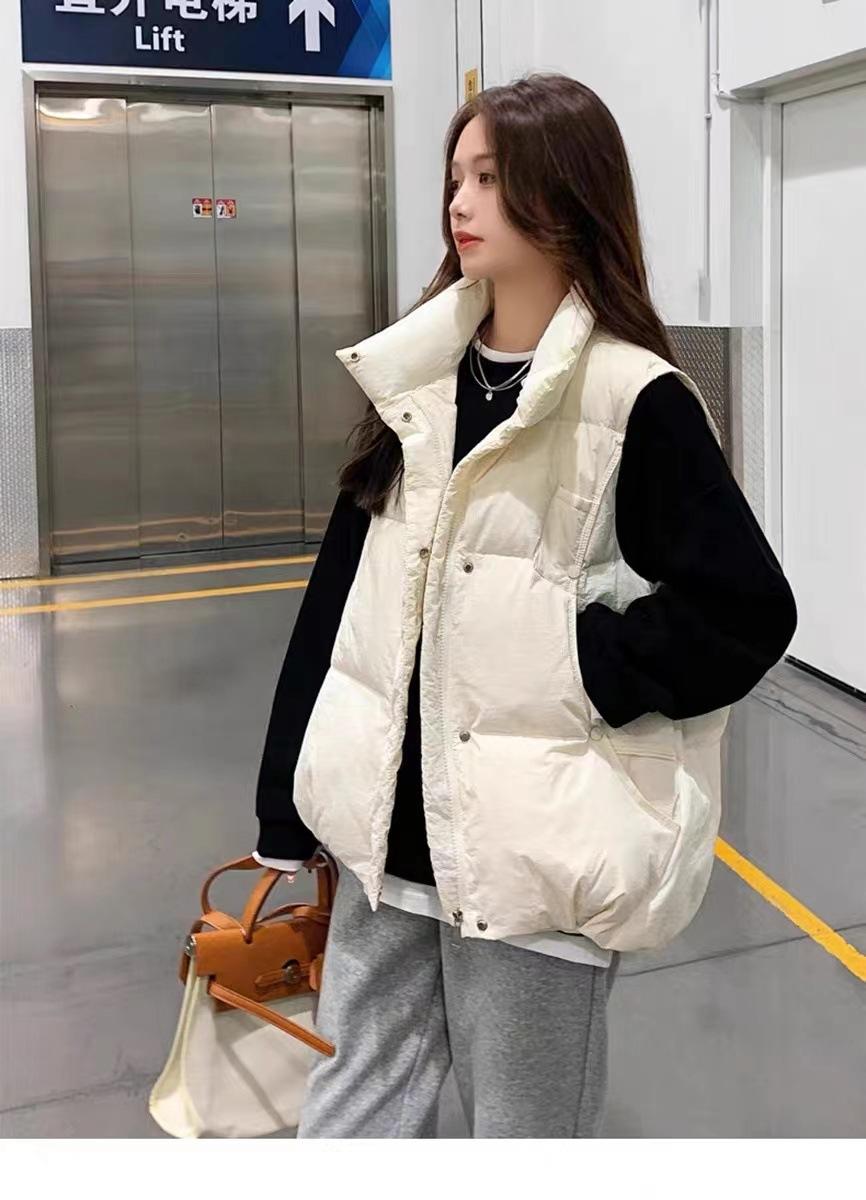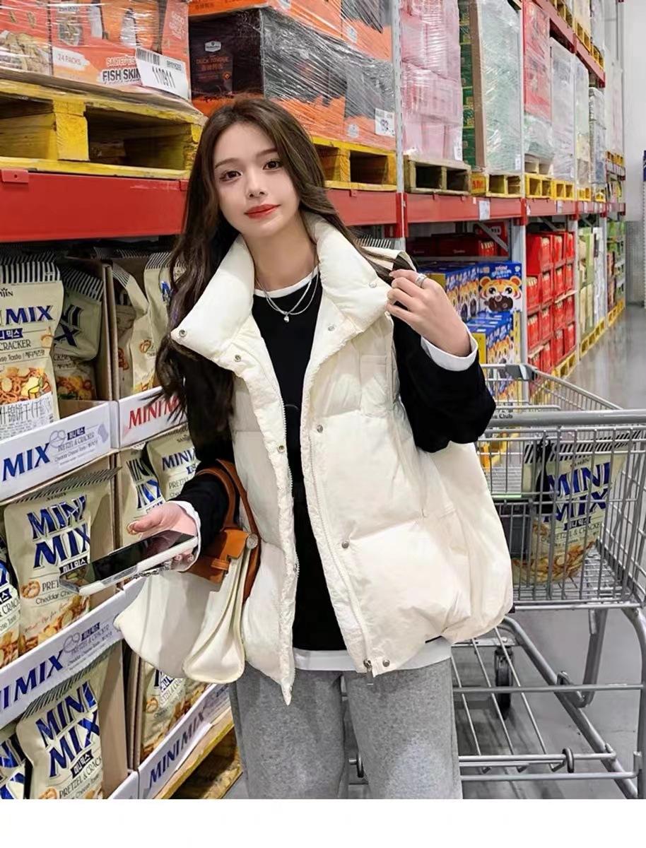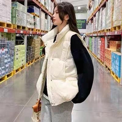 Chaleco de Algodón Plumón para Mujer Estilo Coreano Holgado 2024 Nuevo Otoño e Invierno Blanco Chaqueta Gruesa Chaleco Moda Stand