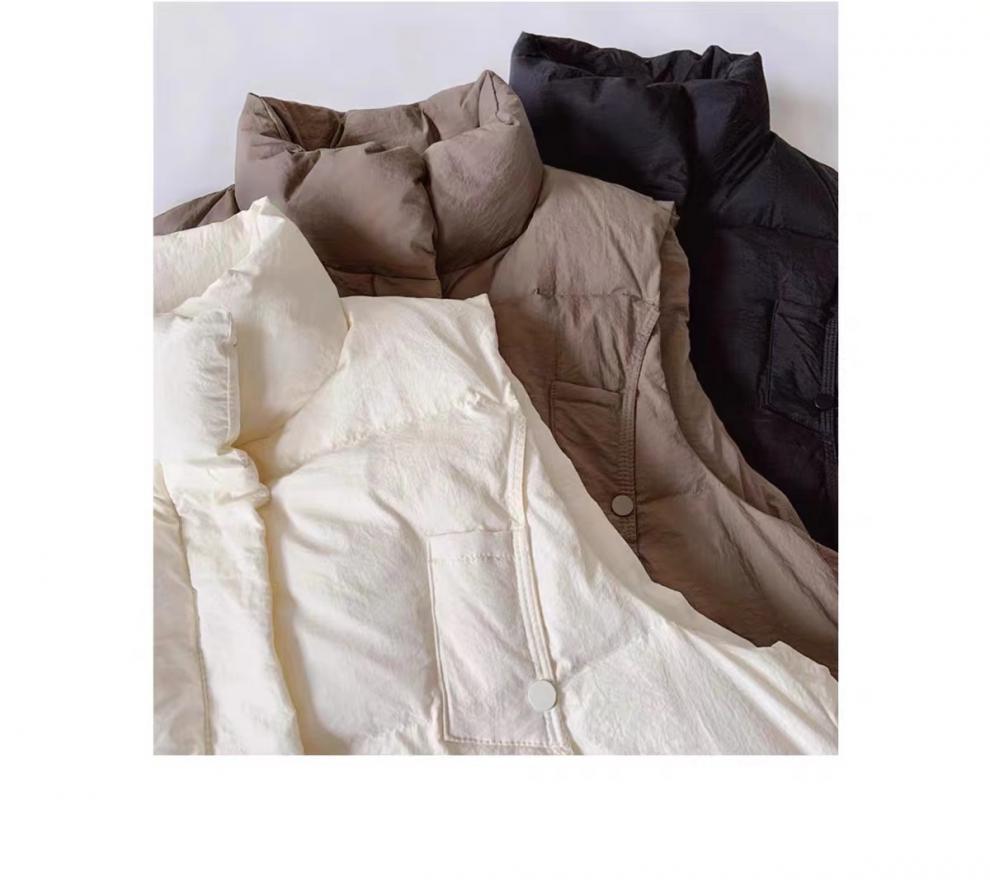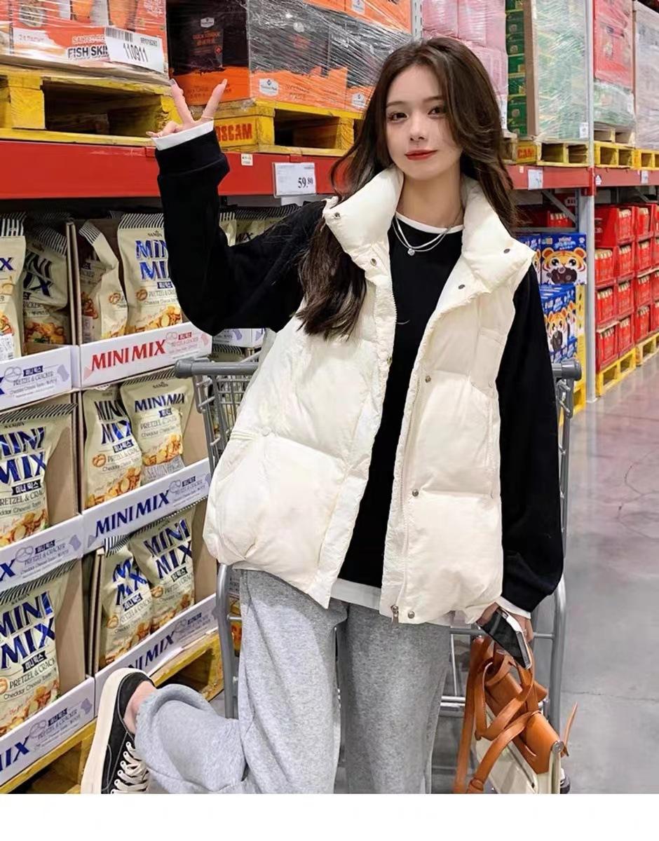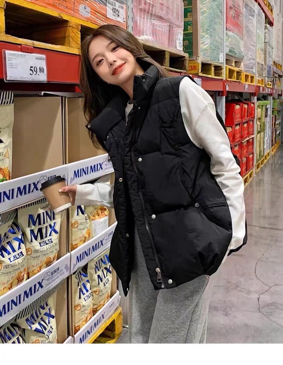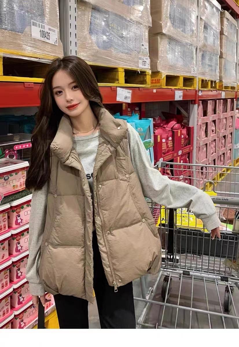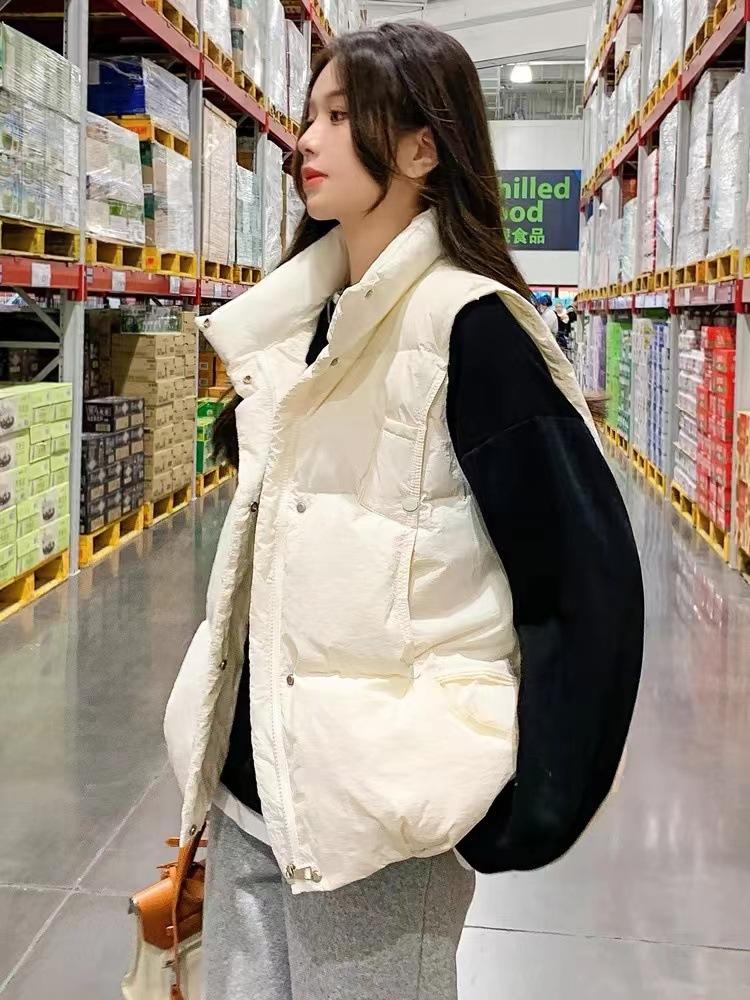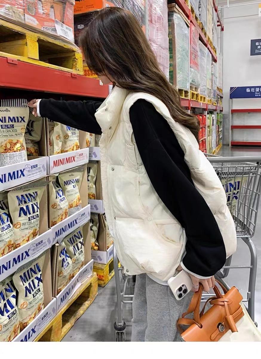Chaleco de Algodón Plumón para Mujer Estilo Coreano Holgado 2024 Nuevo Otoño e Invierno Blanco Chaqueta Gruesa Chaleco Moda Stand