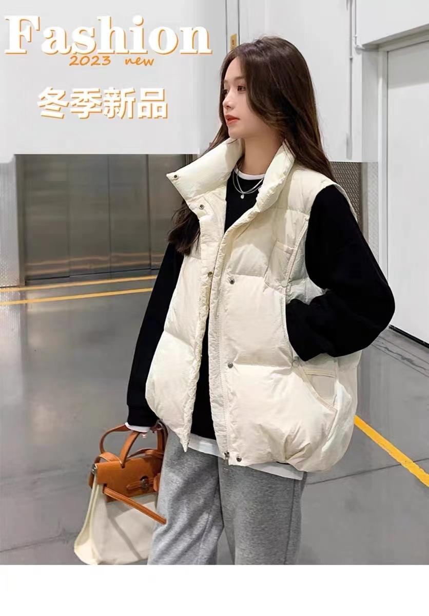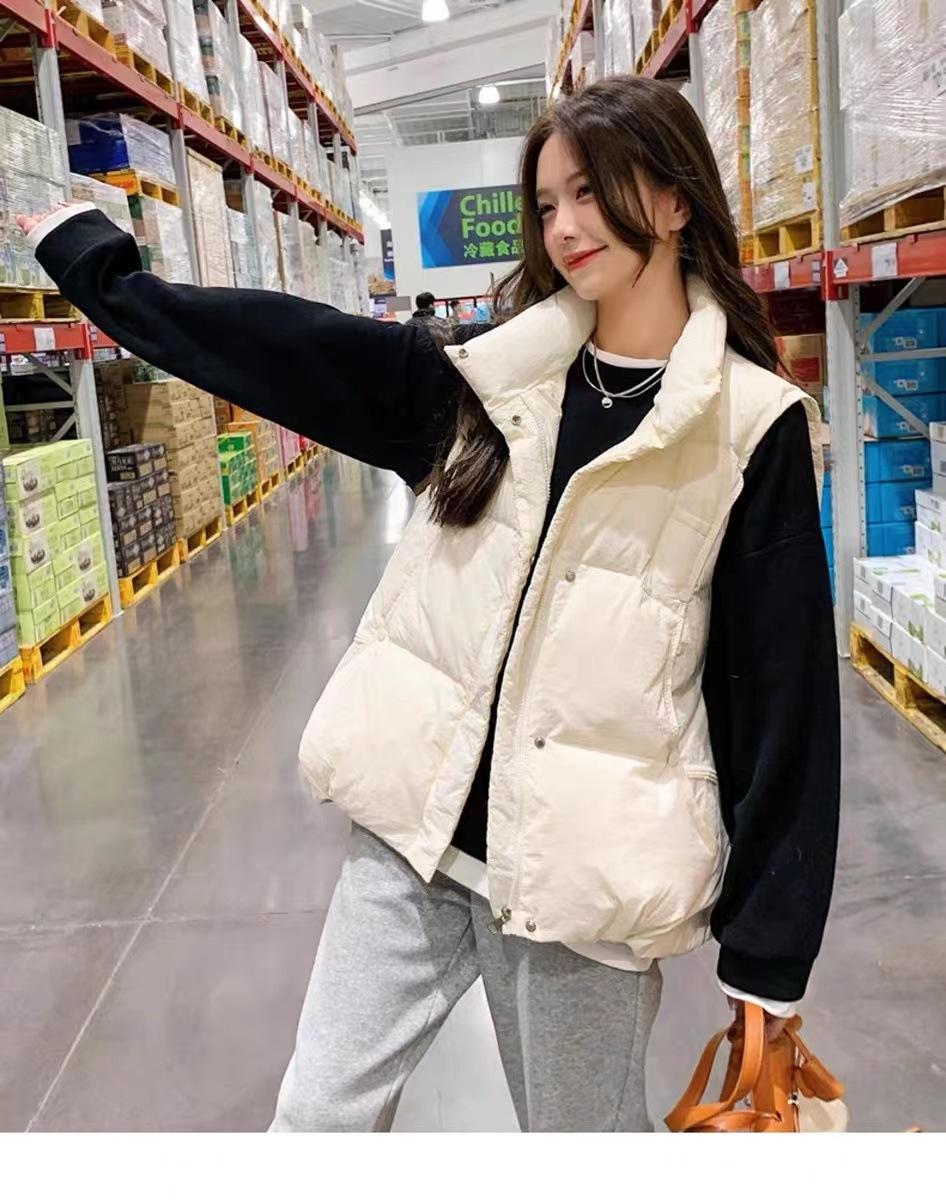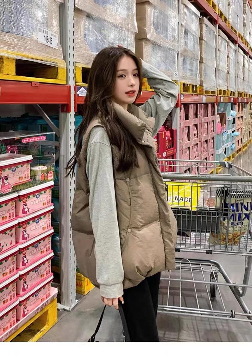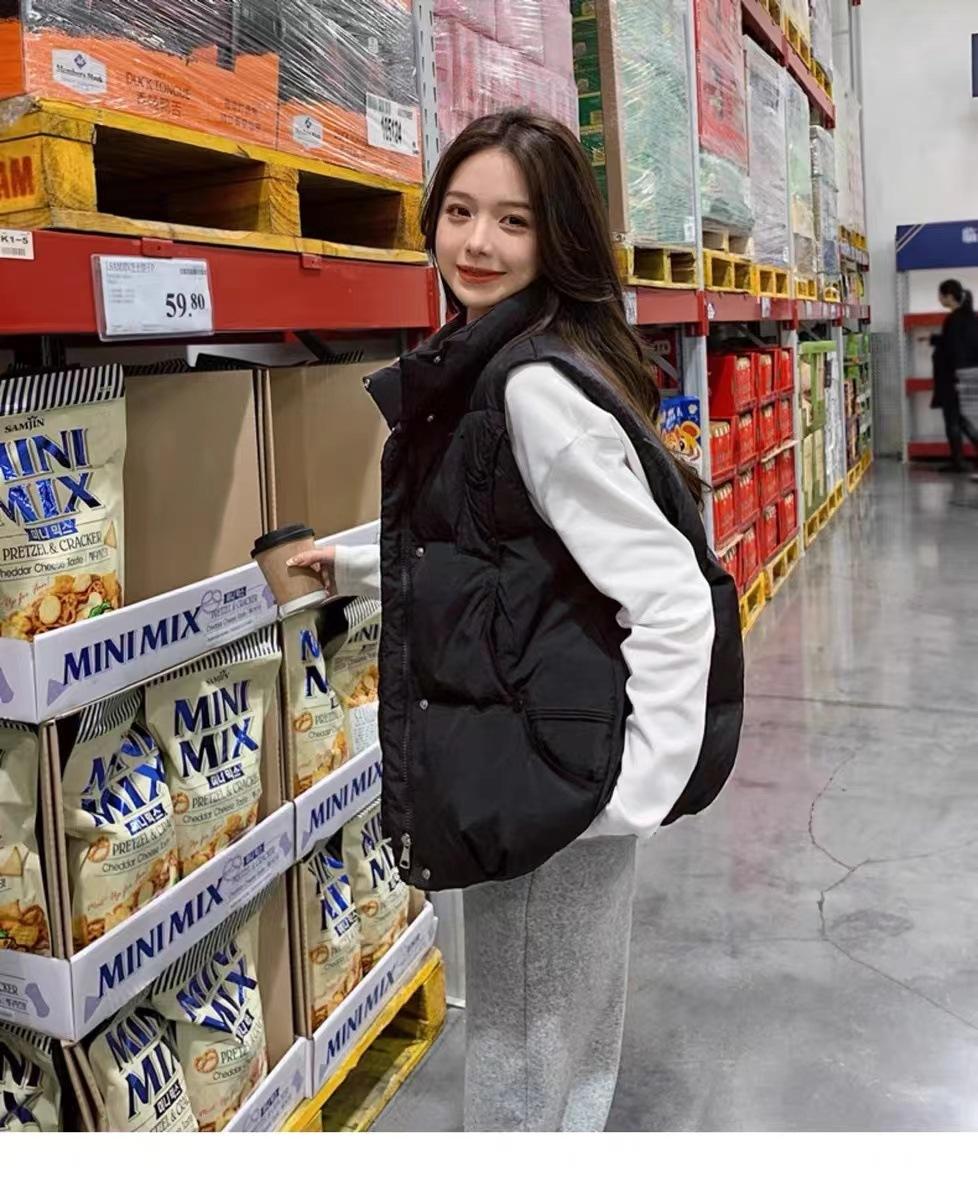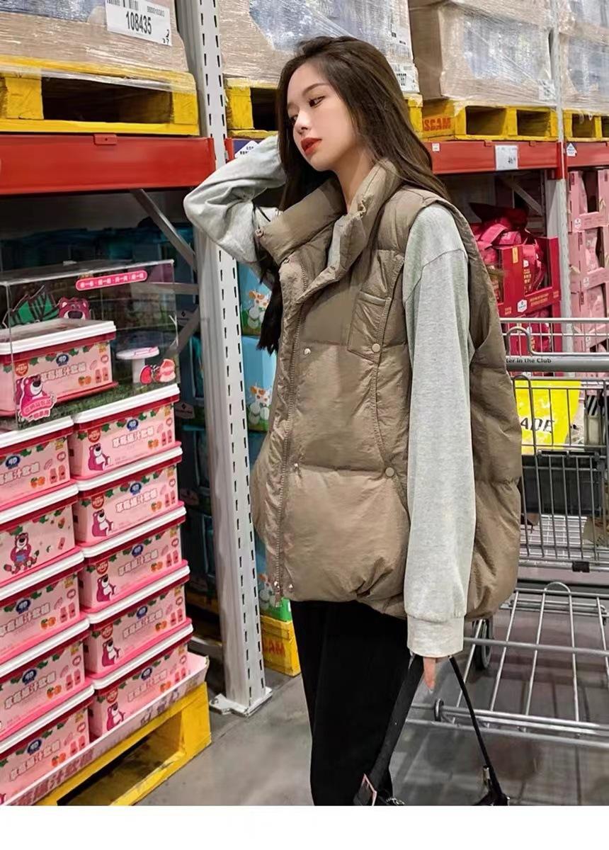 Chaleco de Algodón Plumón para Mujer Estilo Coreano Holgado 2024 Nuevo Otoño e Invierno Blanco Chaqueta Gruesa Chaleco Moda Stand