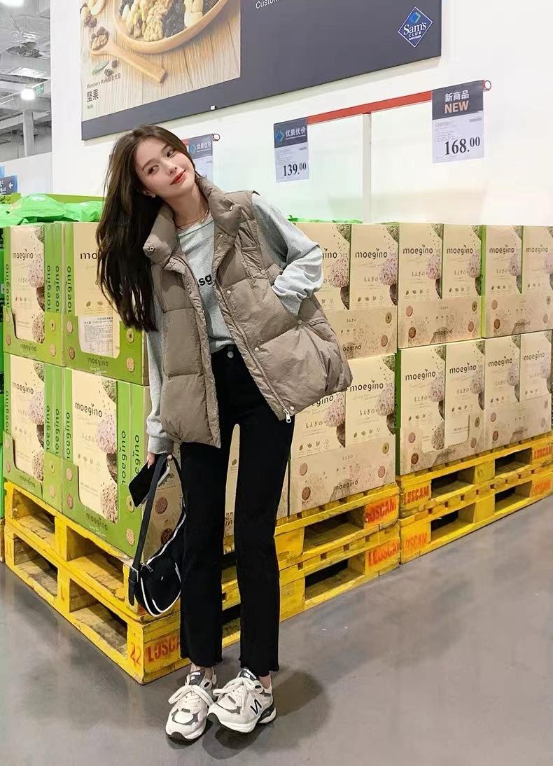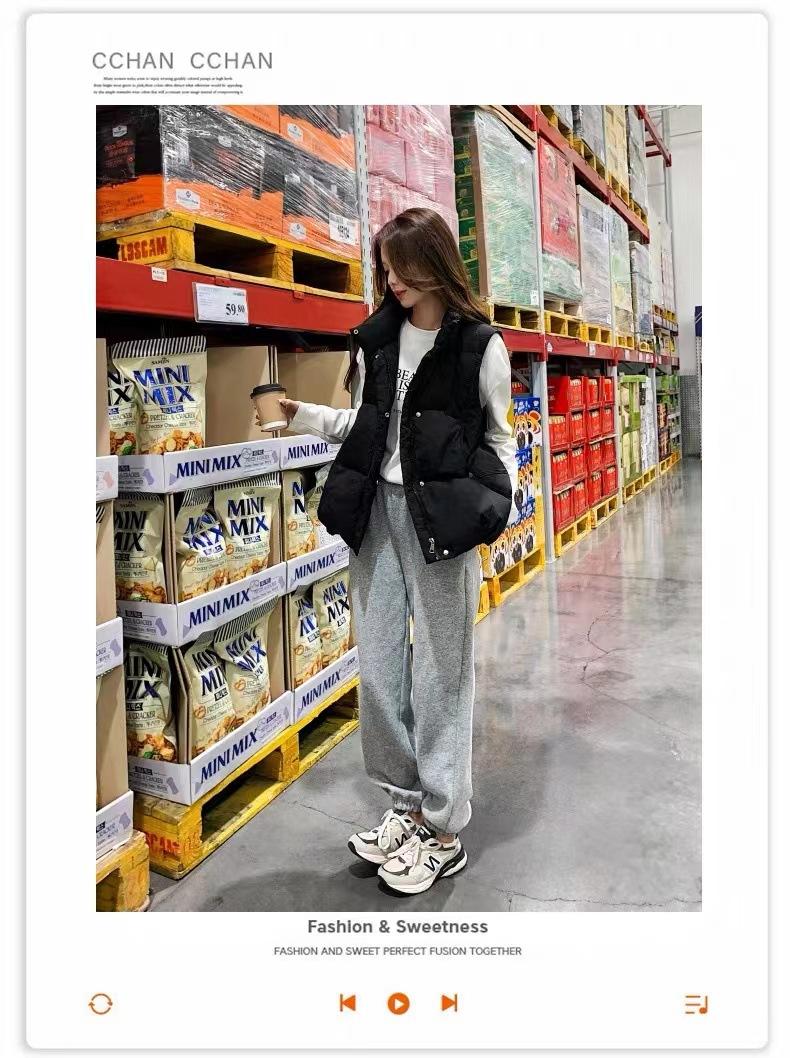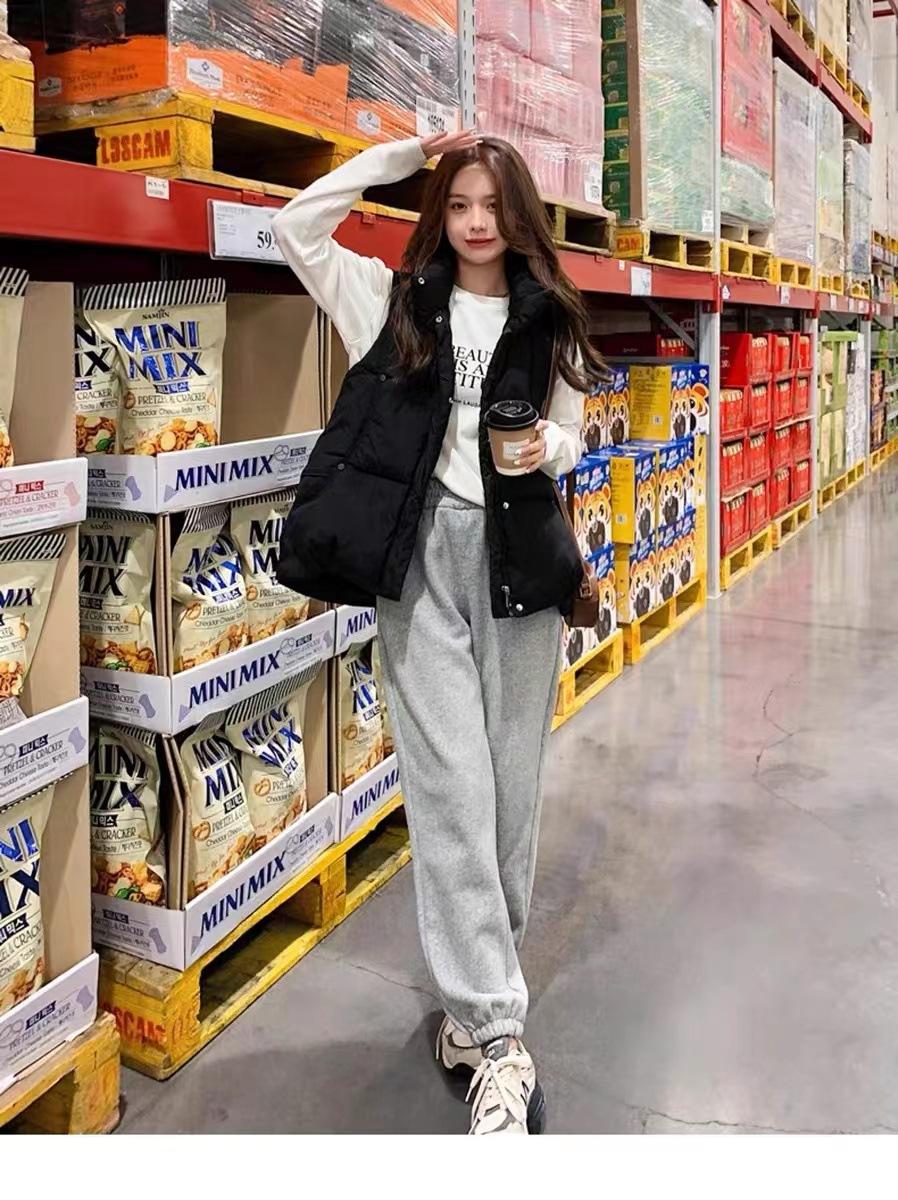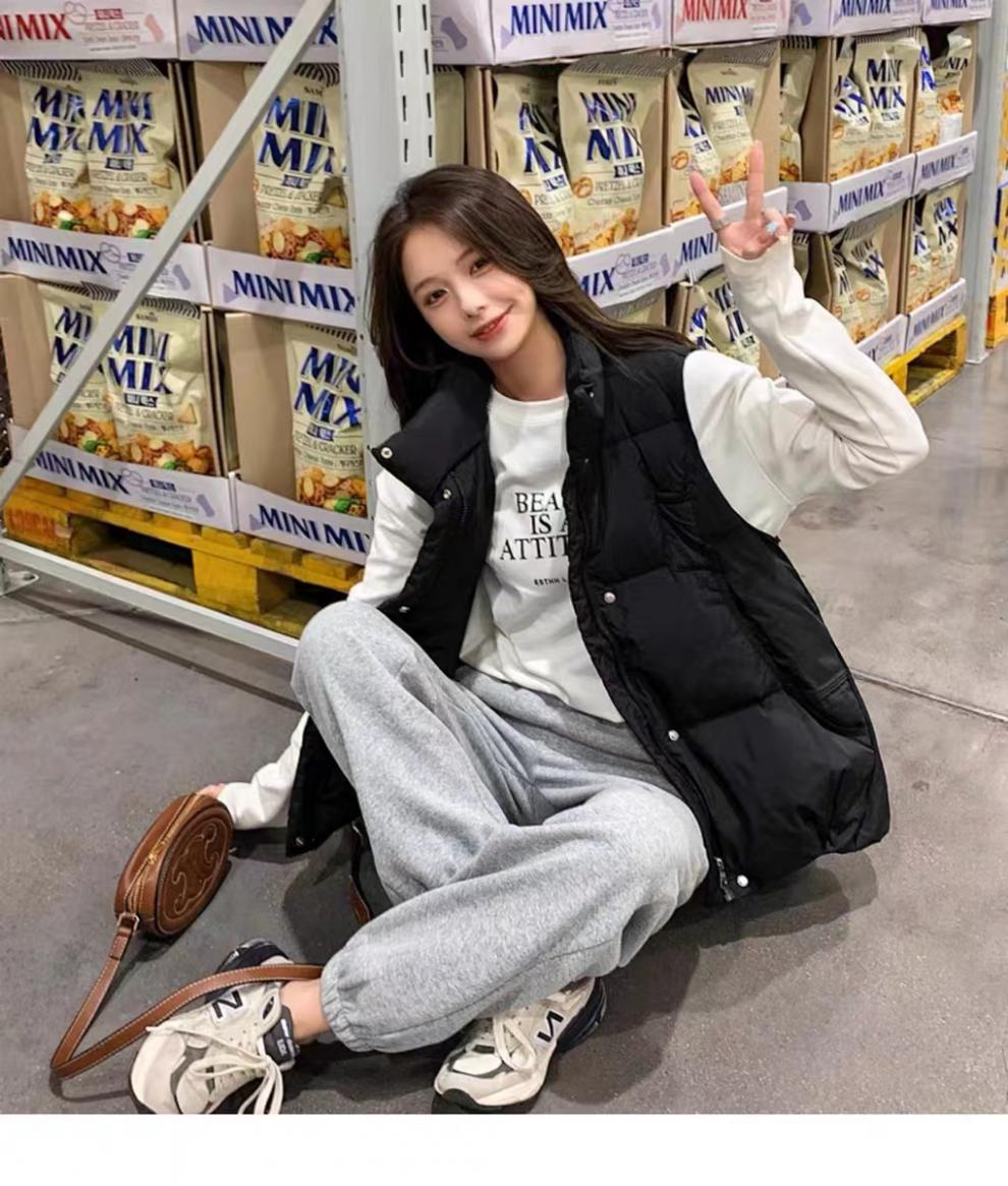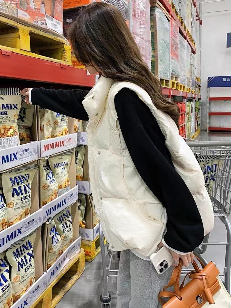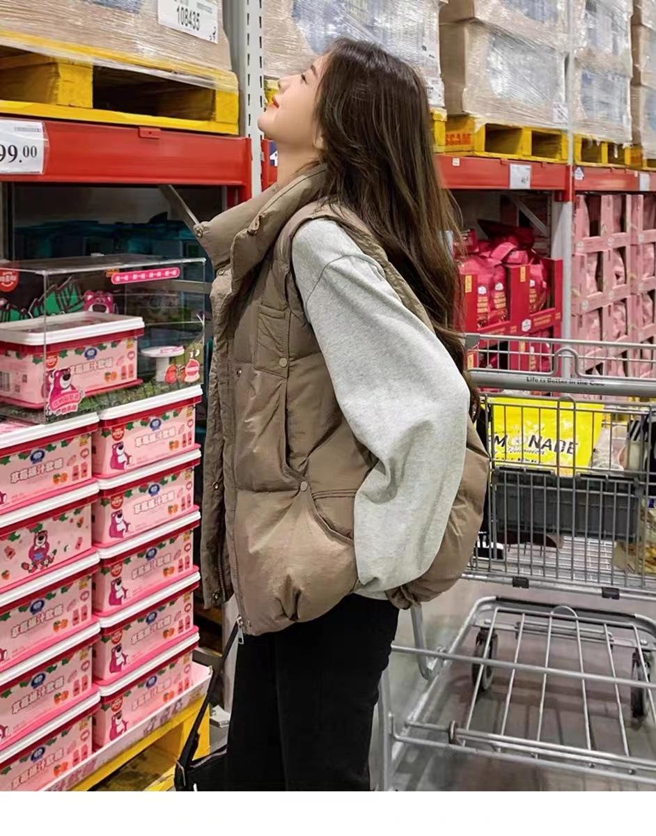 Chaleco de Algodón Plumón para Mujer Estilo Coreano Holgado 2024 Nuevo Otoño e Invierno Blanco Chaqueta Gruesa Chaleco Moda Stand