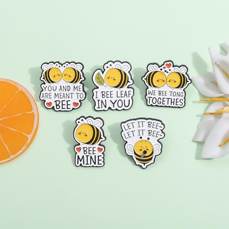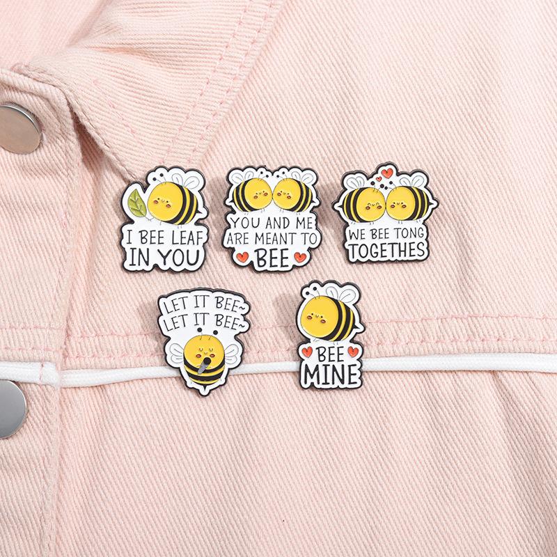 Insignia de Pareja con Forma de Abeja de Dibujos Animados Lindo Versión Q Accesorios para Sombrero Parte Superior Fija Versátil Pin Decorativo Regalo