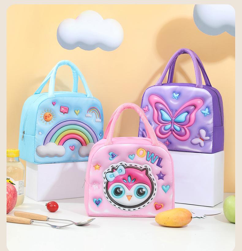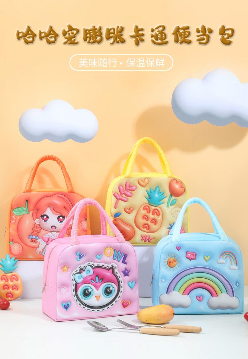 Nueva lonchera para niños, bolsa expandible con dibujos animados tridimensionales, bolsa de aluminio grueso para mantener el hielo fresco, bolsa aislante, lonchera