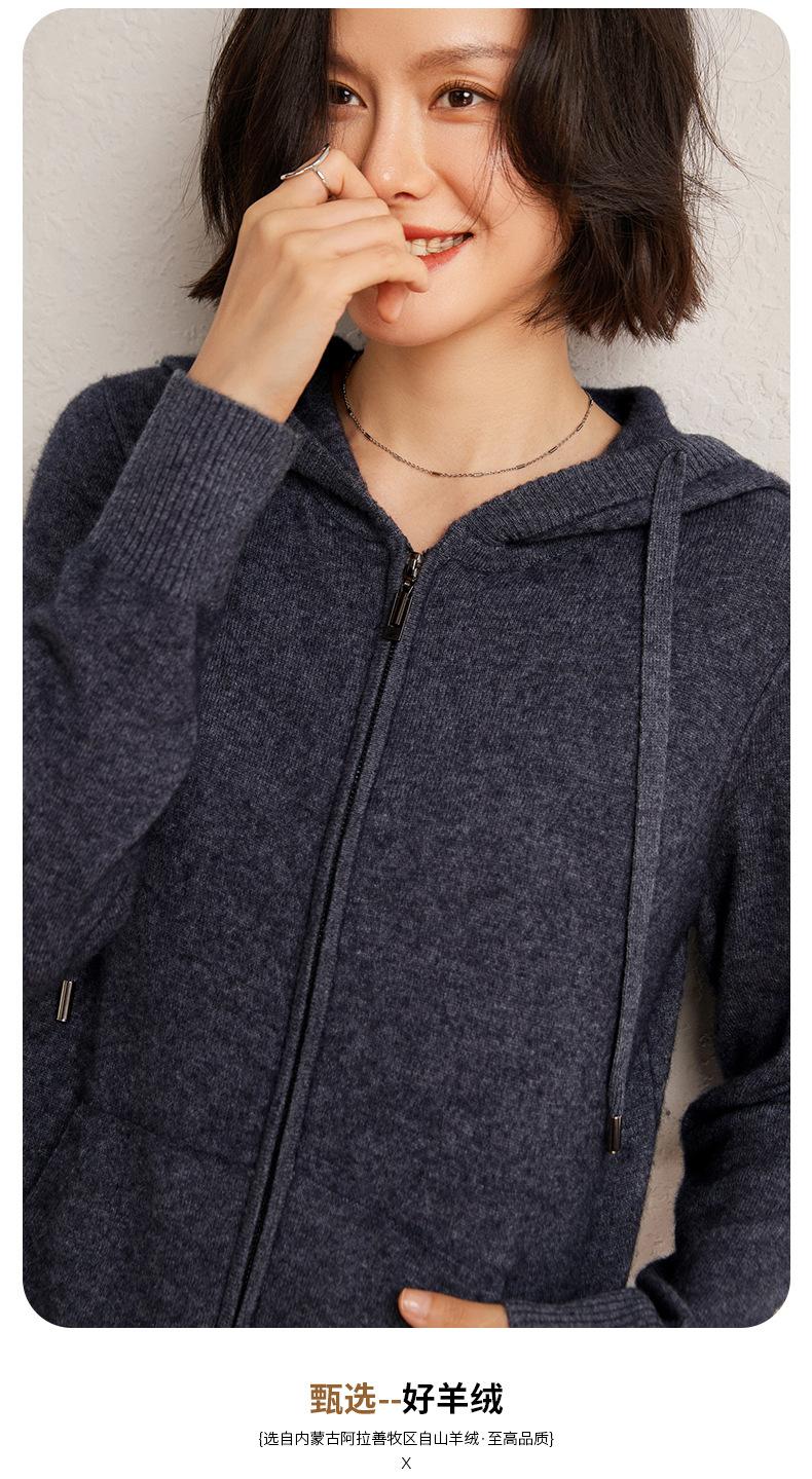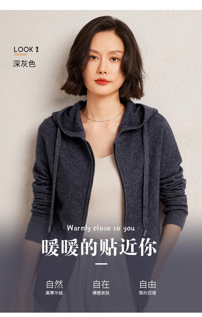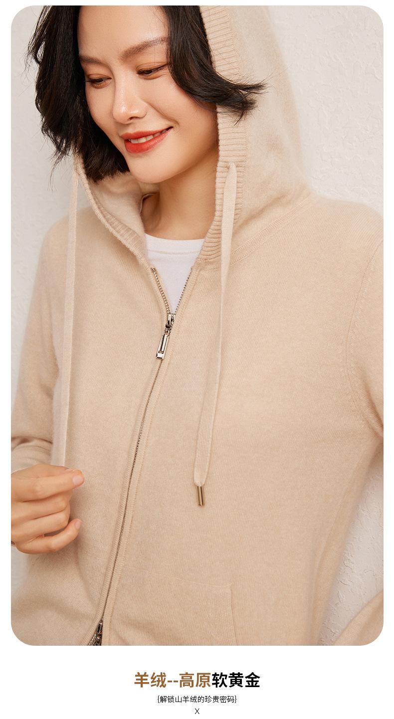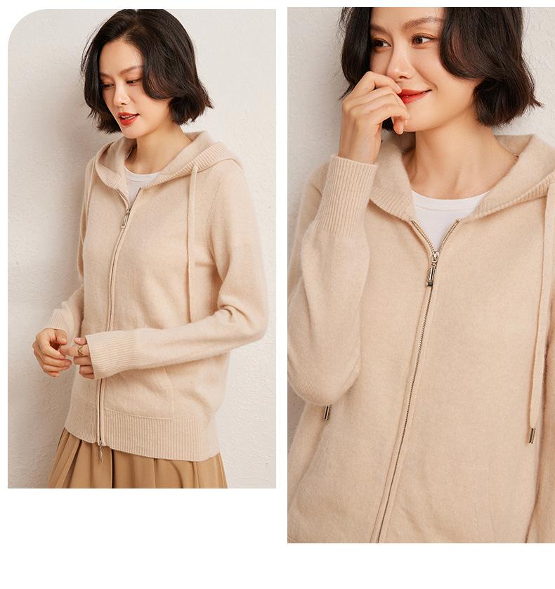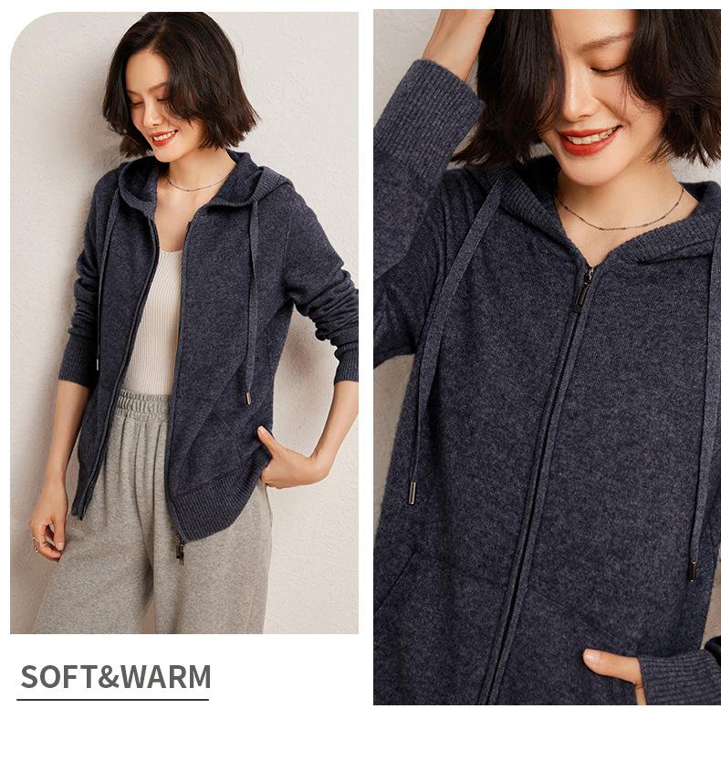 Nuevo cárdigan de punto de cachemira con capucha para mujer, chaqueta elegante de lana con cremallera, top informal holgado de moda para otoño e invierno