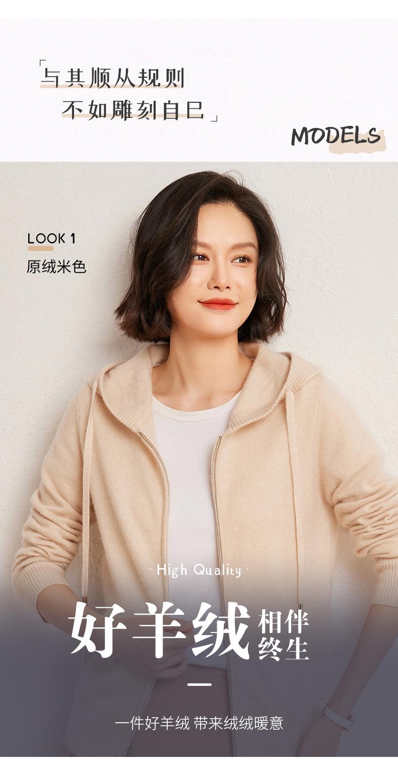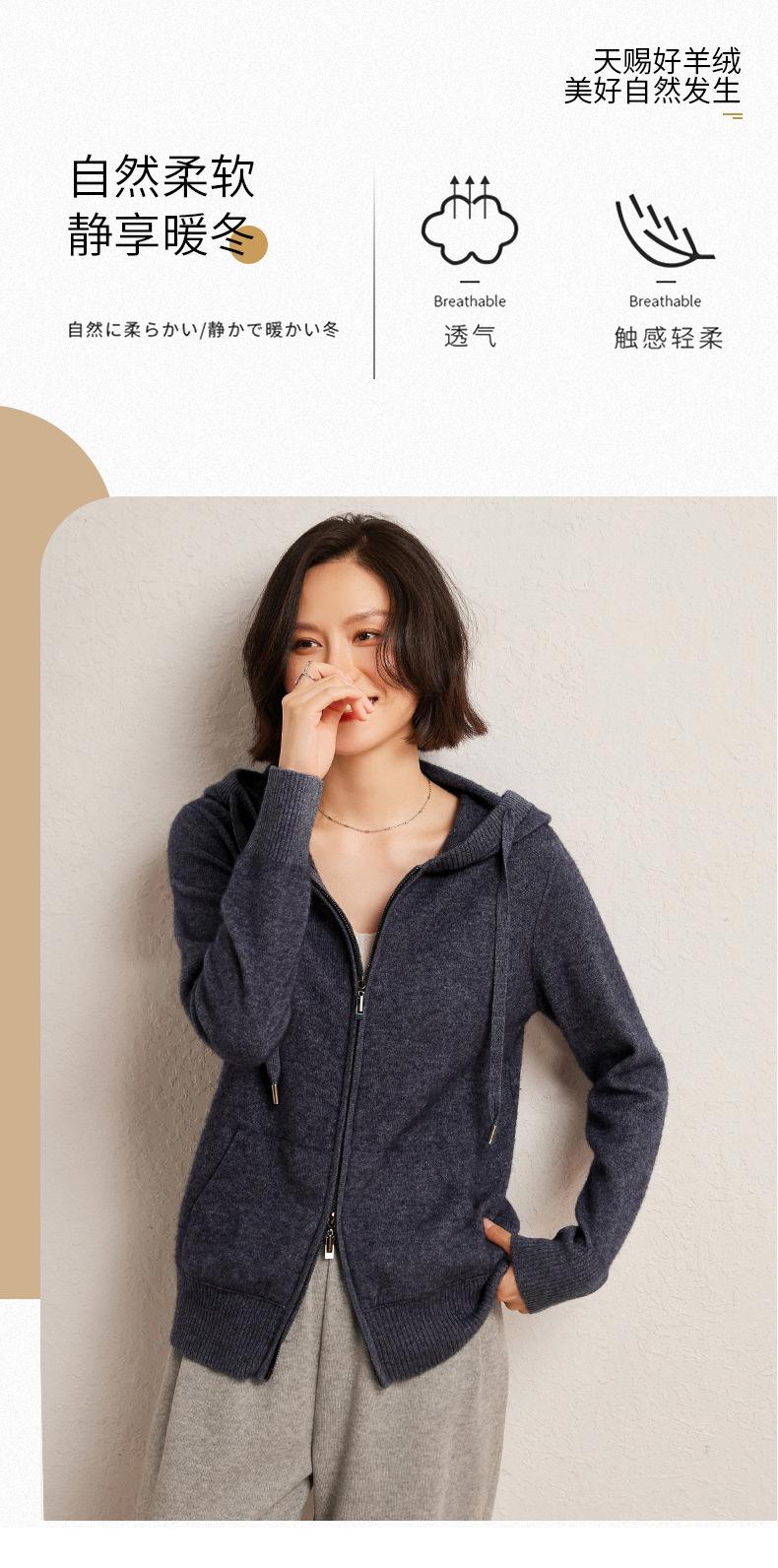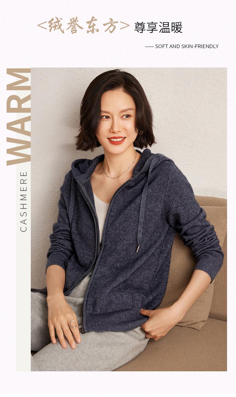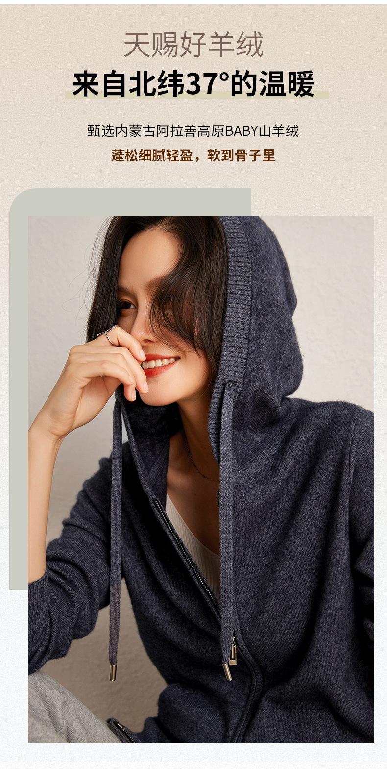 Nuevo cárdigan de punto de cachemira con capucha para mujer, chaqueta elegante de lana con cremallera, top informal holgado de moda para otoño e invierno