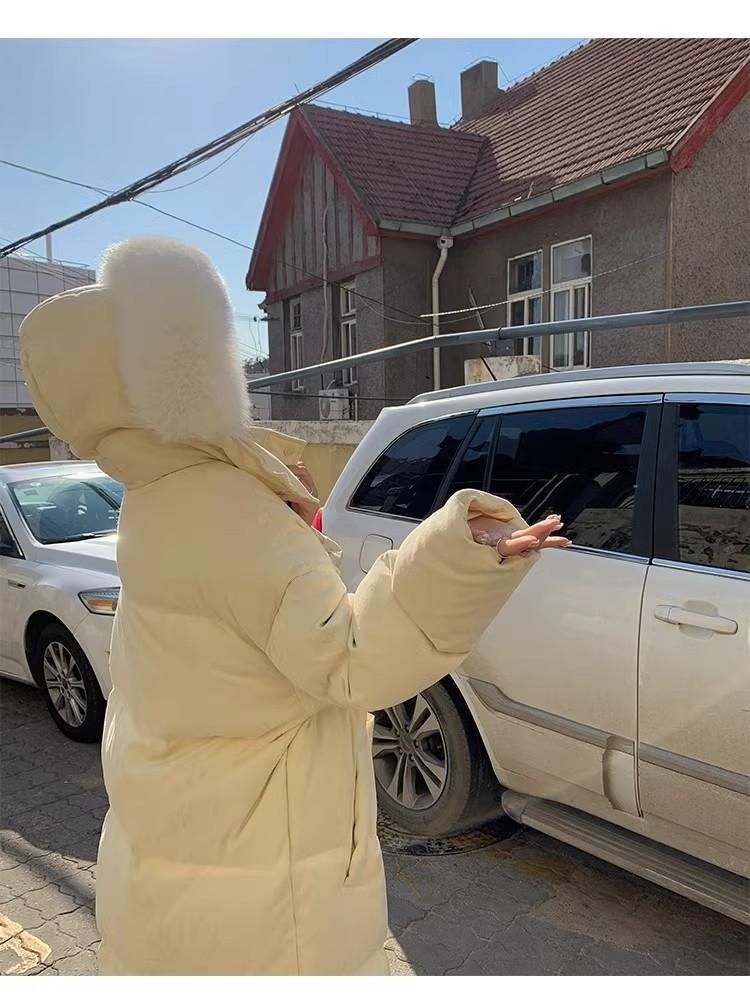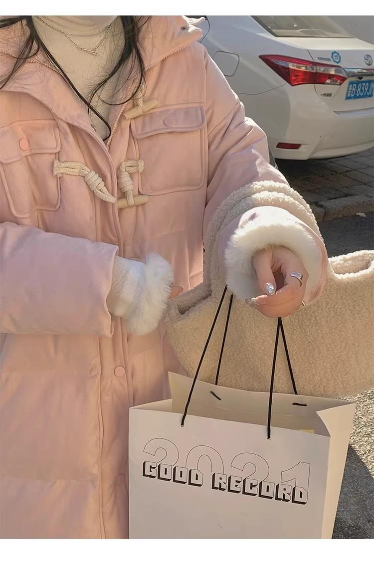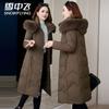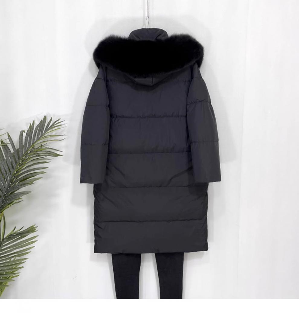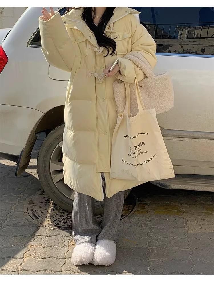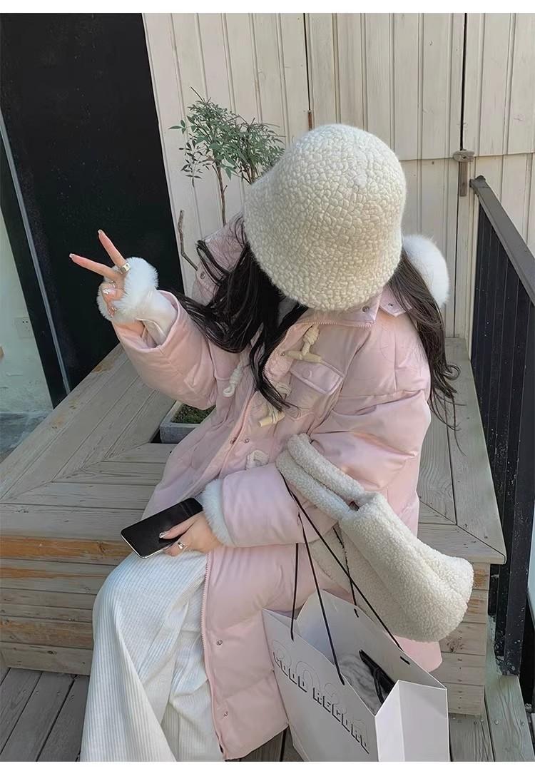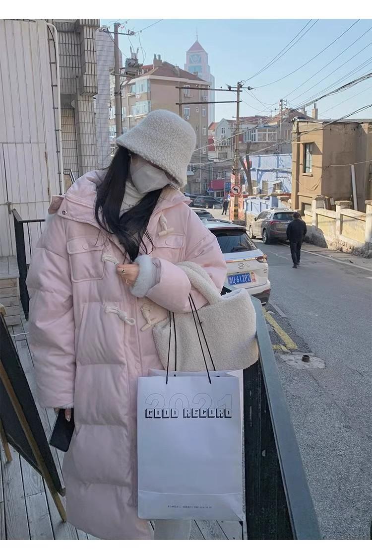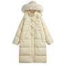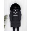 Chaqueta acolchada de algodón para mujer, de longitud media, nuevo estilo 2024, con hebilla de cuerno sobre la rodilla, cuello de piel grande, capucha, abrigo grueso de invierno