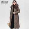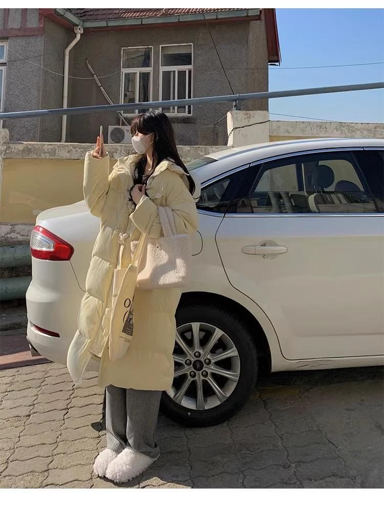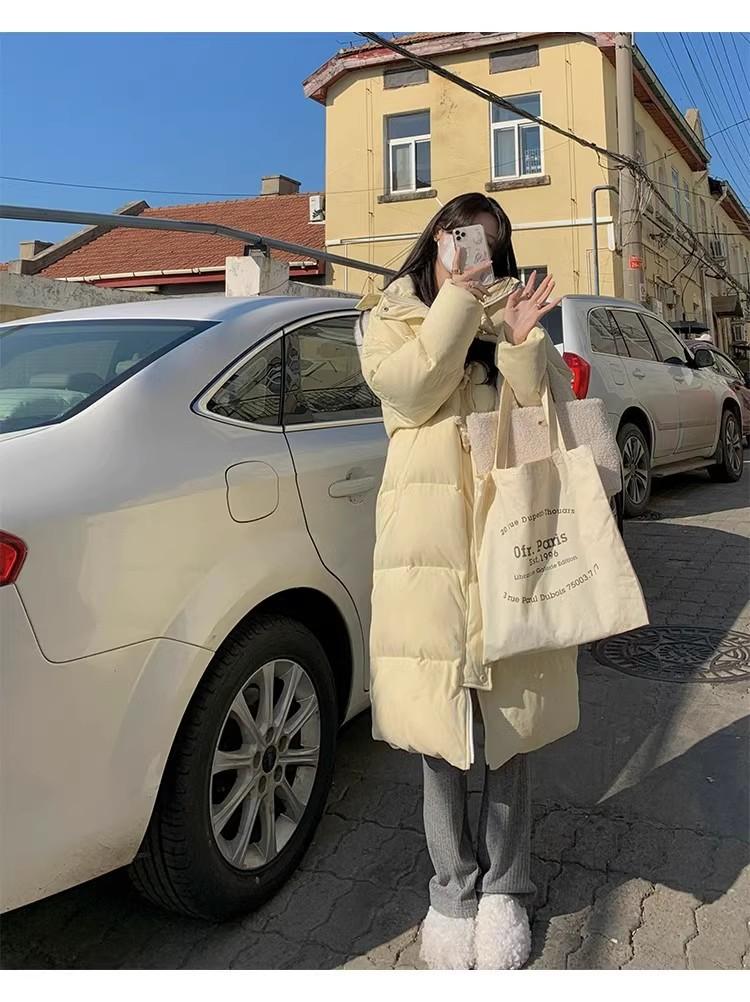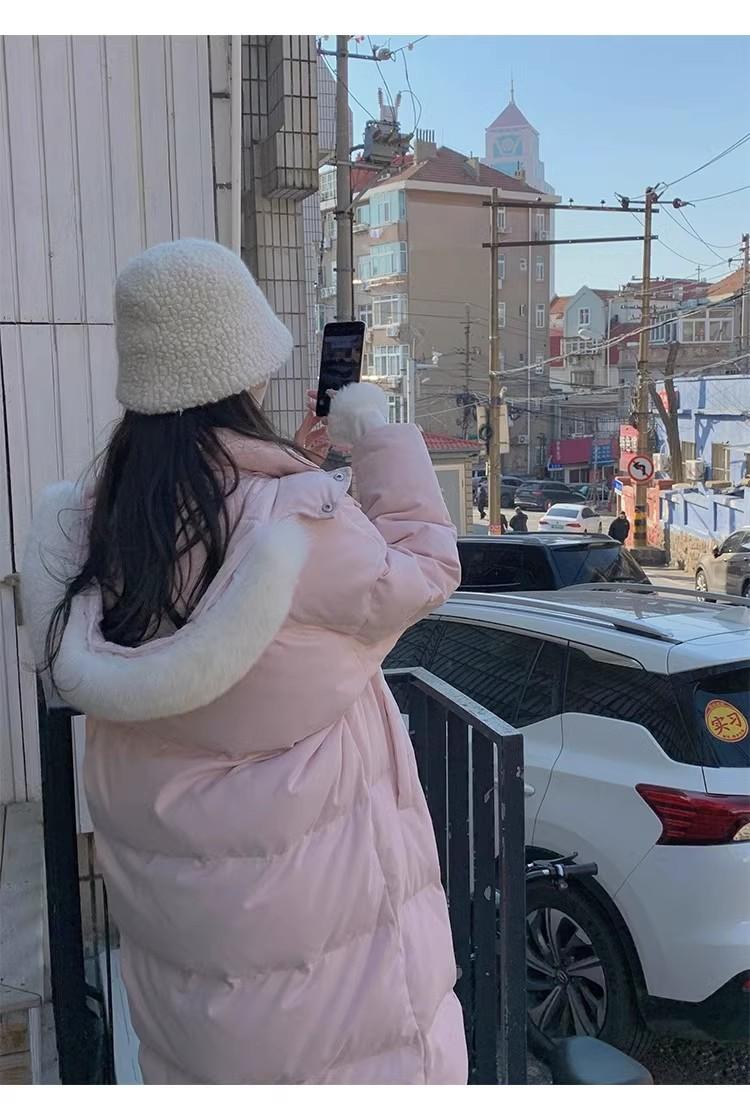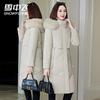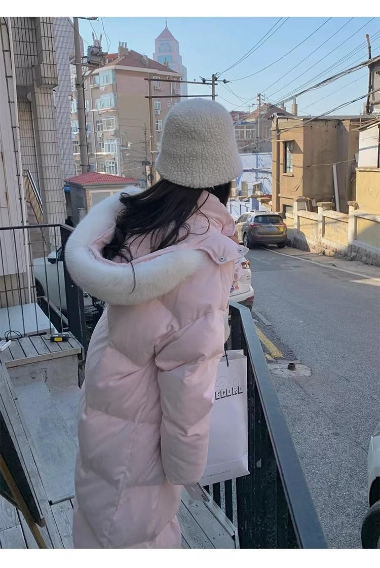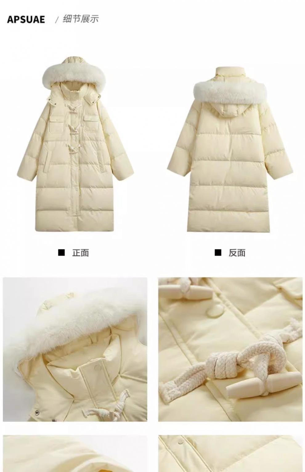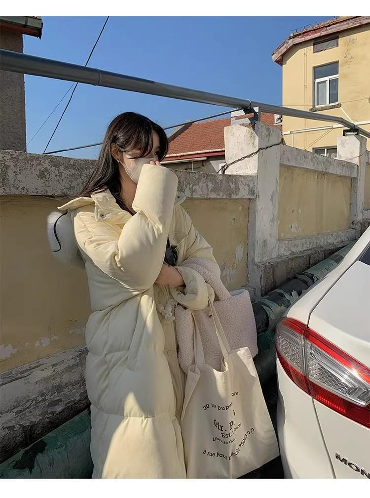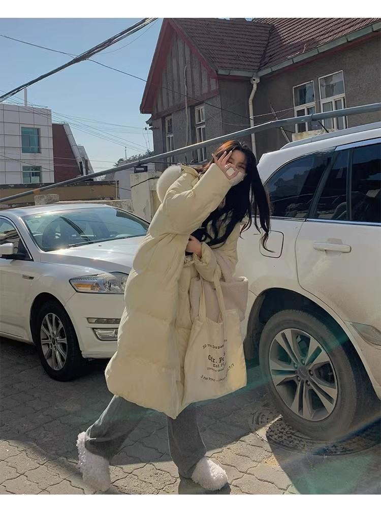 Chaqueta acolchada de algodón para mujer, de longitud media, nuevo estilo 2024, con hebilla de cuerno sobre la rodilla, cuello de piel grande, capucha, abrigo grueso de invierno