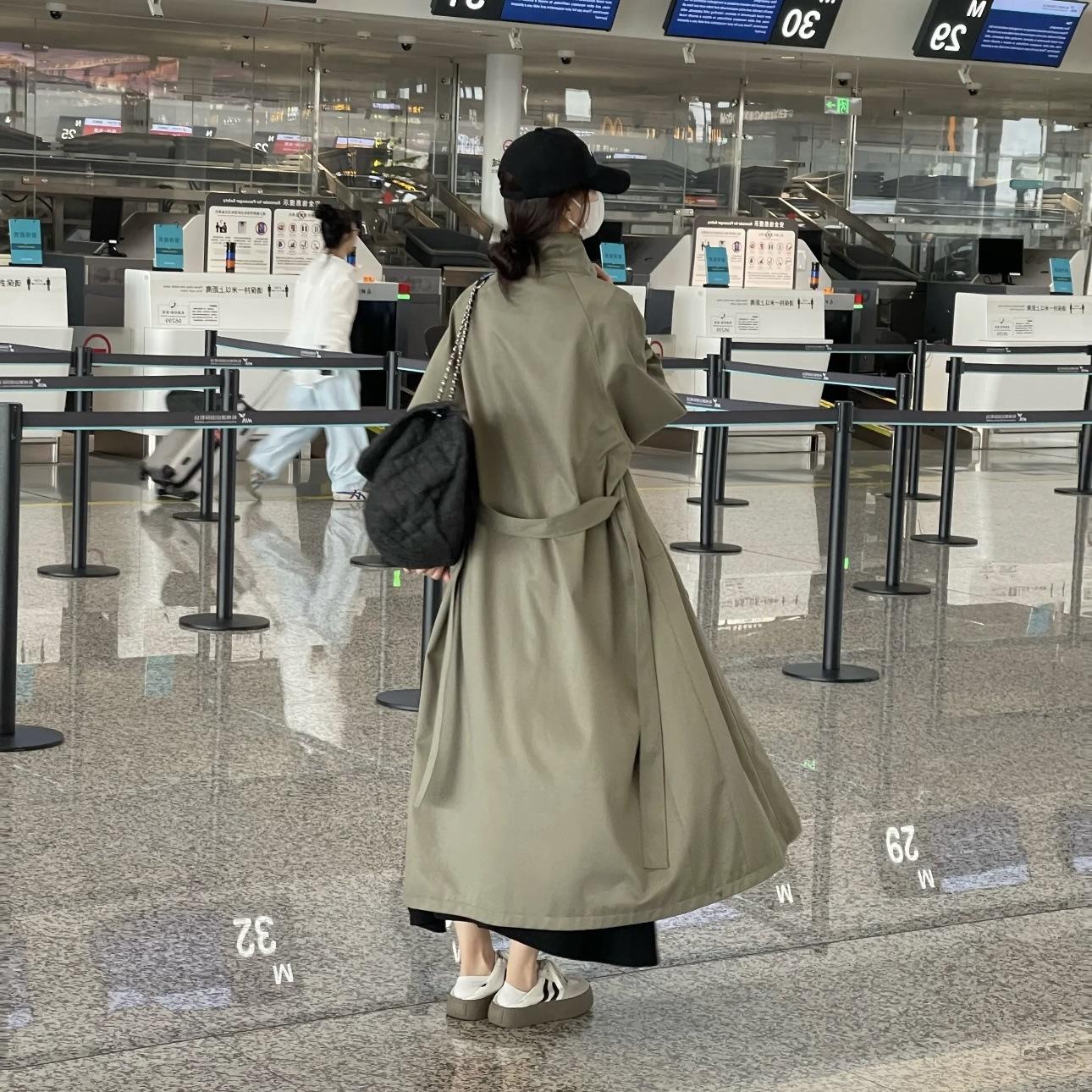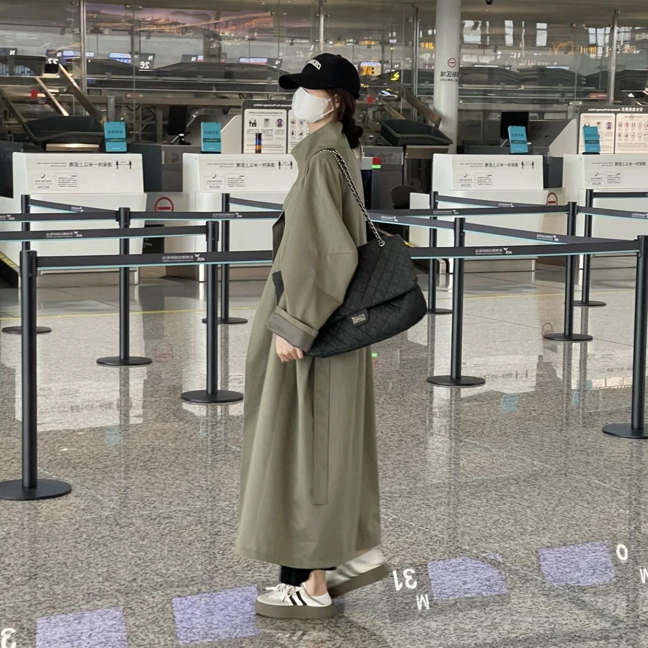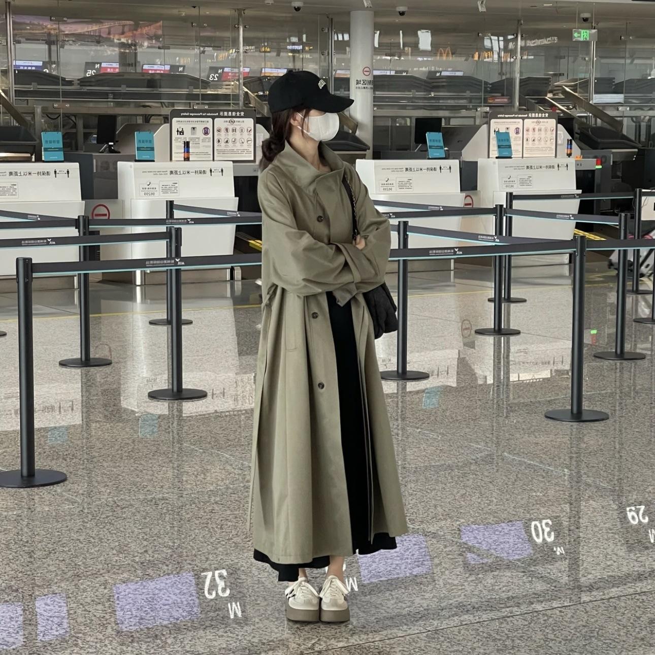 Abrigo holgado estilo coreano estilo perezoso para mujer, abrigo largo informal pequeño de alta gama para otoño.