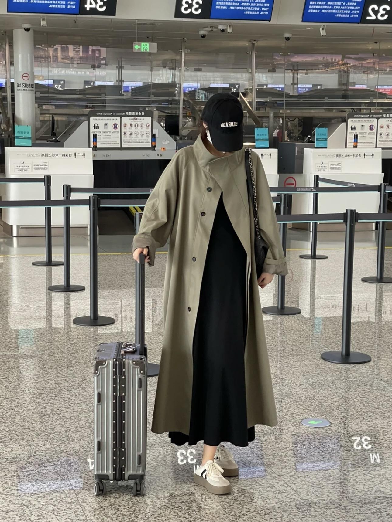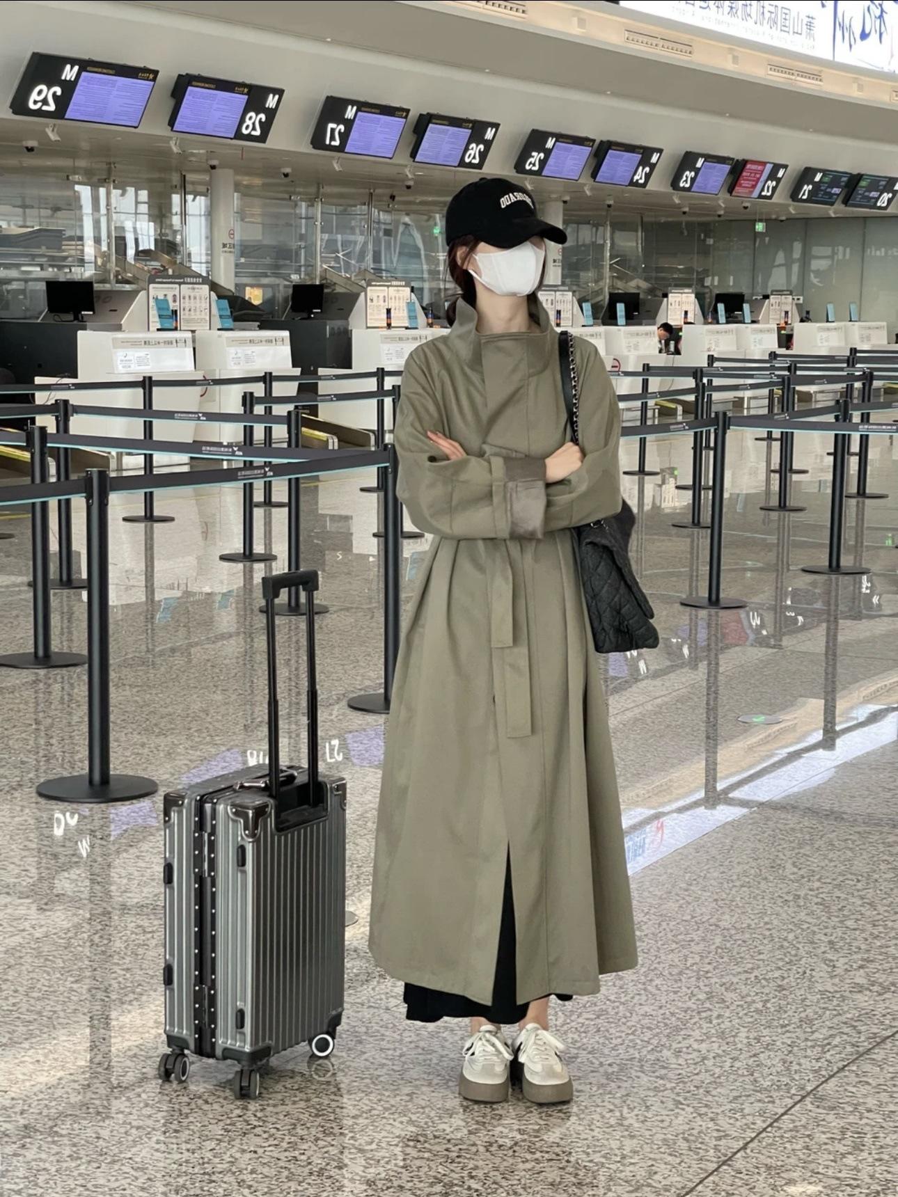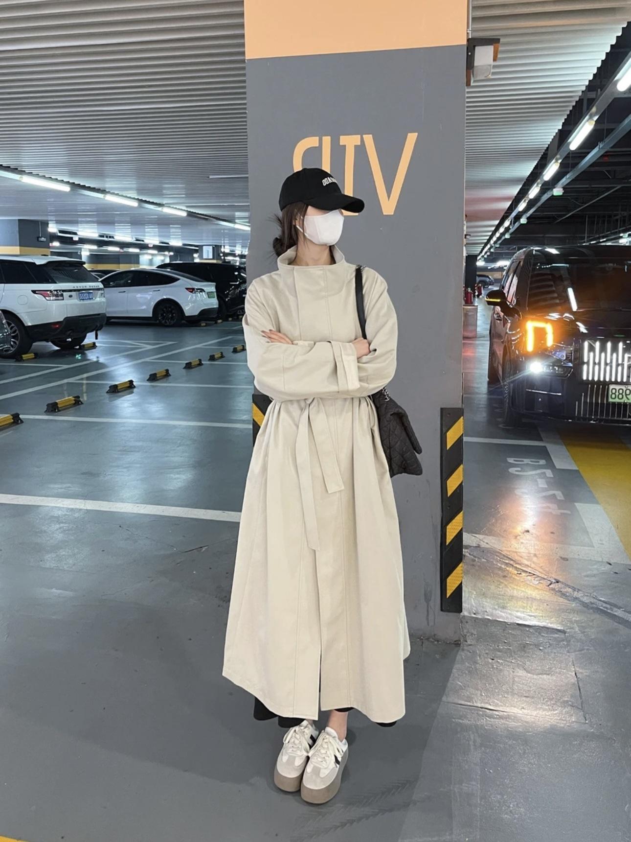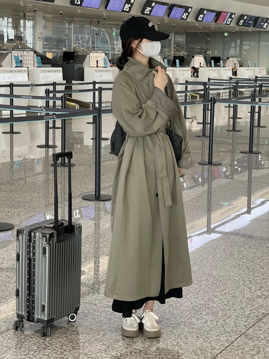 Abrigo holgado estilo coreano estilo perezoso para mujer, abrigo largo informal pequeño de alta gama para otoño.
