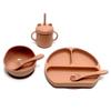 Juego de vajilla infantil de silicona de grado alimenticio fácil de limpiar juego de vajilla de entrenamiento para comer para bebés de 5 piezas