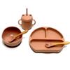 Light Brown (D type plate + children's bowl + silicone cup + wooden handle spoon Fork)