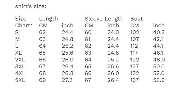 S, M, L, XL, XXL, XXXL, 4XL, 5XL