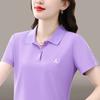 Venta al por mayor, nueva camiseta polo de manga corta para mujer, verano 2025, camiseta de media manga con solapa y estampado bordado, ropa de trabajo para equipo.