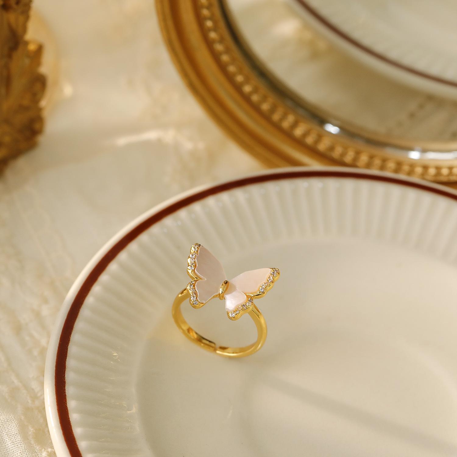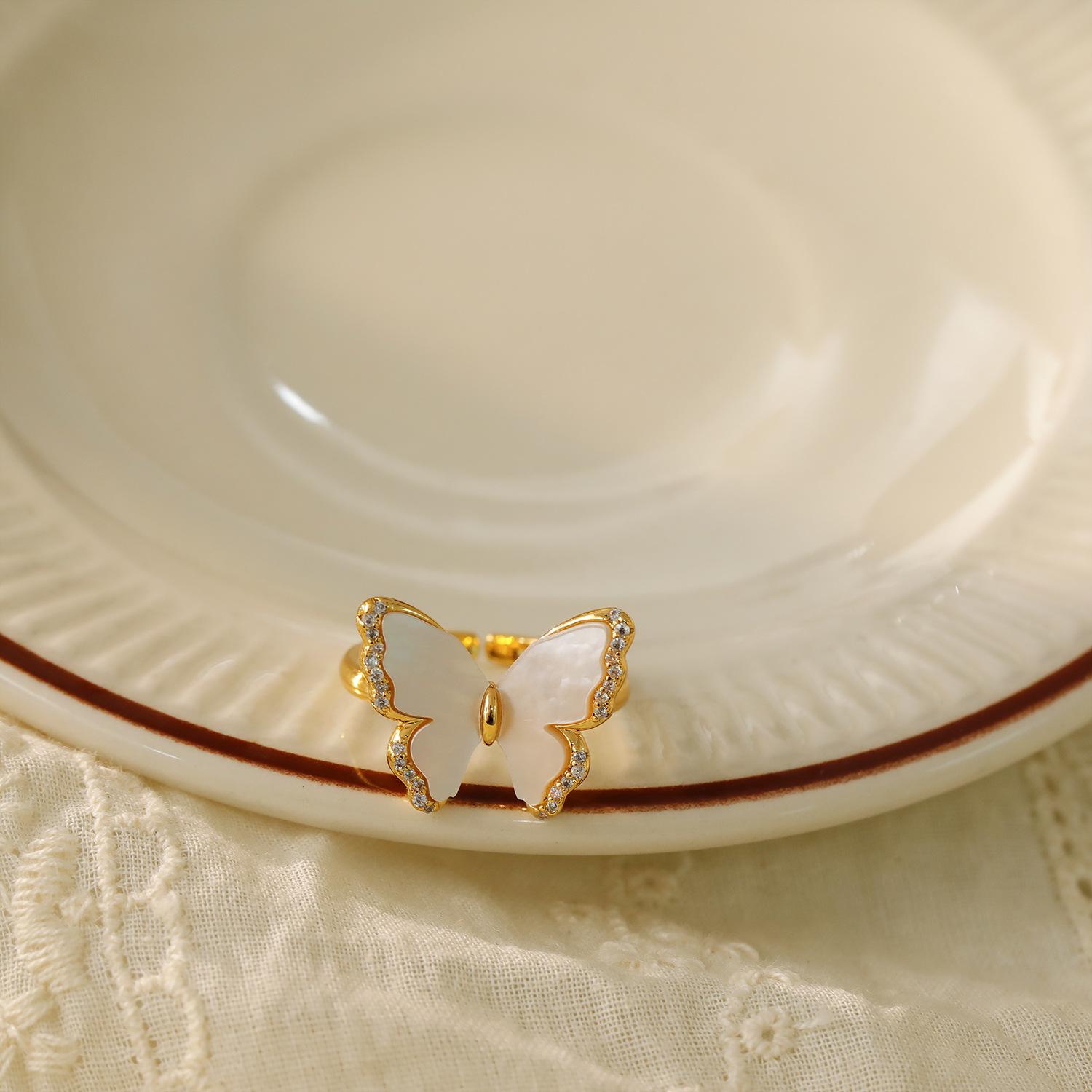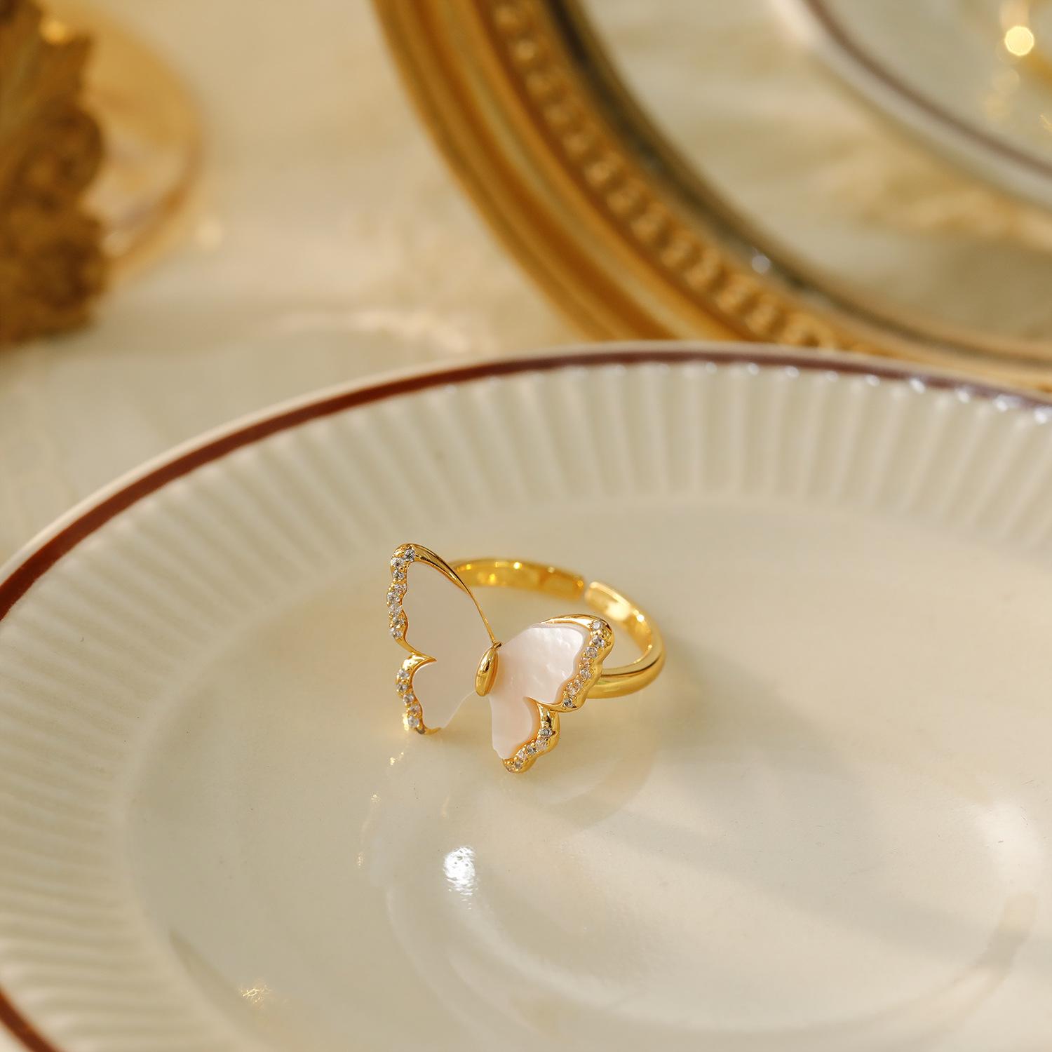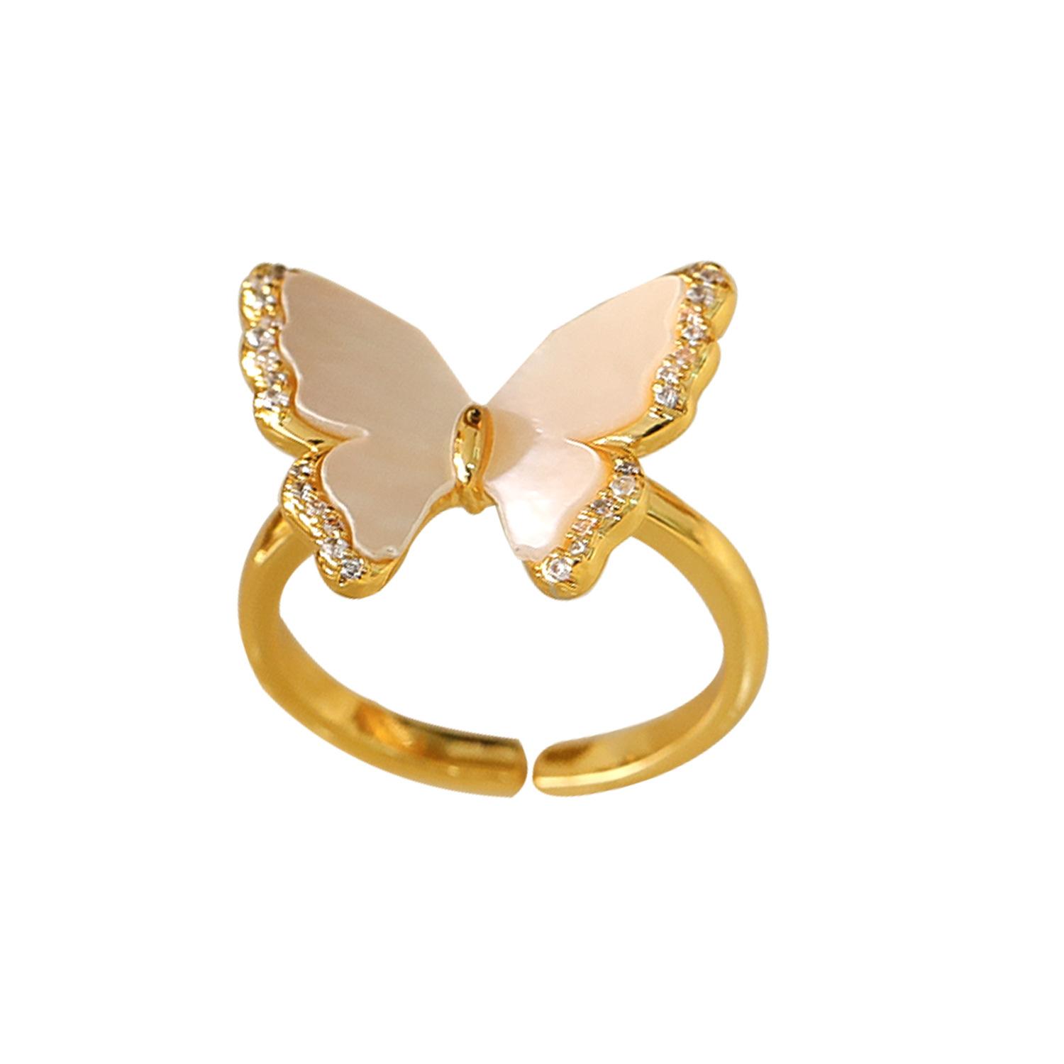 Marca: Anillo abierto de circonita con concha de mariposa de metal de verano coreano nuevo producto