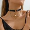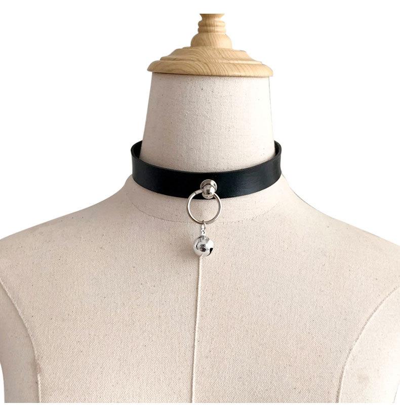 [Venta directa de fábrica] Collar de campana personalizado estilo punk europeo y americano con anillo colgante de cuerda de tracción, collar de moda moderno