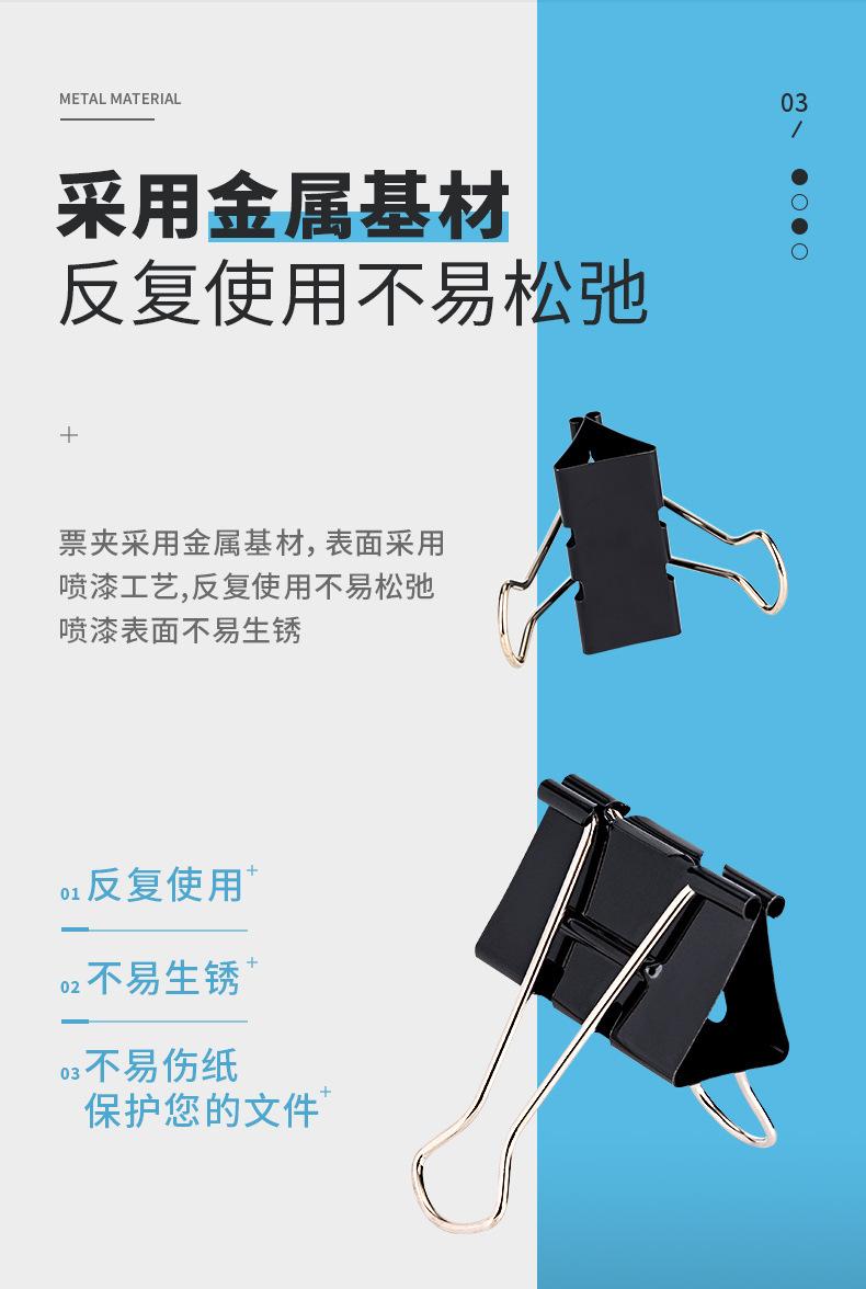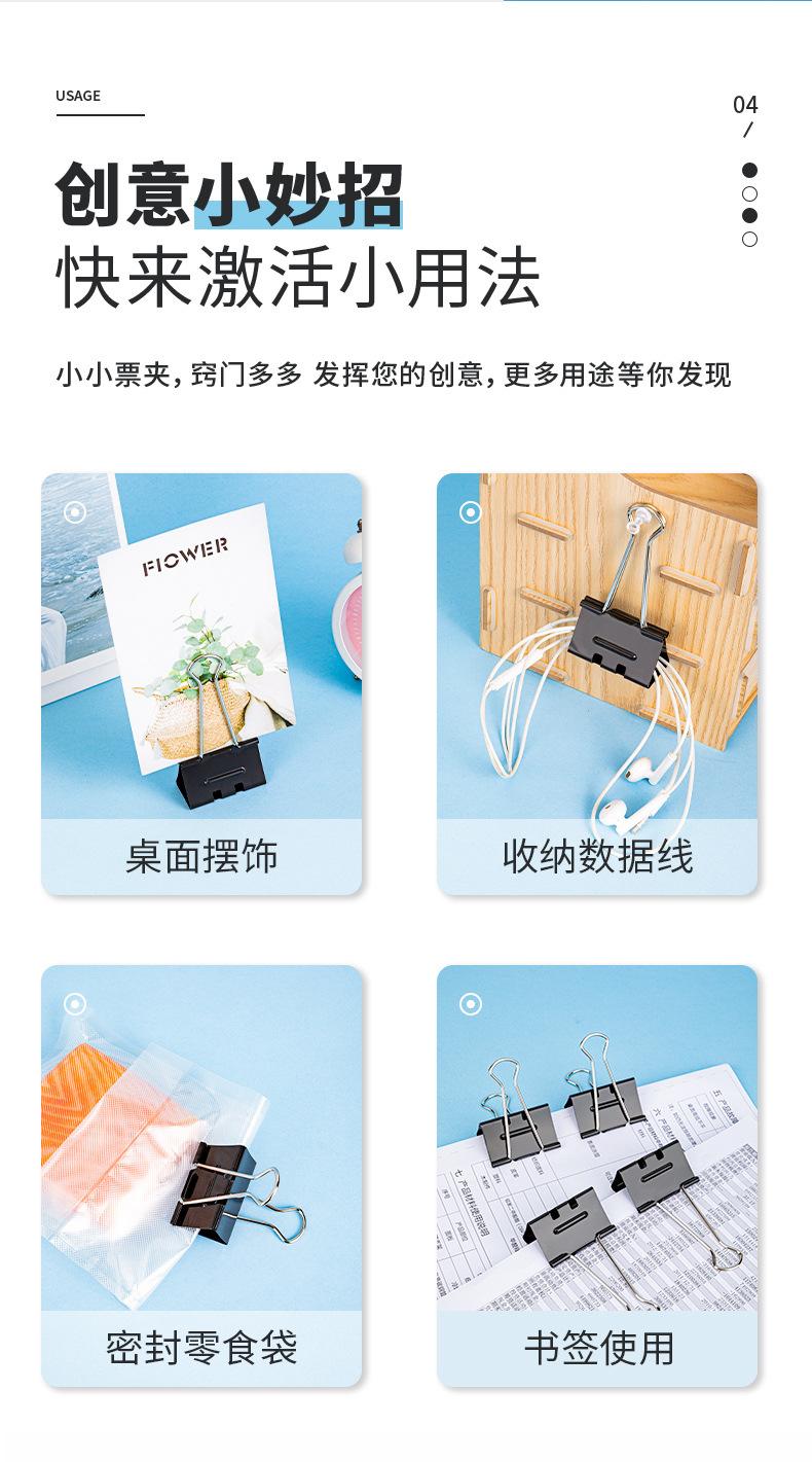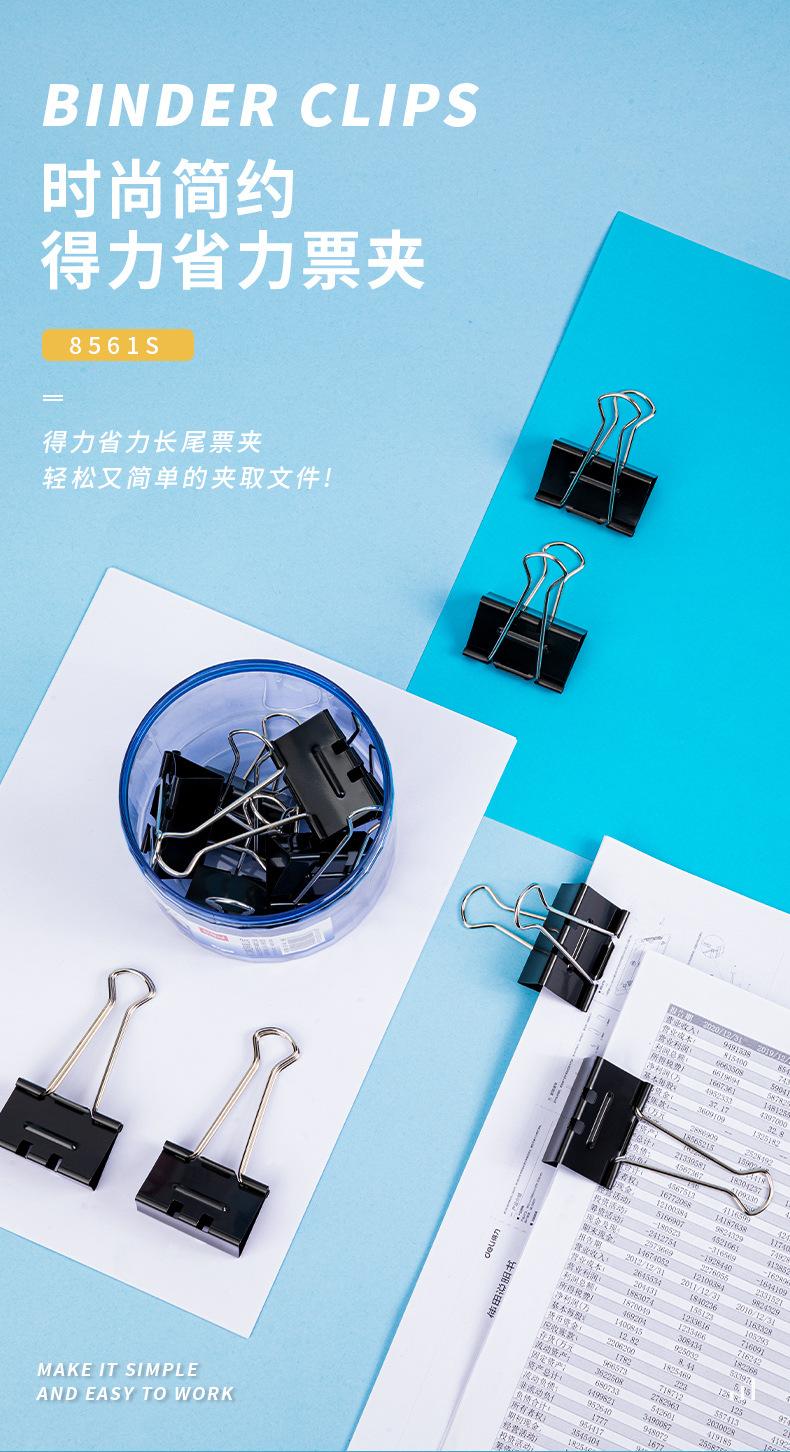 Clip de cola de milano Deli, clip de cola larga, suministros de oficina, clip de billetes de metal negro, clip de almacenamiento grande de papelería de tamaño pequeño
