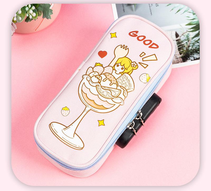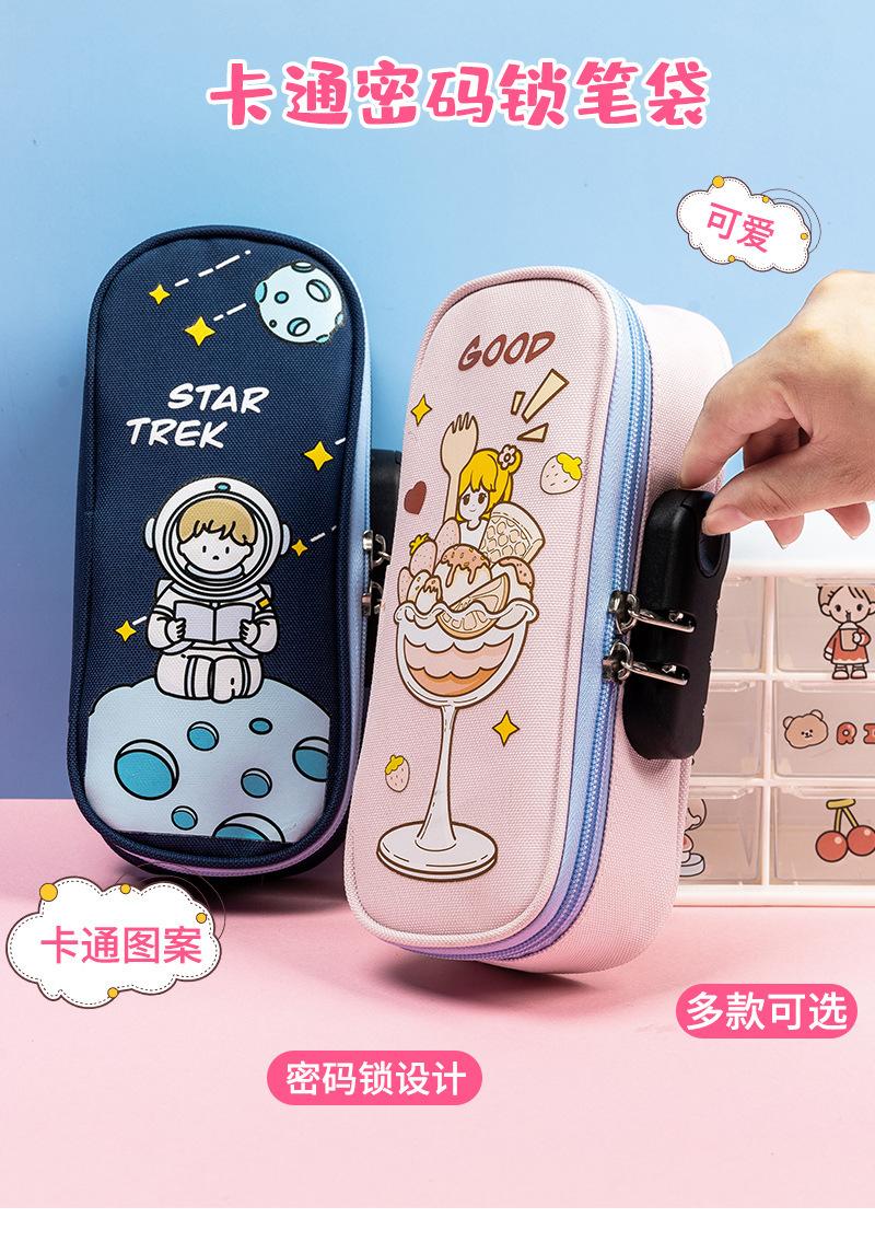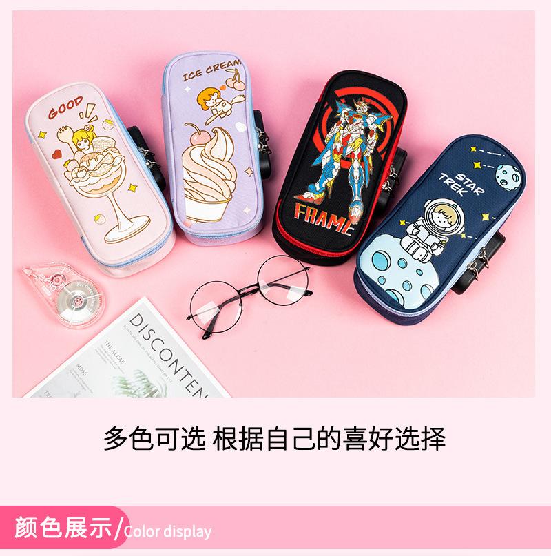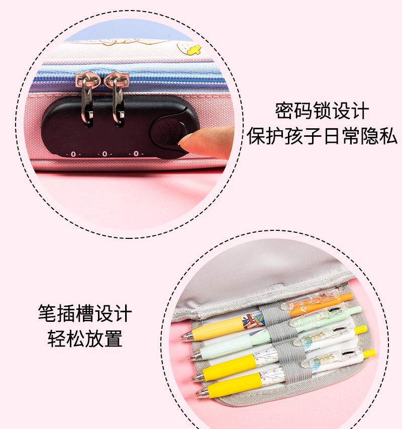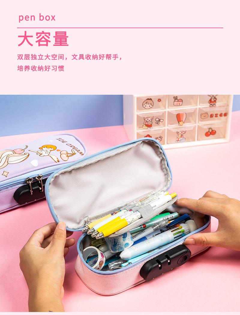Estuche para lápices con cerradura de combinación de dibujos animados multifuncional para estudiantes de secundaria, caja de papelería de gran capacidad y múltiples capas para niños y estudiantes de primaria.