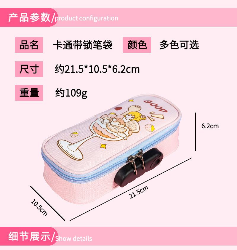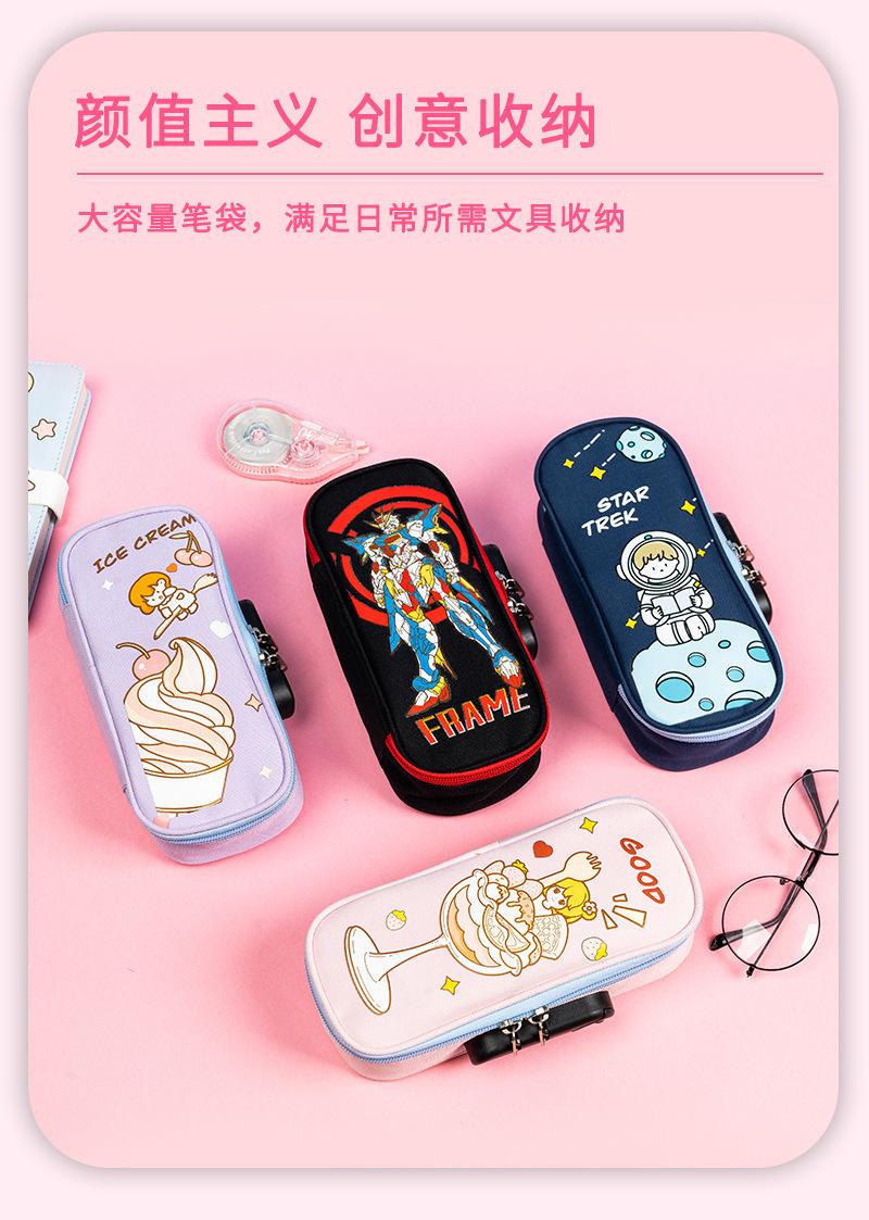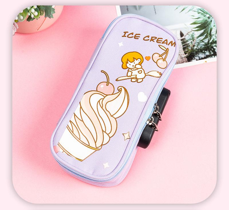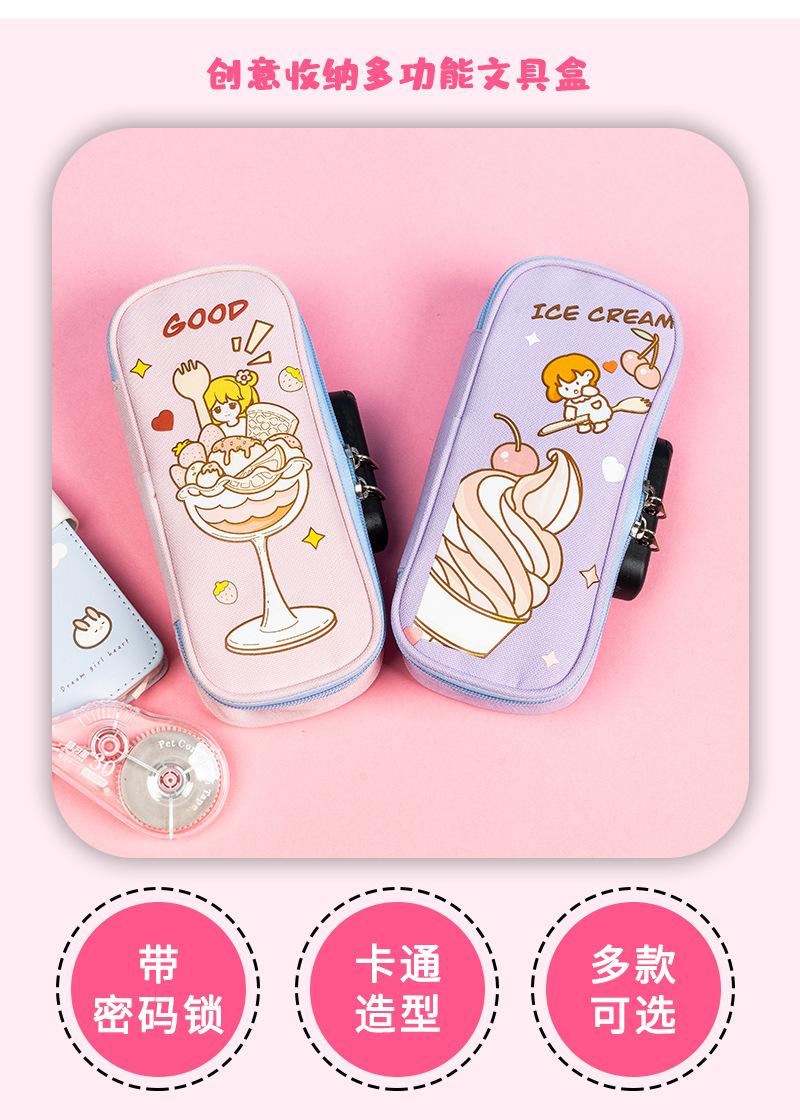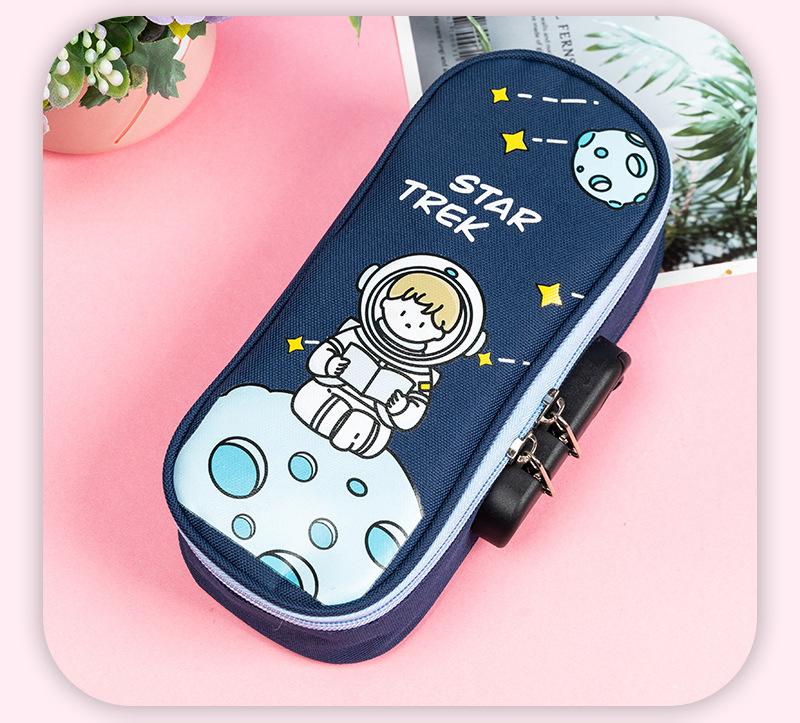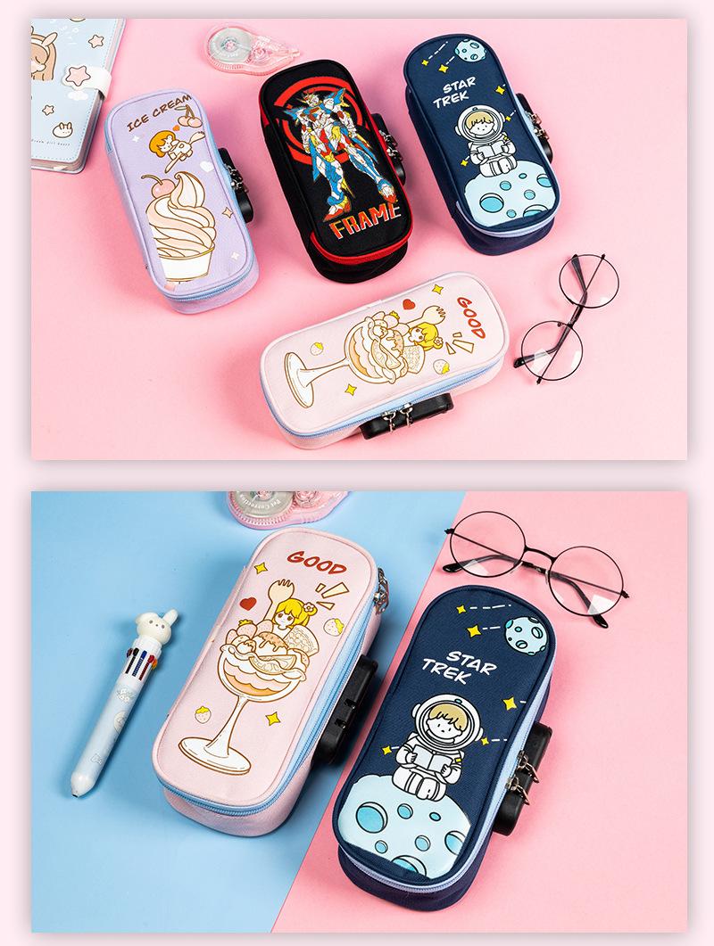 Estuche para lápices con cerradura de combinación de dibujos animados multifuncional para estudiantes de secundaria, caja de papelería de gran capacidad y múltiples capas para niños y estudiantes de primaria.