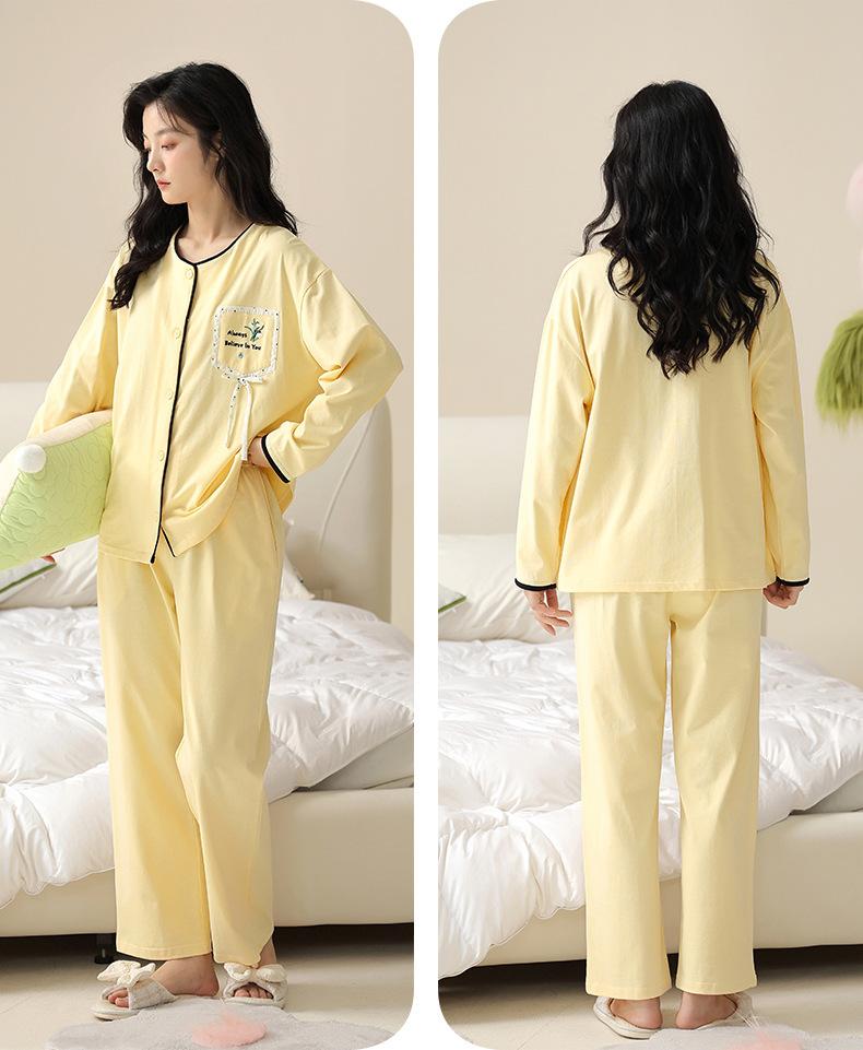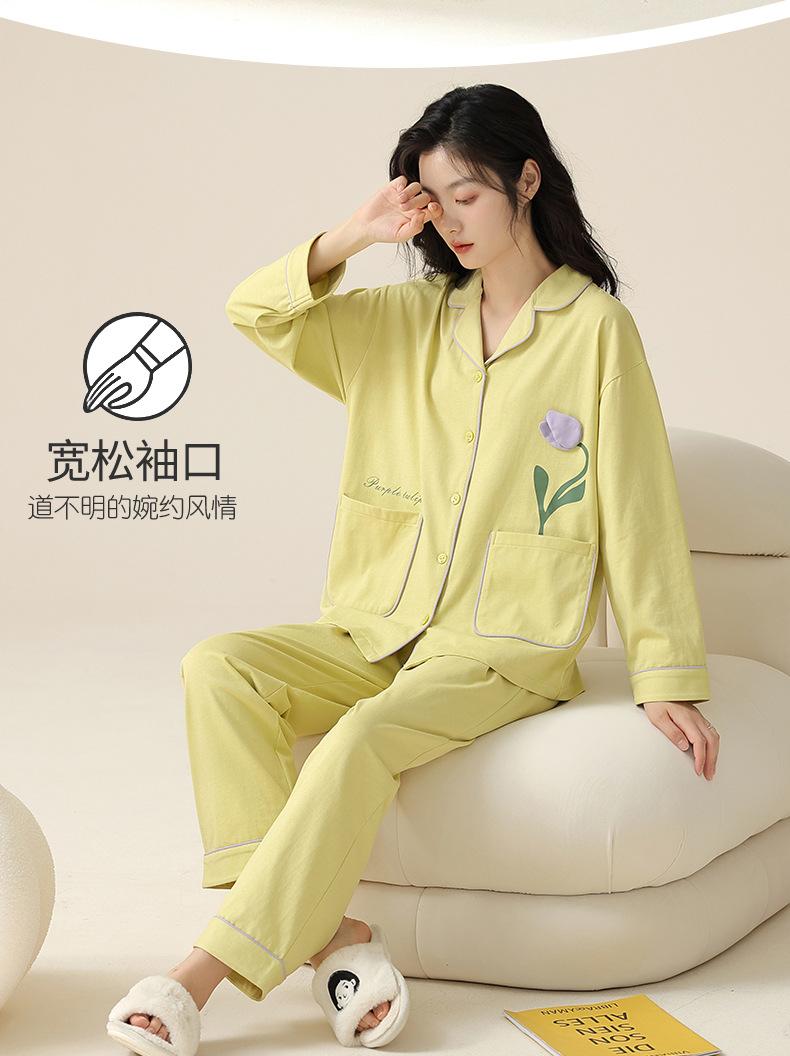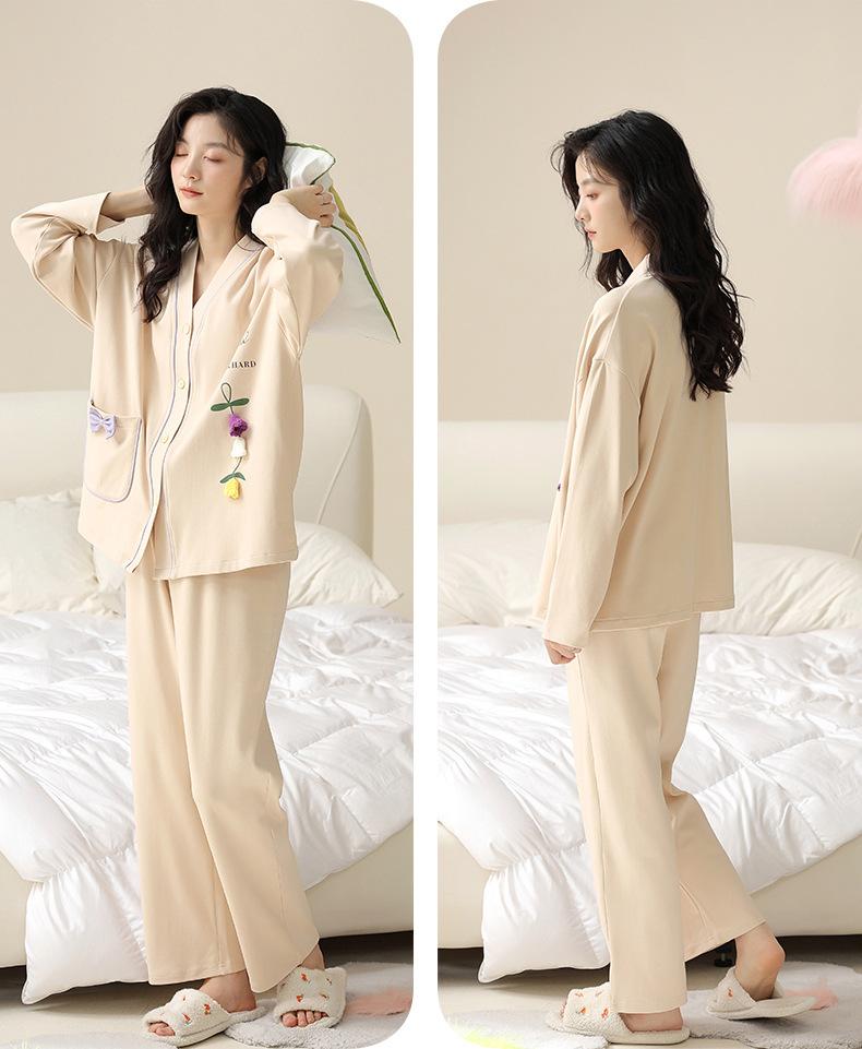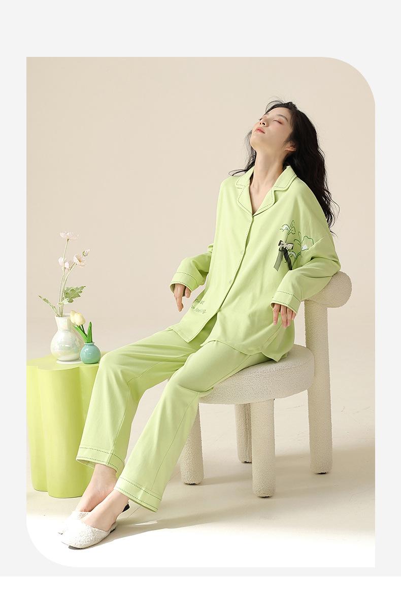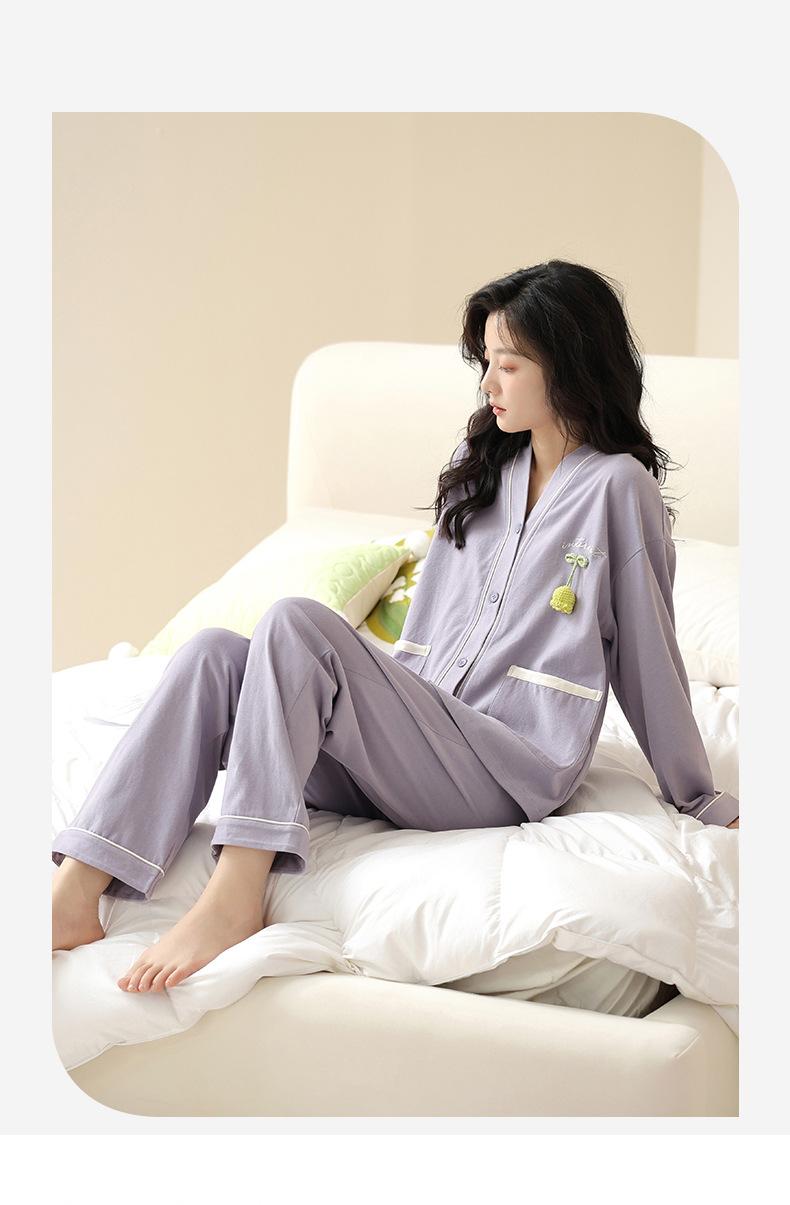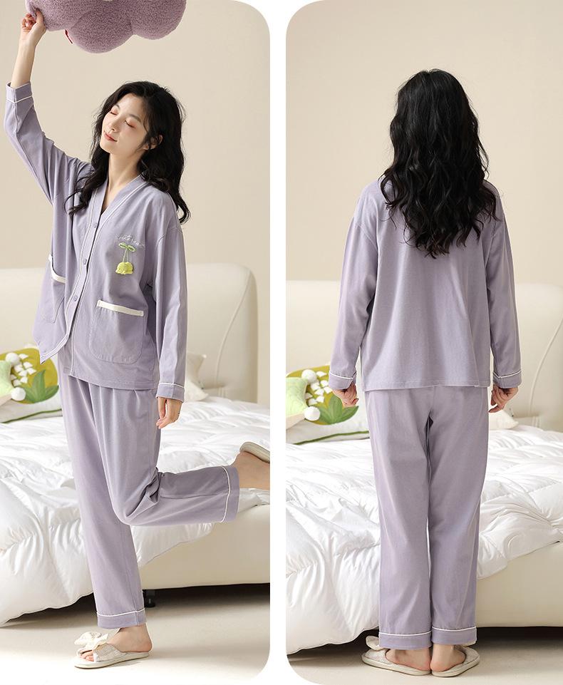 Pijama de algodón puro para mujer, primavera y otoño, cárdigan sencillo con solapa, fino, de manga larga, informal, transpirable, para el hogar
