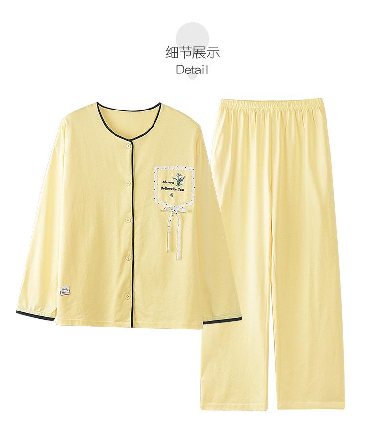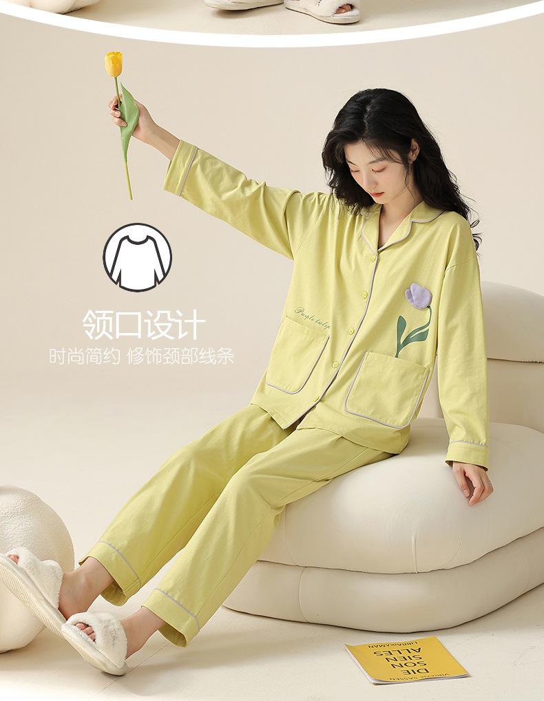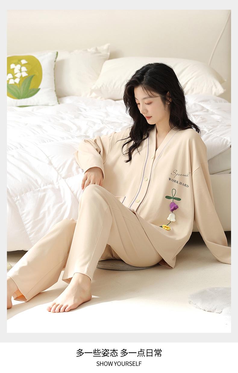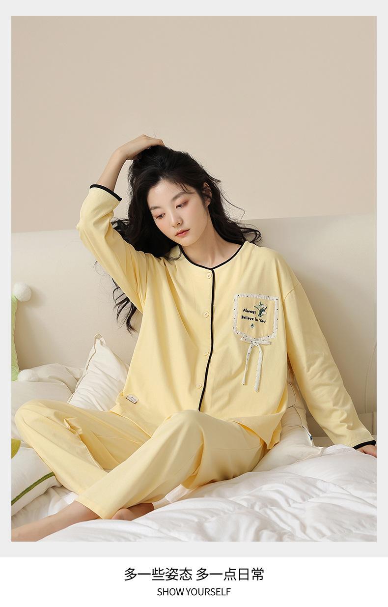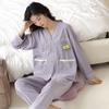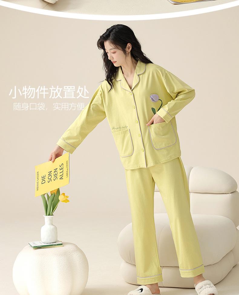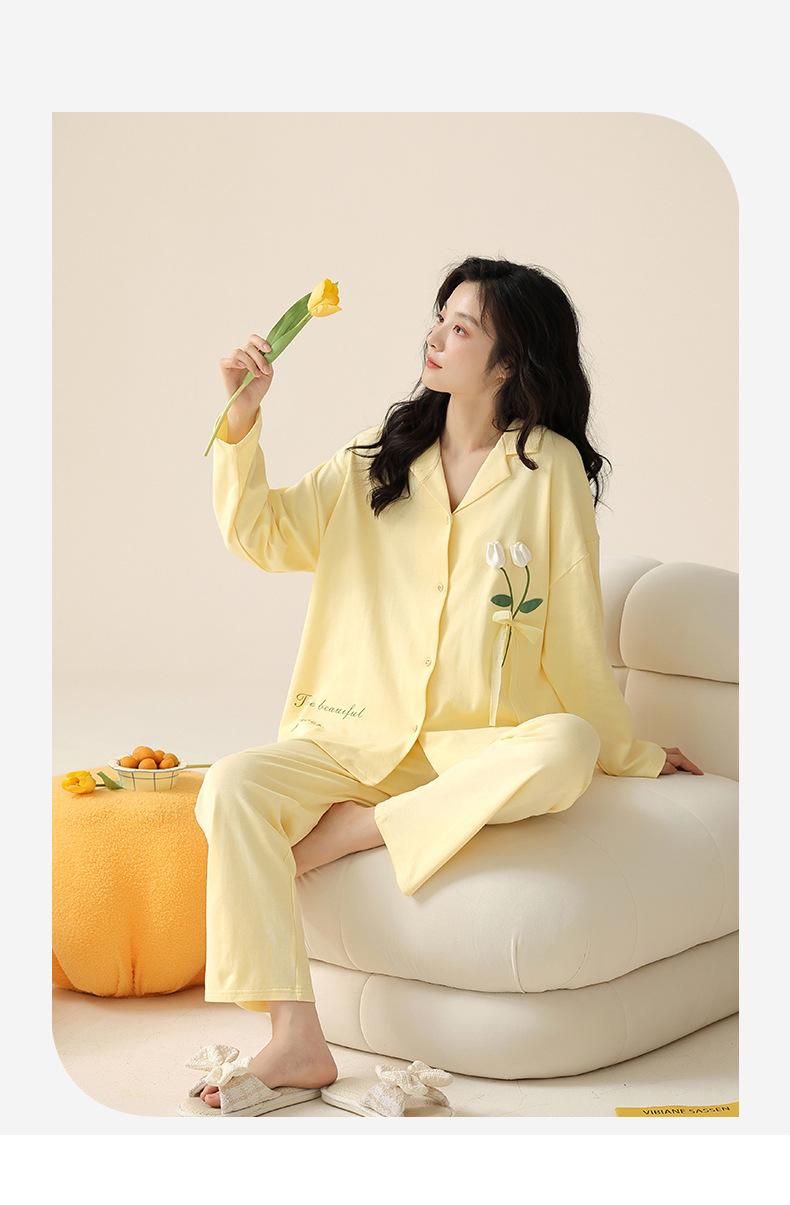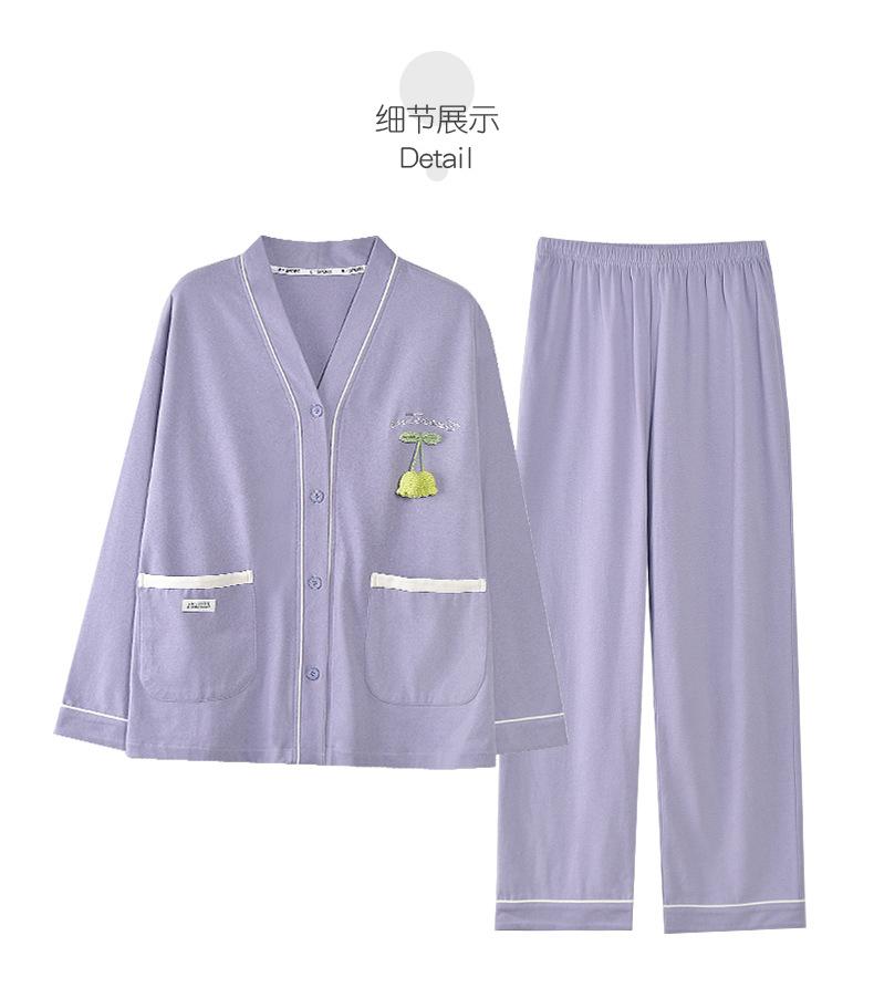 Pijama de algodón puro para mujer, primavera y otoño, cárdigan sencillo con solapa, fino, de manga larga, informal, transpirable, para el hogar