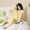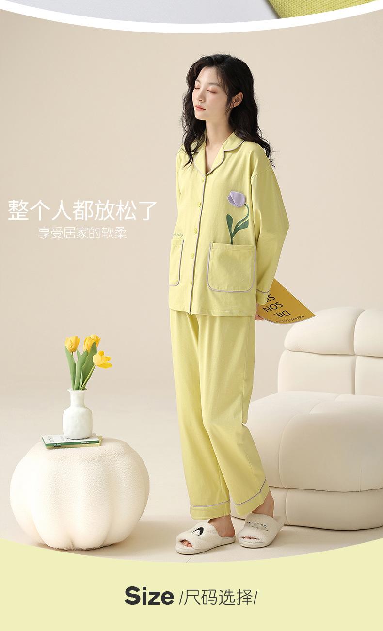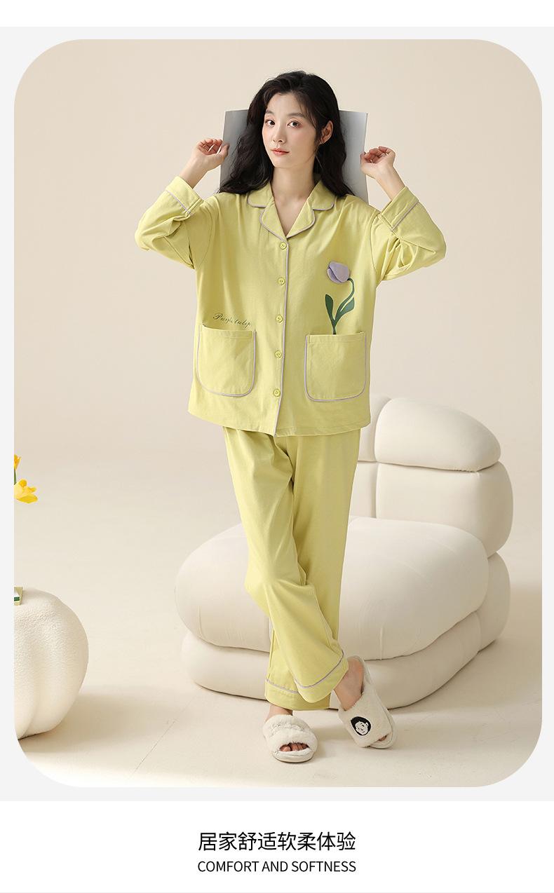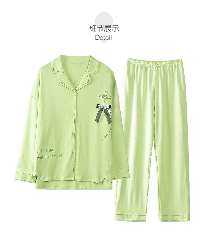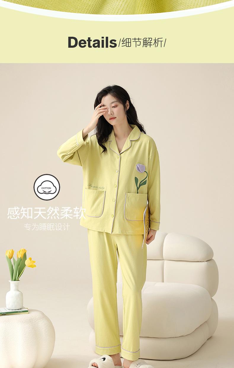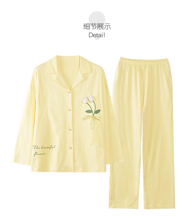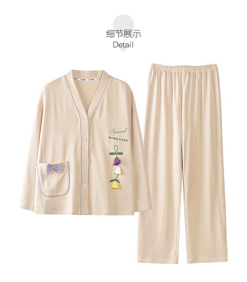 Pijama de algodón puro para mujer, primavera y otoño, cárdigan sencillo con solapa, fino, de manga larga, informal, transpirable, para el hogar