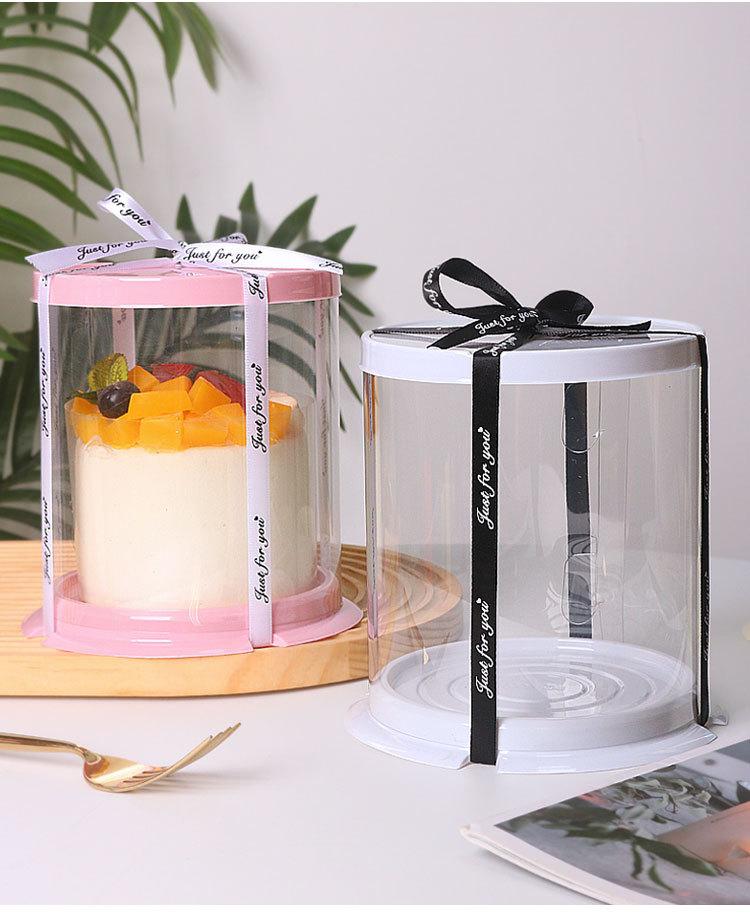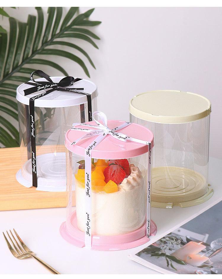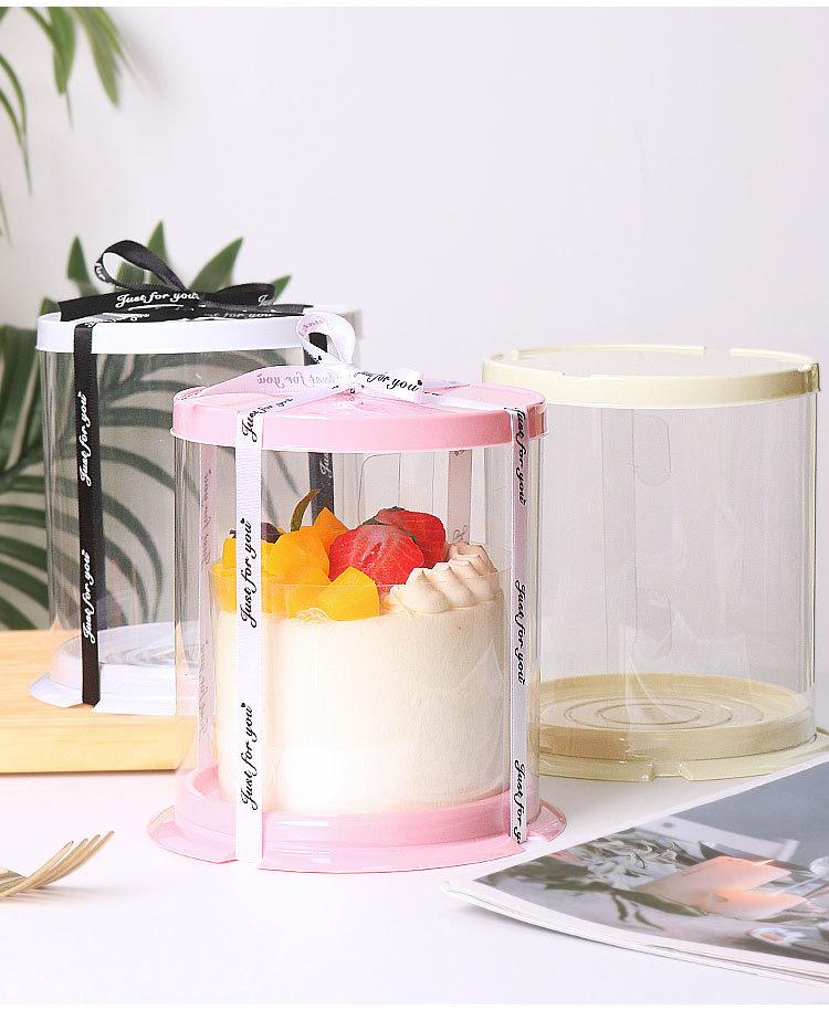 Caja Redonda Transparente para Pastel 4 pulgadas Sencilla Doble Capa Elevada 4 pulgadas Caja de Embalaje para Pastel de Cumpleaños Caja de Embalaje para Hornear