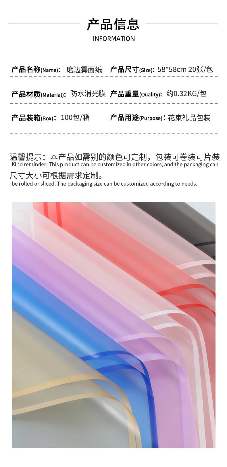 Comercio exterior transfronterizo de papel de niebla con borde mágico, papel de envolver flores a prueba de agua, película de gelatina, materiales de flores de papel simple coreano al por mayor