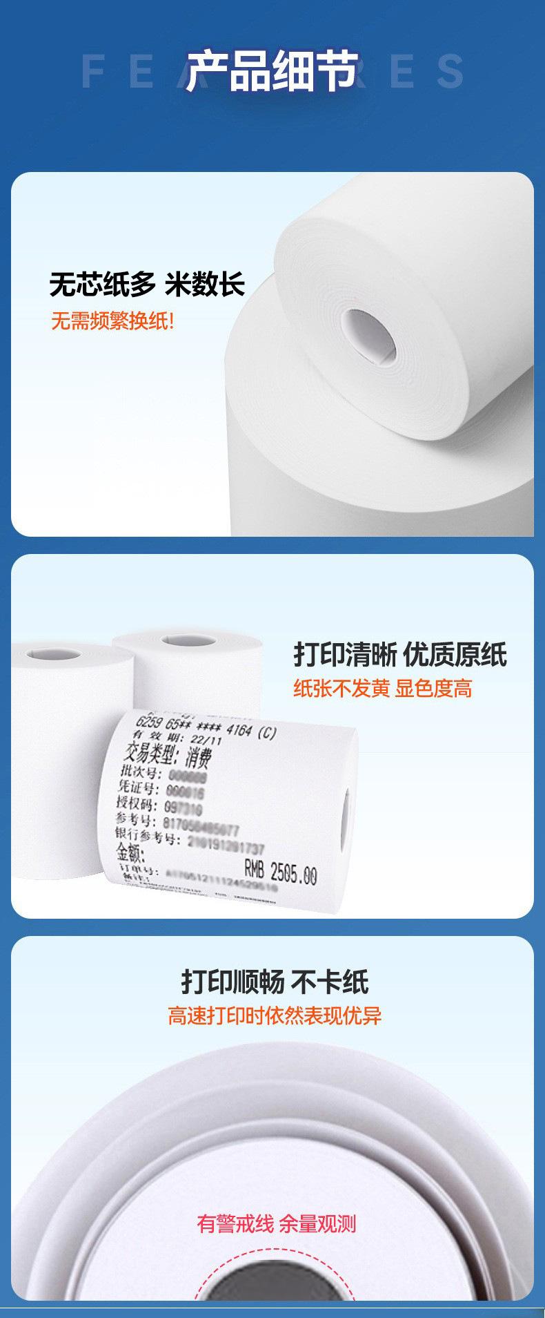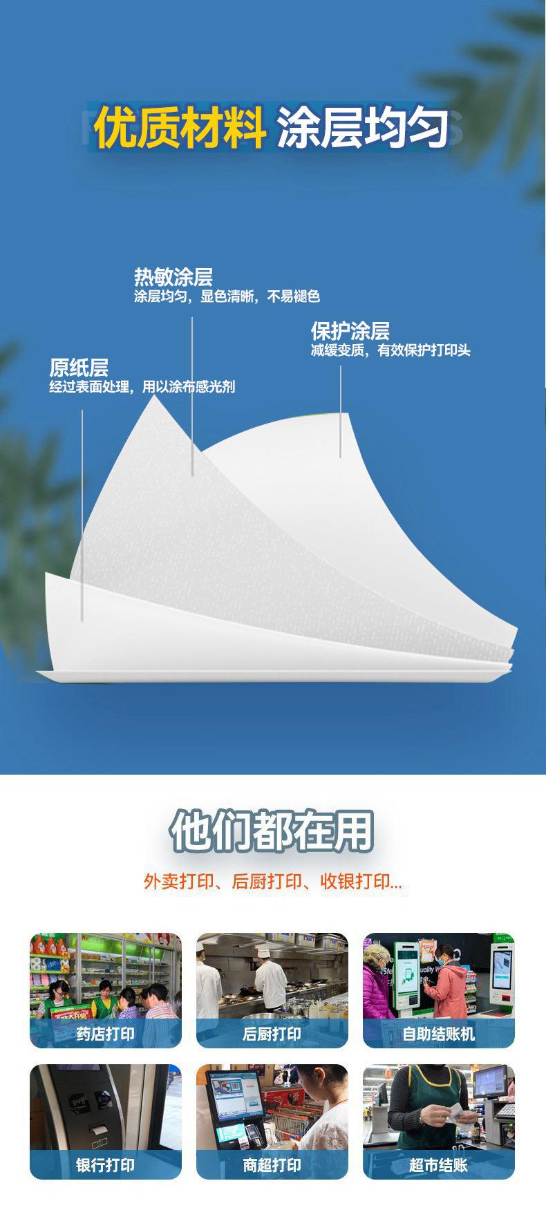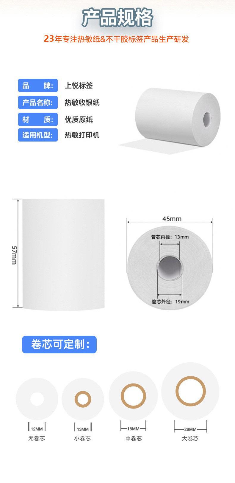 Papel térmico para caja registradora, papel para recibos de supermercado de 57 x 50, papel térmico para impresión térmica de comida para llevar de EE. UU., papel térmico de 80 x 80