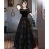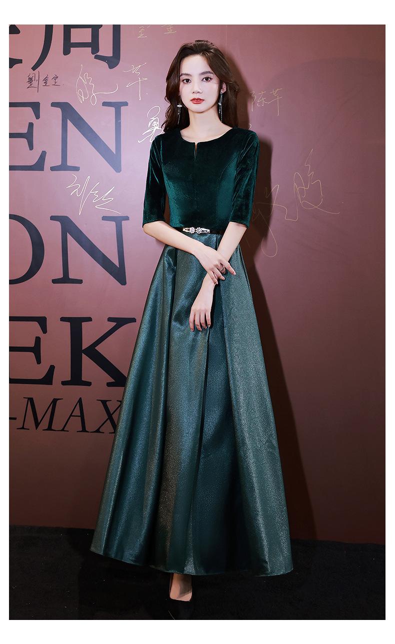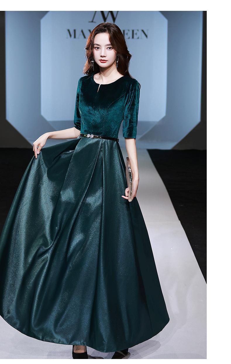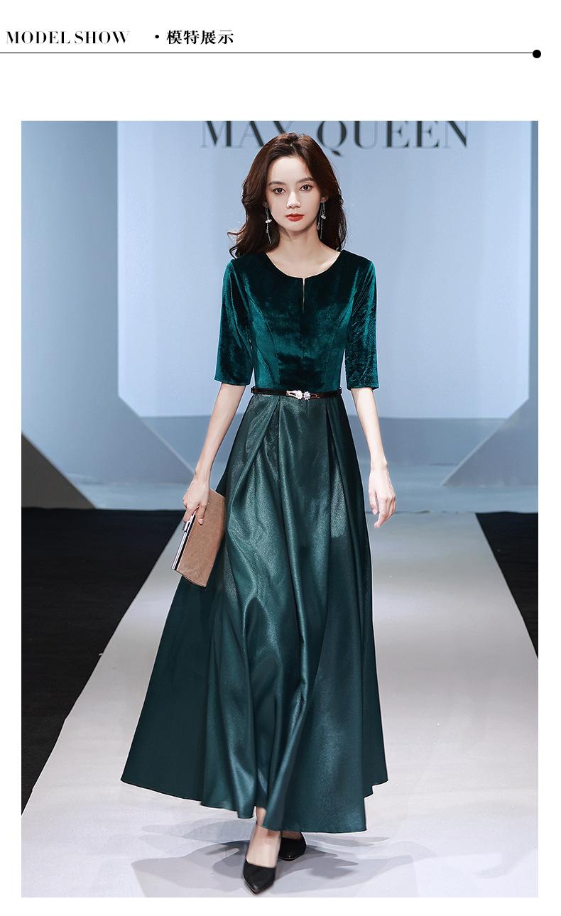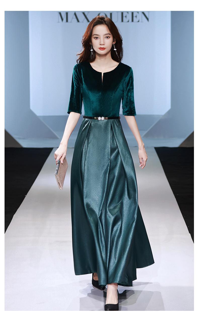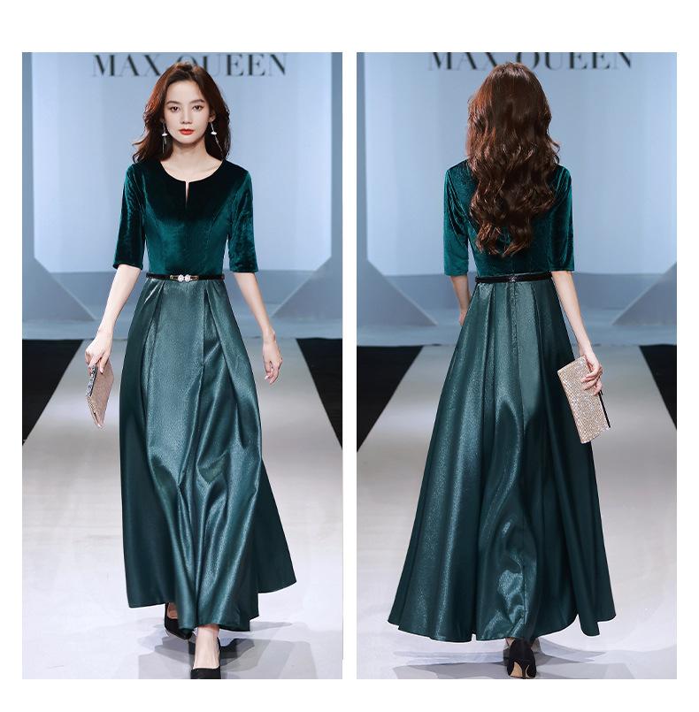 Vestido de Noche para Mujer 2025 Nuevo Banquete Elegante Diseño de Anfitrión Verde Oscuro Vestido de Terciopelo de Alta Gama