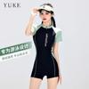 Nuevo traje de baño coreano para mujer, ajustado, que cubre el vientre, conservador, de una pieza, de manga larga, con protector solar, traje de buceo con cremallera, traje de baño deportivo de aguas termales