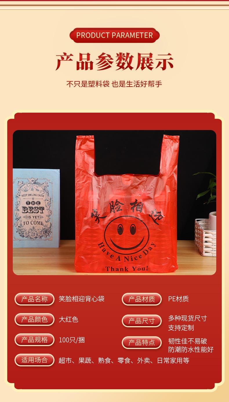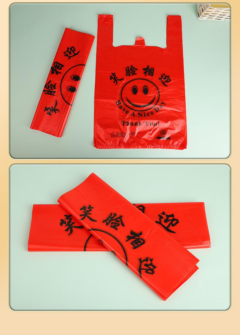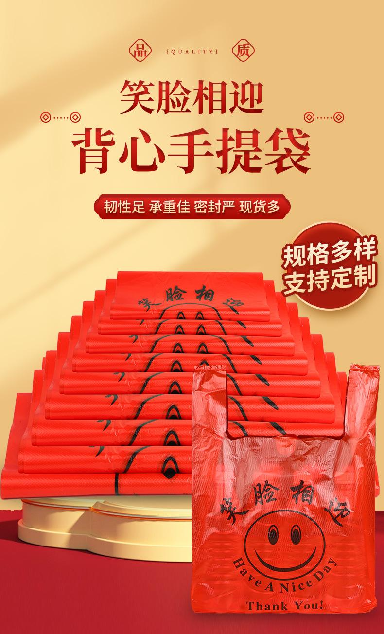 Bolsa Smiley Roja Bolsa de Compras de Plástico Mochila Embalaje para Llevar Bolsa para Embalaje de Fruta Venta al por Mayor Bolsa Grande Engrosada
