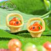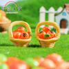 Micropaisaje creativo, lindo, simulación de frutas, comida, cesta de bambú, adornos de resina de caqui, decoraciones DIY, adornos de escritorio