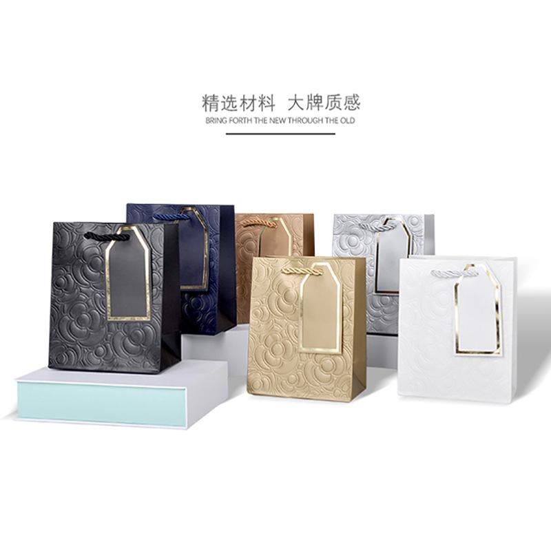 Bolsa de Joyería de Papel Repujado Transfronterizo Bolsa de Papel de Cartón Blanco Bolso de Mano Bolsa de Joyería Bronceada Bolsa de Regalo de Mano con Logotipo