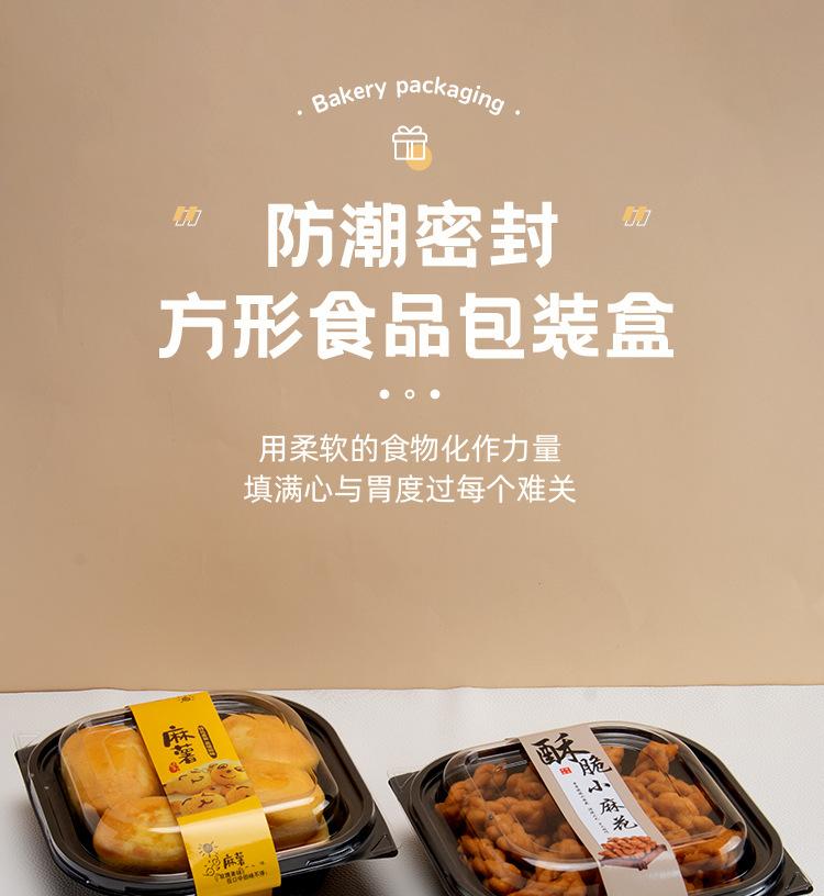 Caja de embalaje transparente para pastel West Point, cuadrada, gruesa, con tiras de sésamo, para galletas, crujiente de melocotón, caja de plástico desechable