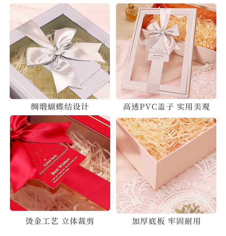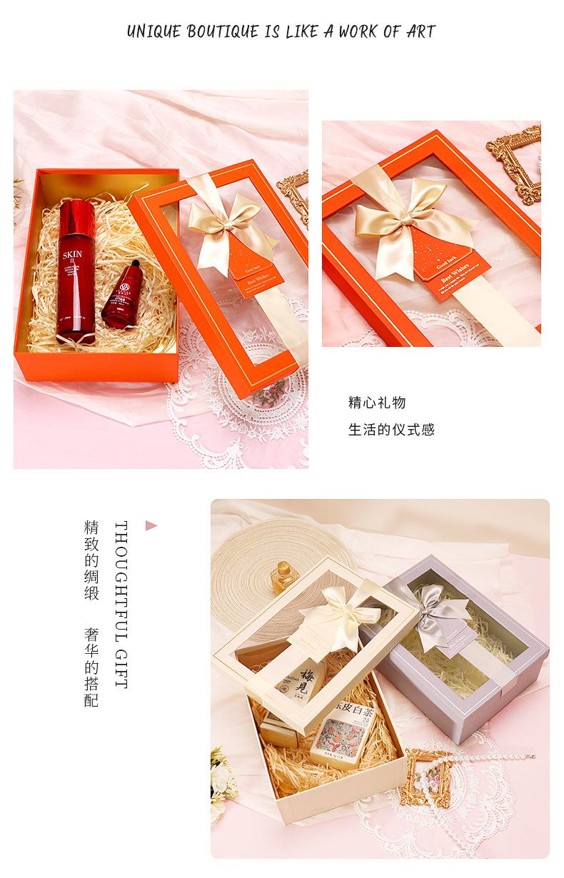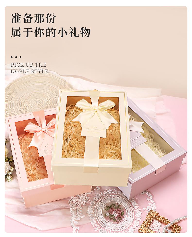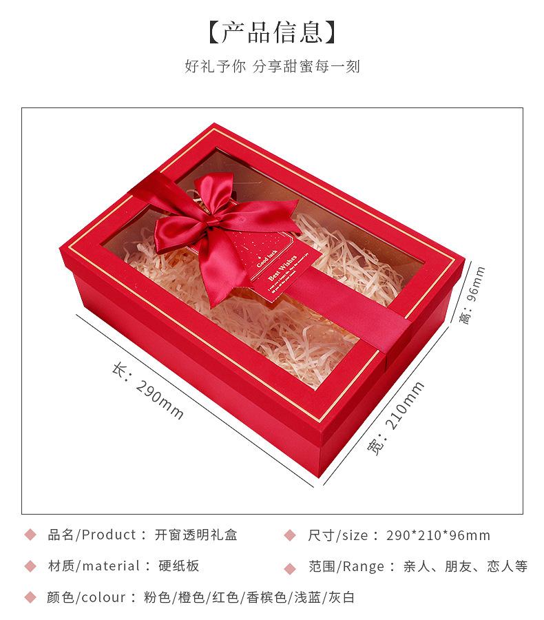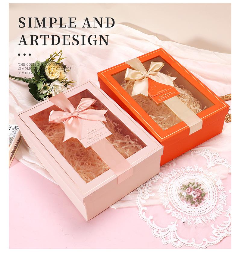 Caja de regalo con ventana decorativa con lazo, embalaje transparente, caja vacía, caja de regalo de alta gama, regalo de cumpleaños, regalo de gran tamaño.