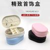 Joyero de viaje negro de doble capa para el hogar, color sólido, sencillo, para pendientes, anillos, collares