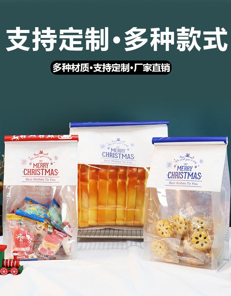 Bolsa Tostada Navideña Personalizada Alambre Rizado a Prueba de Aceite Galleta Pastelería Papel Kraft Ventana Transparente Horneado Bolsa para Pan
