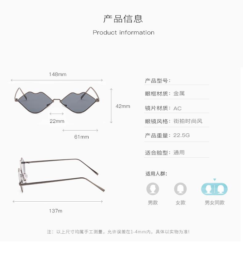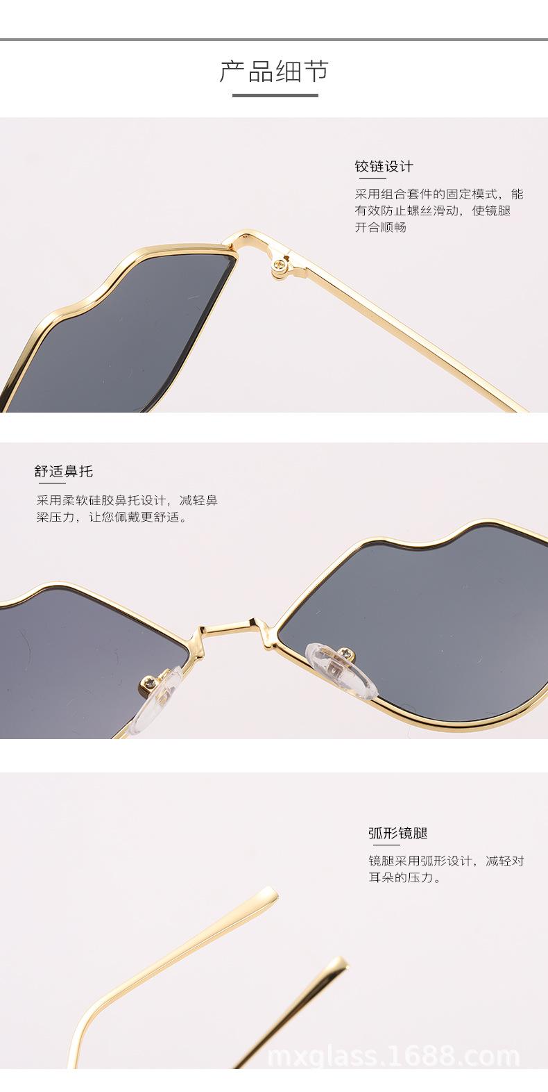 Gafas de sol personalizadas al por mayor, gafas de sol con labios de metal transfronterizos europeos y americanos, gafas de sol divertidas de gran tamaño para mujer