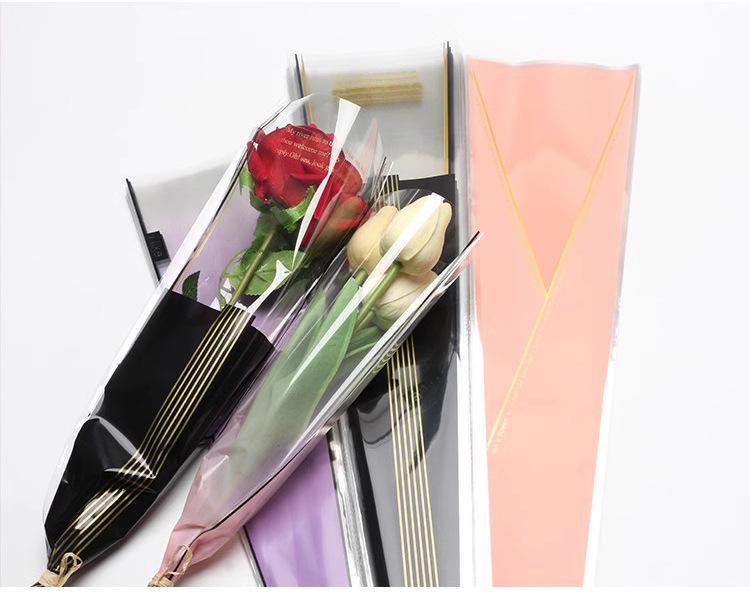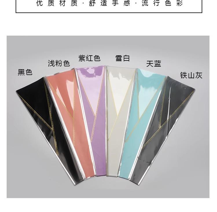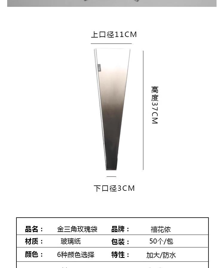 Brillante triángulo dorado serie de bolsas individuales papel para envolver flores impermeable opp degradado de color materiales de florería mayoreo