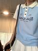 Camiseta de manga corta con cuello polo retro estilo americano para mujer, nueva camiseta de verano de alta gama con estampado de letras en contraste