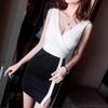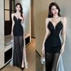Falda corta sexy con escote en V profundo para mujer, estilo club nocturno, ropa de trabajo de corte bajo, vestido abierto para discoteca