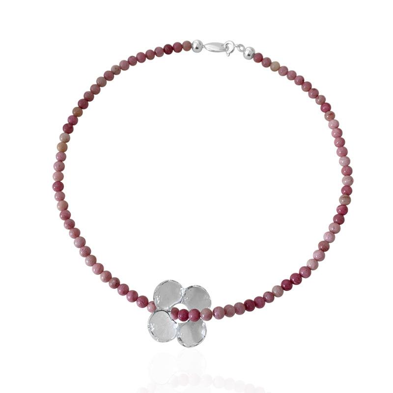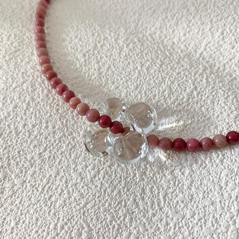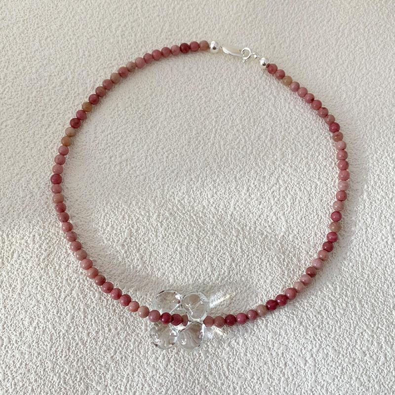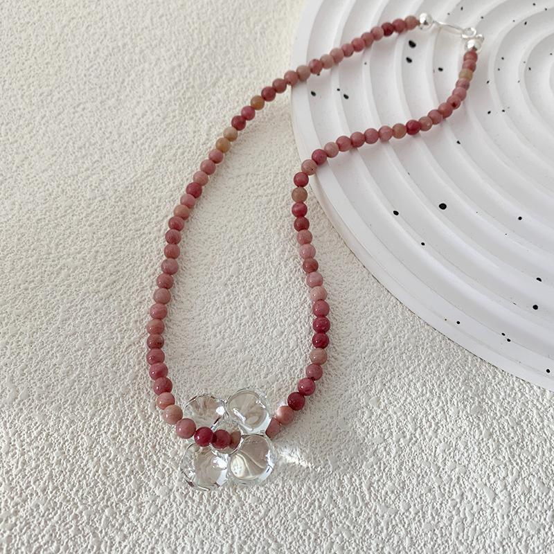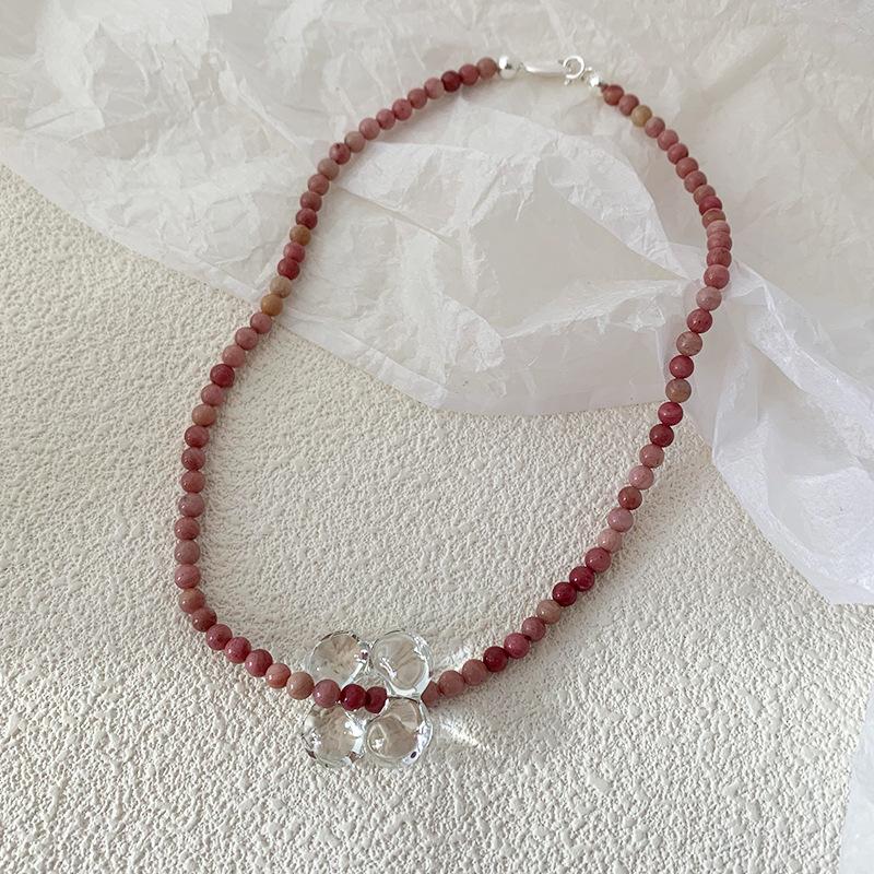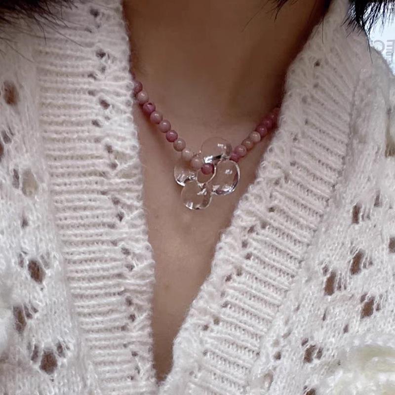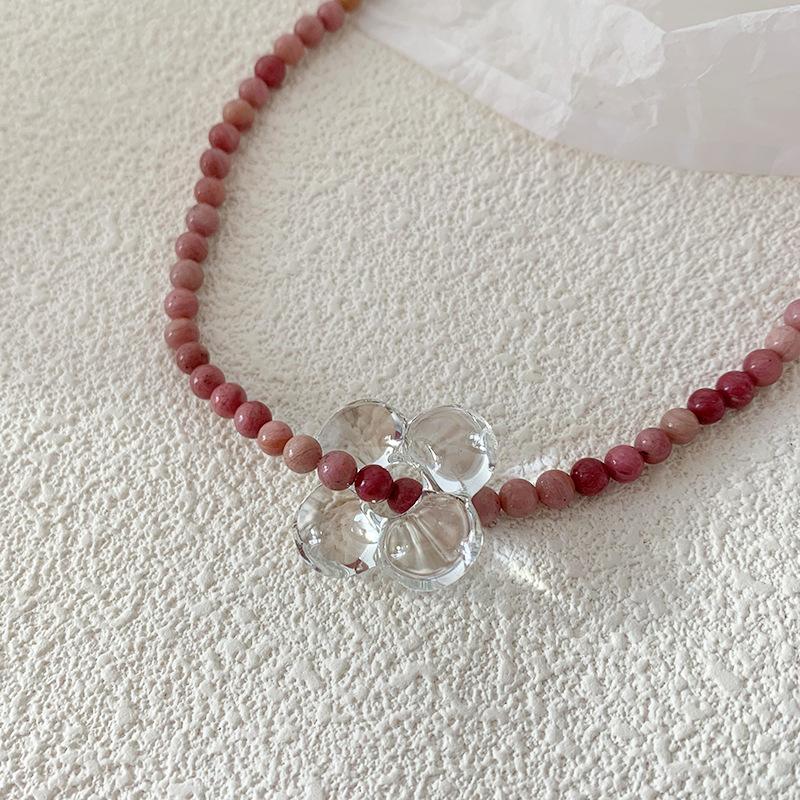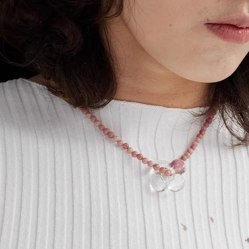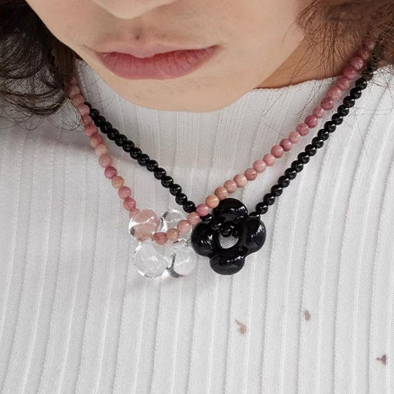 Collar con Colgante de Flor de Cristal con Cuentas de Piedra Natural Japonesa y Coreana Diseño de Nicho Elegante Collar de Rodolita Ágata Negra