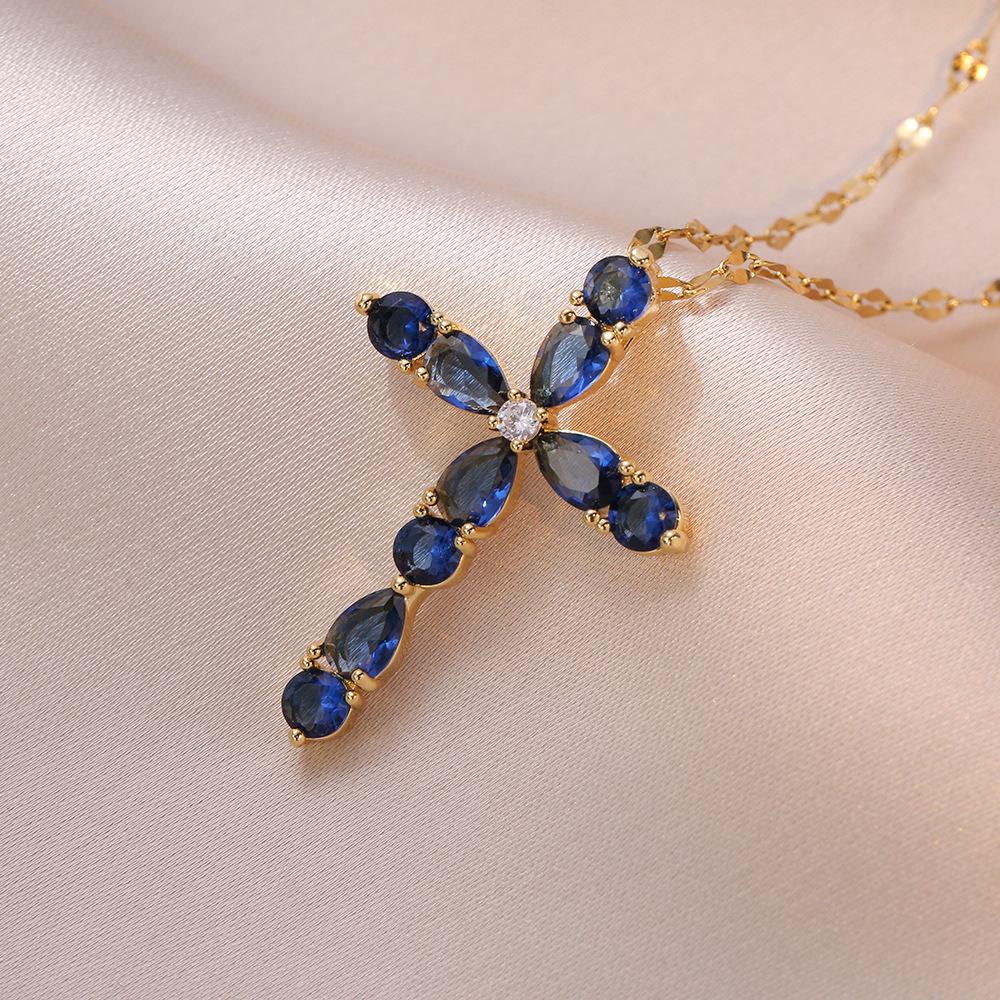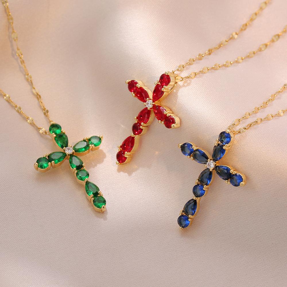 Collar Femenino Celebridad de Internet Ins Colorido Zircón Gota de Agua Geométrico Cruz Collar Colgante Cruz Moda Cadena Clavícula