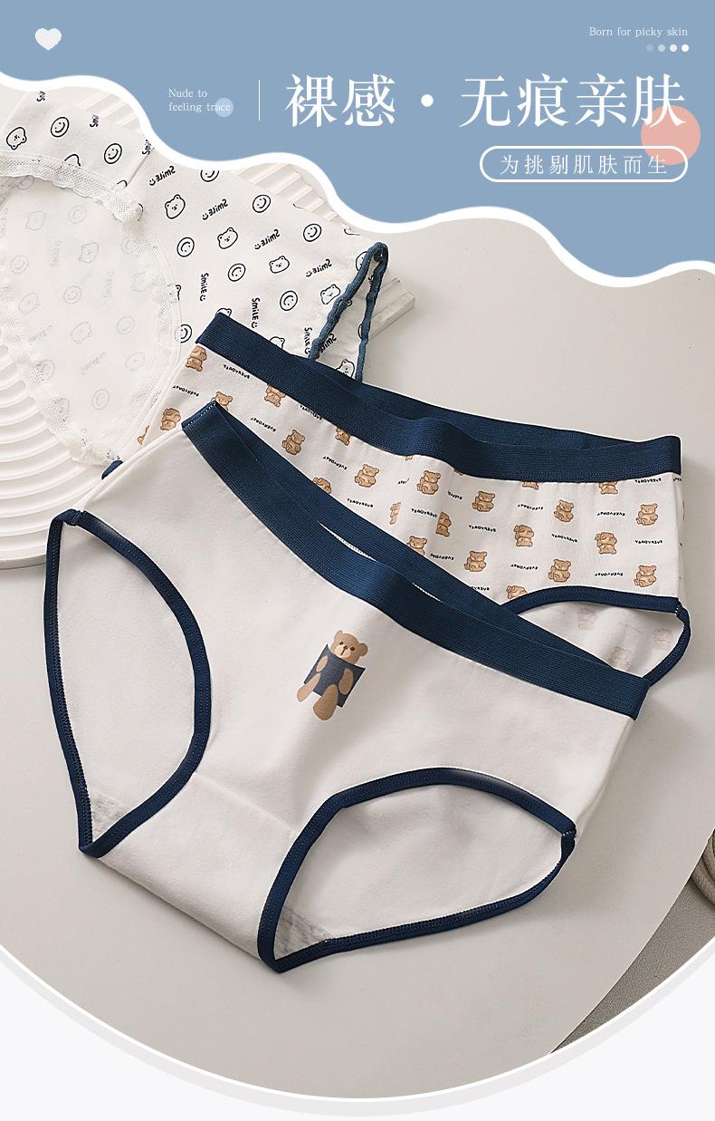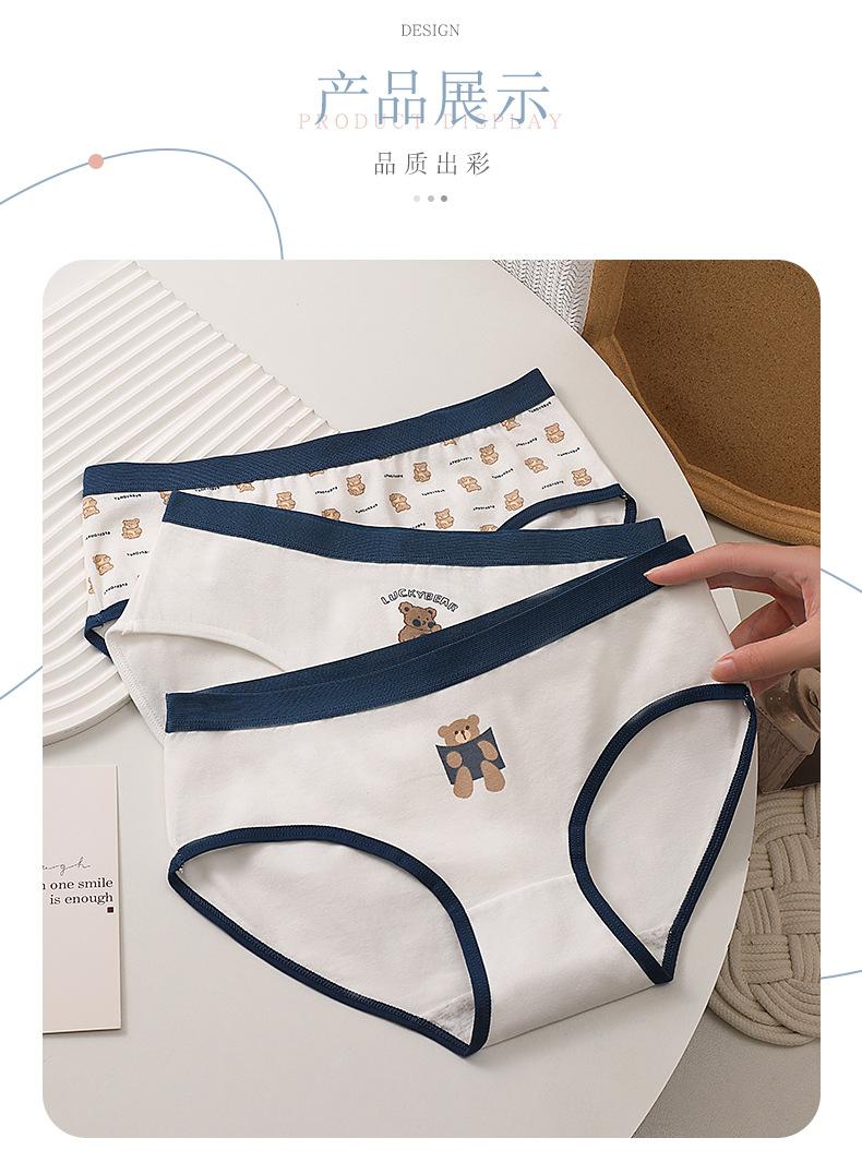 Ropa interior de algodón para mujer, bragas transpirables con estampado de oso, cintura baja, entrepierna de algodón, venta al por mayor