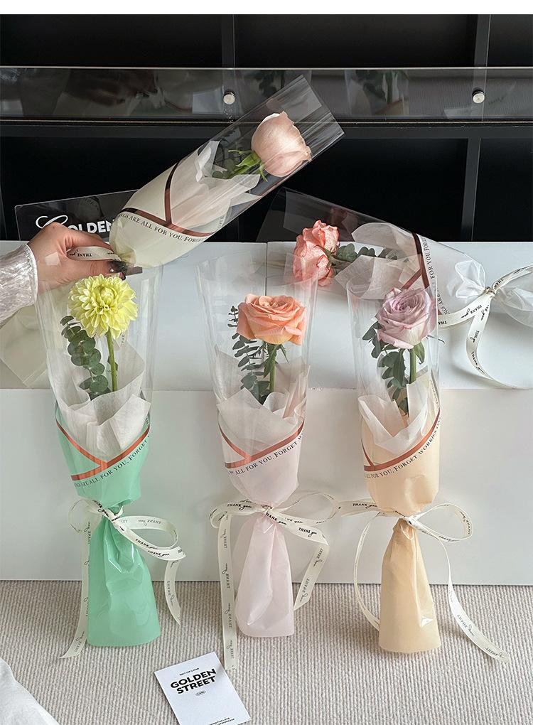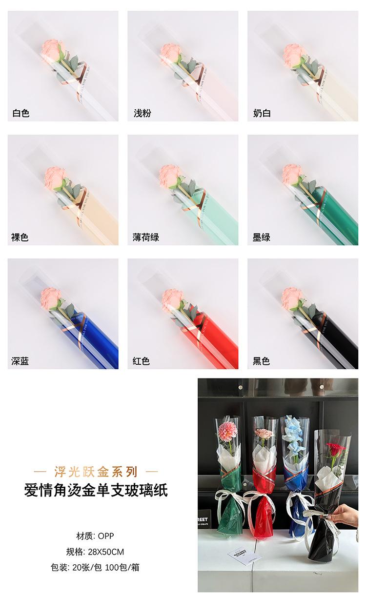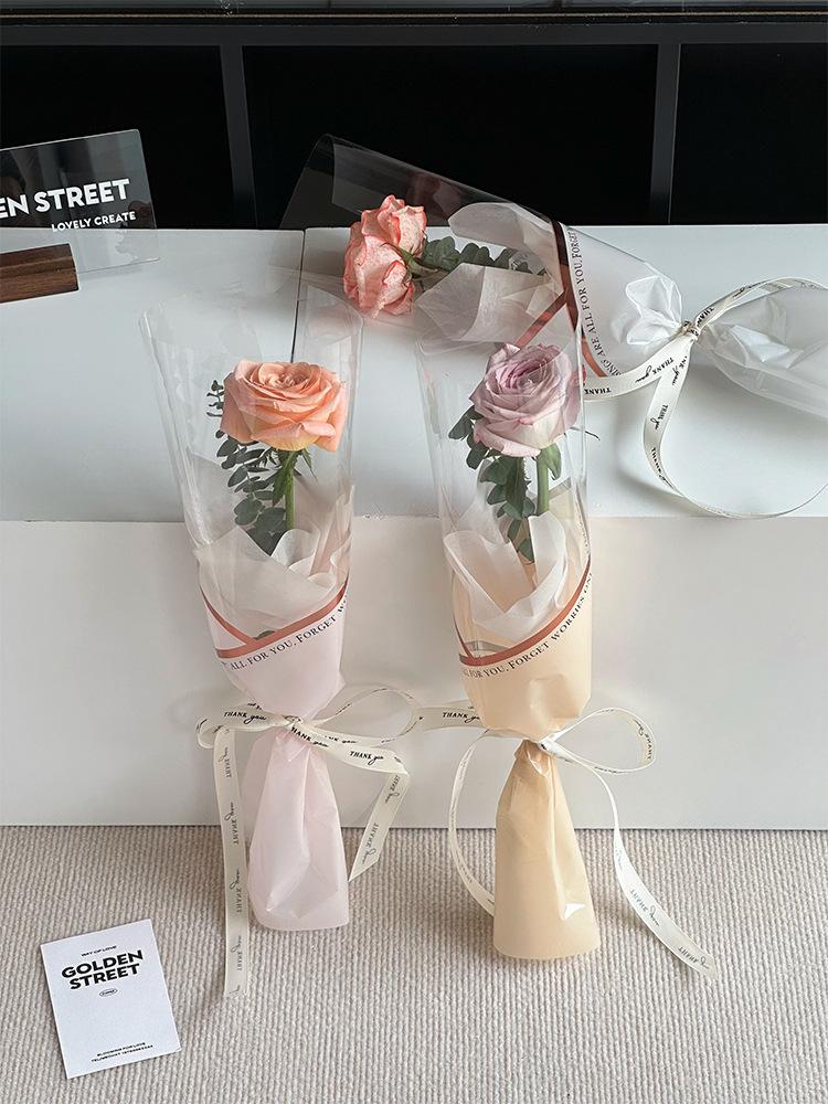Bolsa individual de celofán con diseño de rosas para el Día de San Valentín, Tanabata, con diseño de amor en ángulo, color bronce, para envolver flores, material de papel, arte floral.