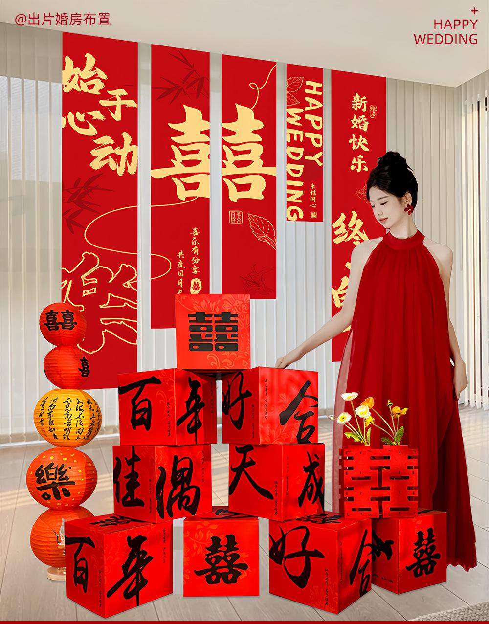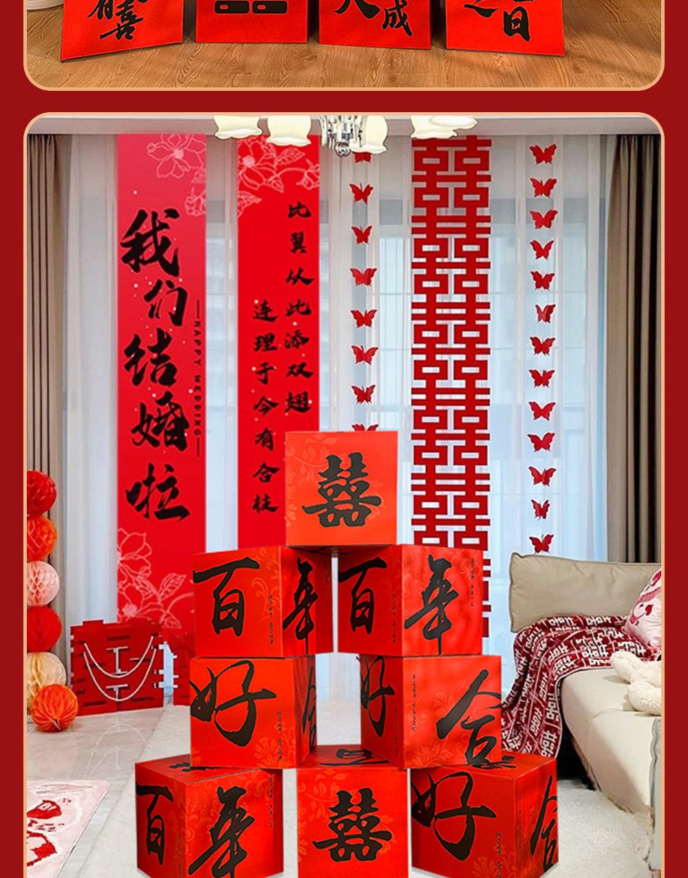 4m 4 pieces of burgundy origami + 4 pieces of 2.5m wedding red skewers + textured paper