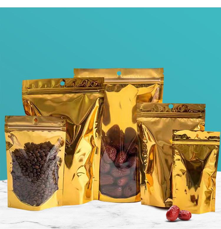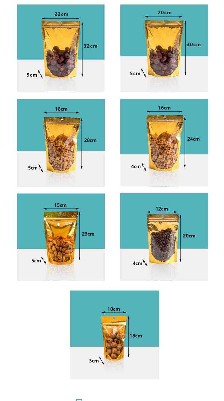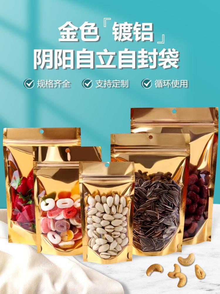 Bolsa Autoportante de Papel de Aluminio Yin y Yang Agujero Colgante Dorado Nuez Snack Dátil Rojo Bolsa Autosellable Bolsa de Embalaje Sellada con Cierre de Cremallera de Grado Alimenticio