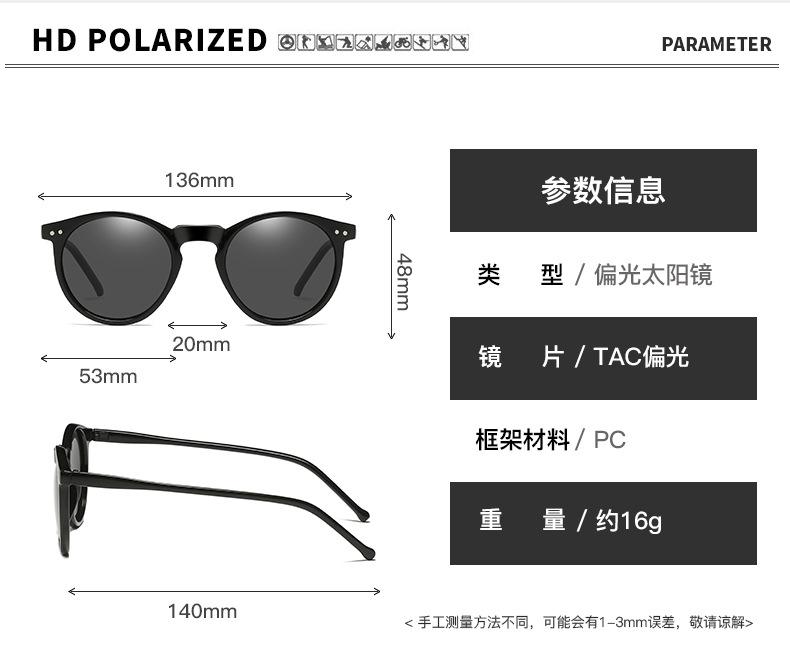 Nuevo Armazón de Lentes Retro de Exportación Negro Armazón de Lentes Gafas de Sol Polarizadas Europeas y Americanas Gafas de Sol Clásicas de Moda para Mujer Venta al por Mayor 8151