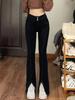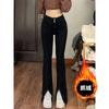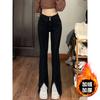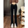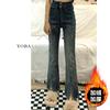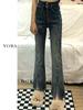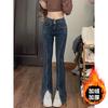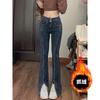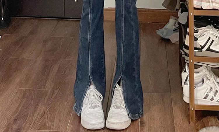 Pantalones vaqueros elásticos con abertura para mujer, pierna recta, primavera, nuevos, ajustados, adelgazantes, talla grande, para chicas gorditas, cintura alta, pierna ancha.