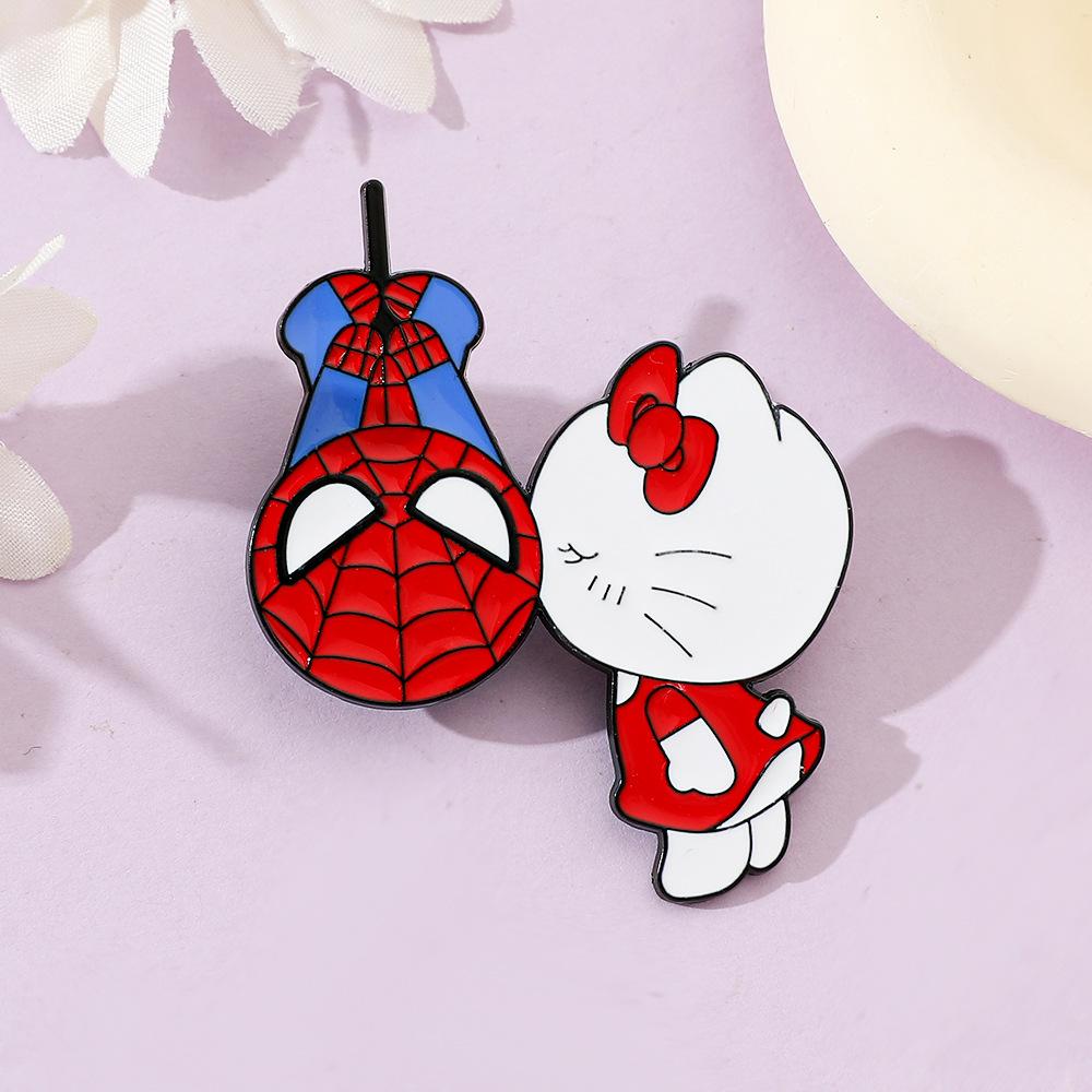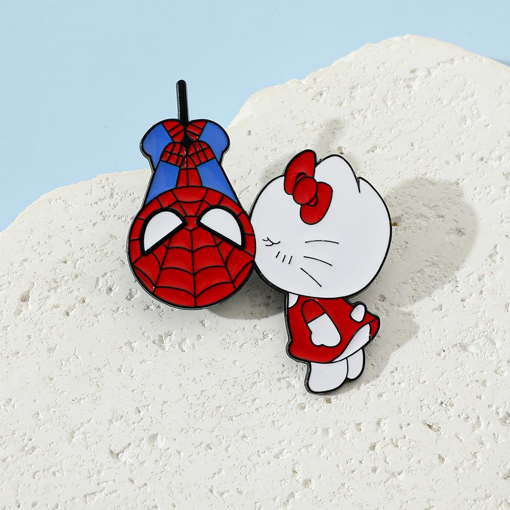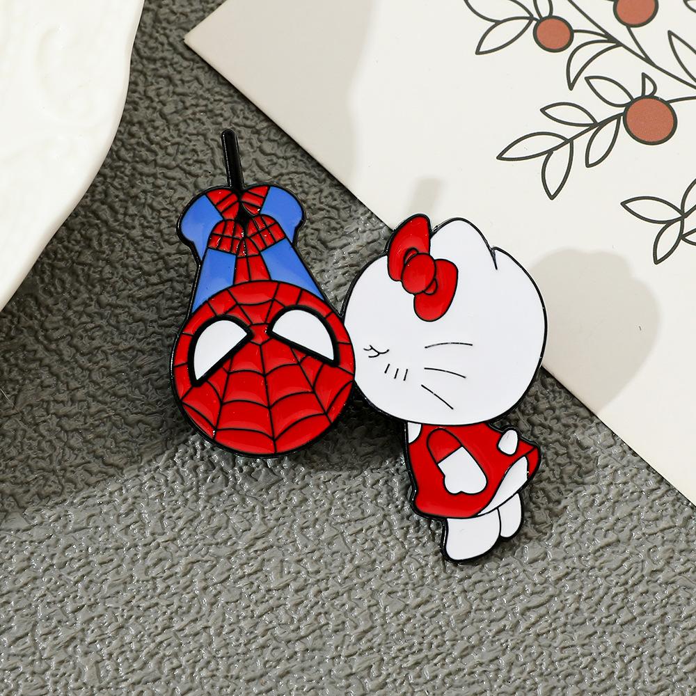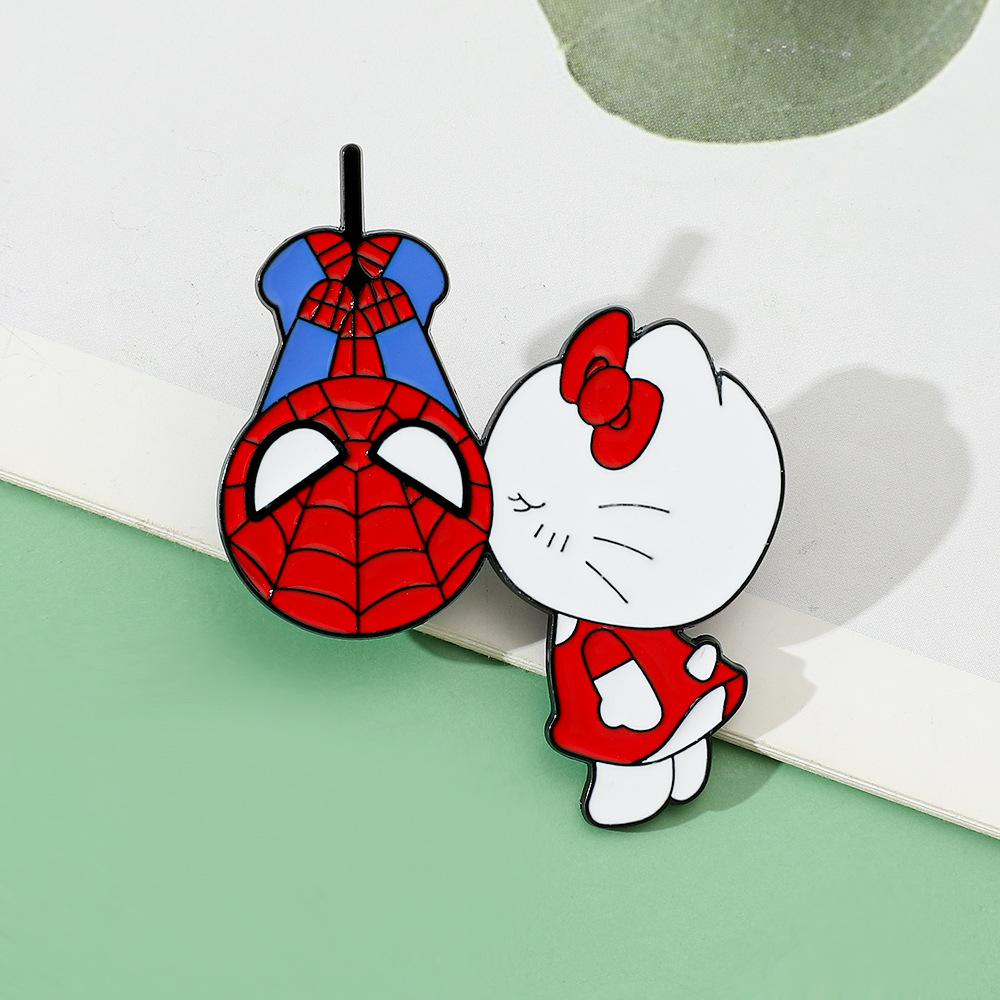 Lindo broche de metal creativo de Sanrio para el Día del Hombre Araña y el Gato Kt con forma de gota de aceite, accesorios de aleación