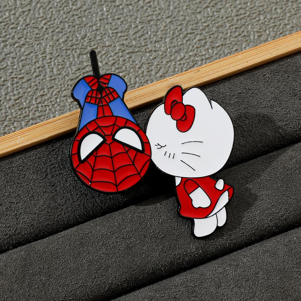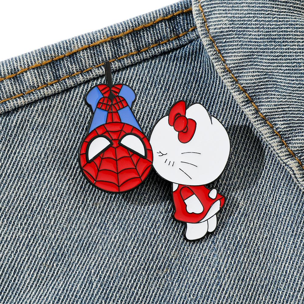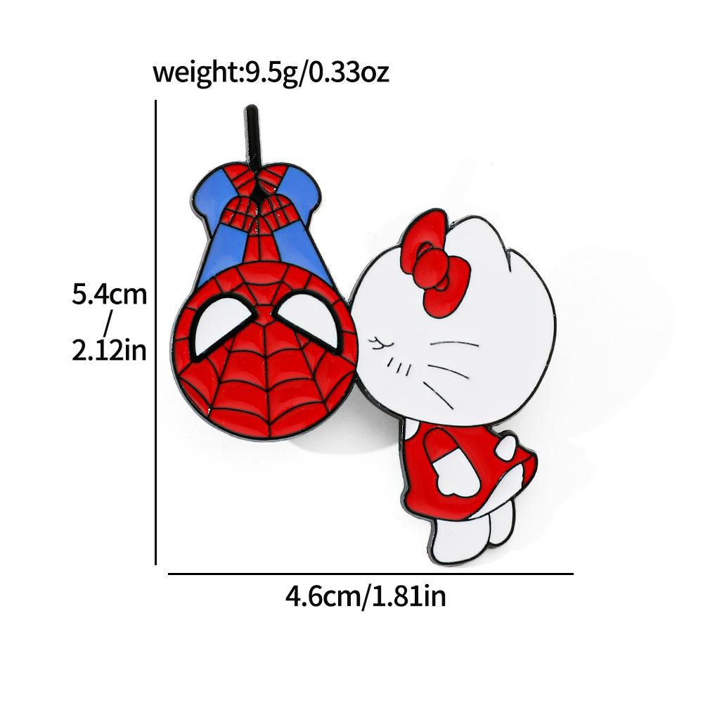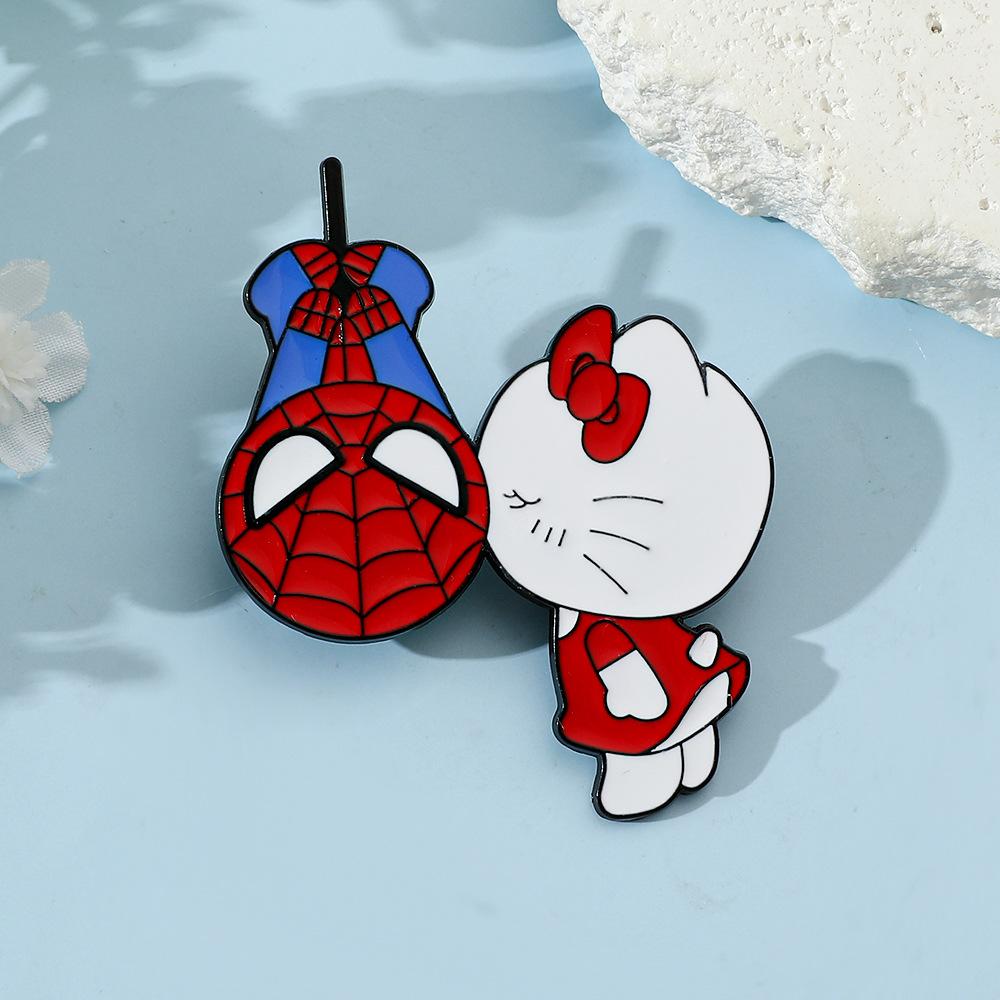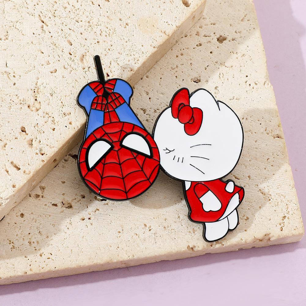 Lindo broche de metal creativo de Sanrio para el Día del Hombre Araña y el Gato Kt con forma de gota de aceite, accesorios de aleación